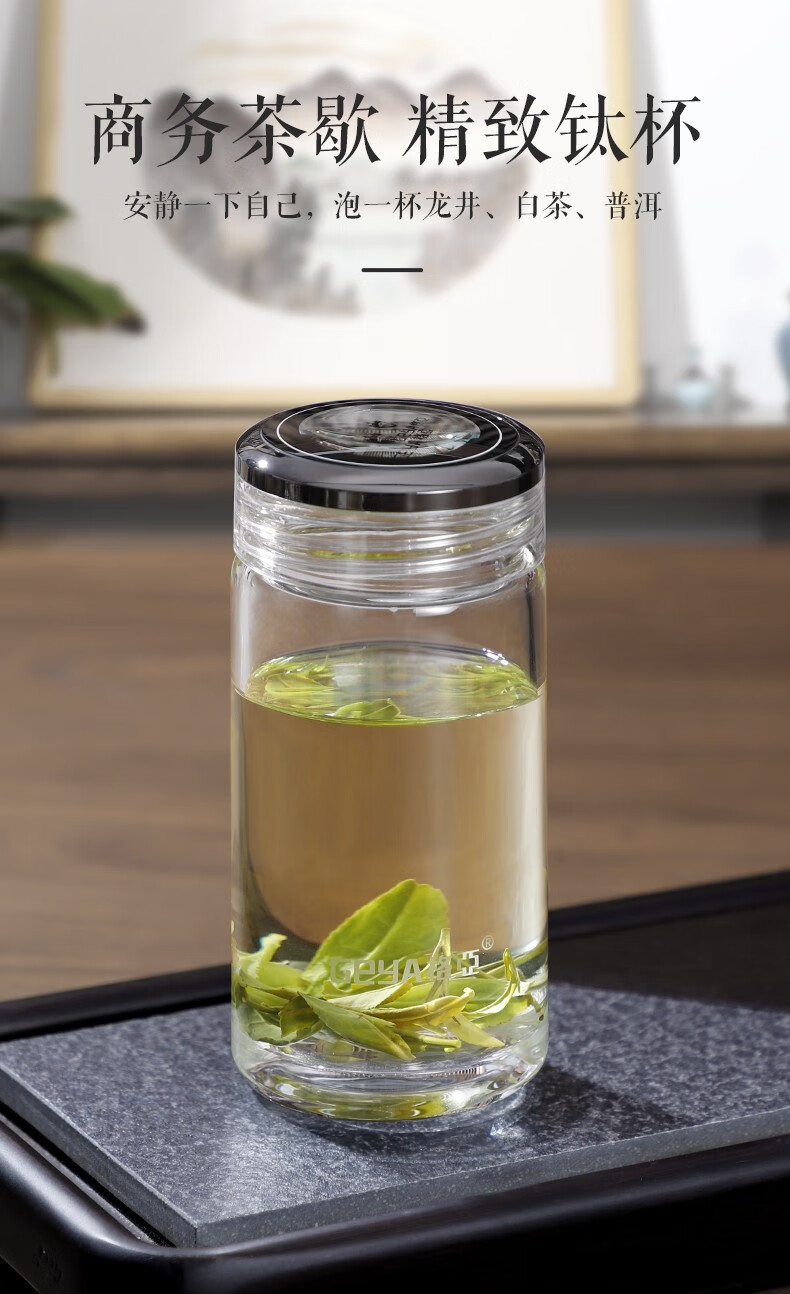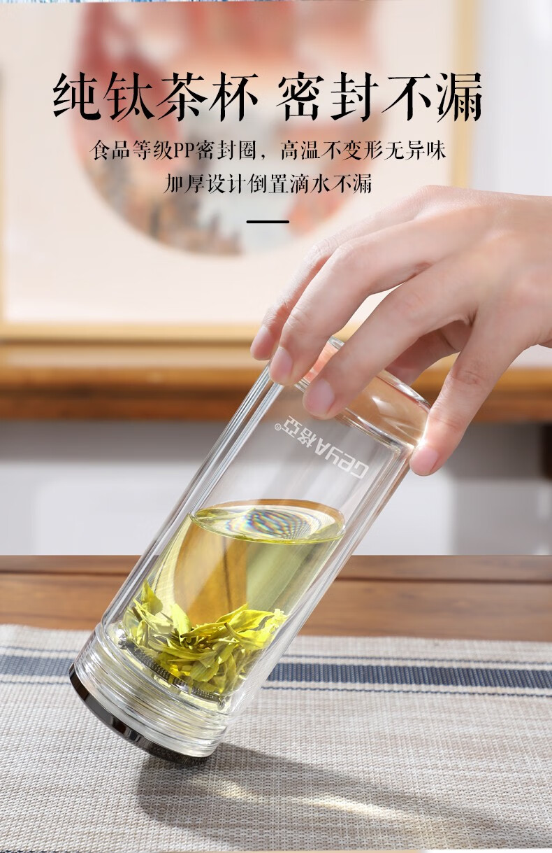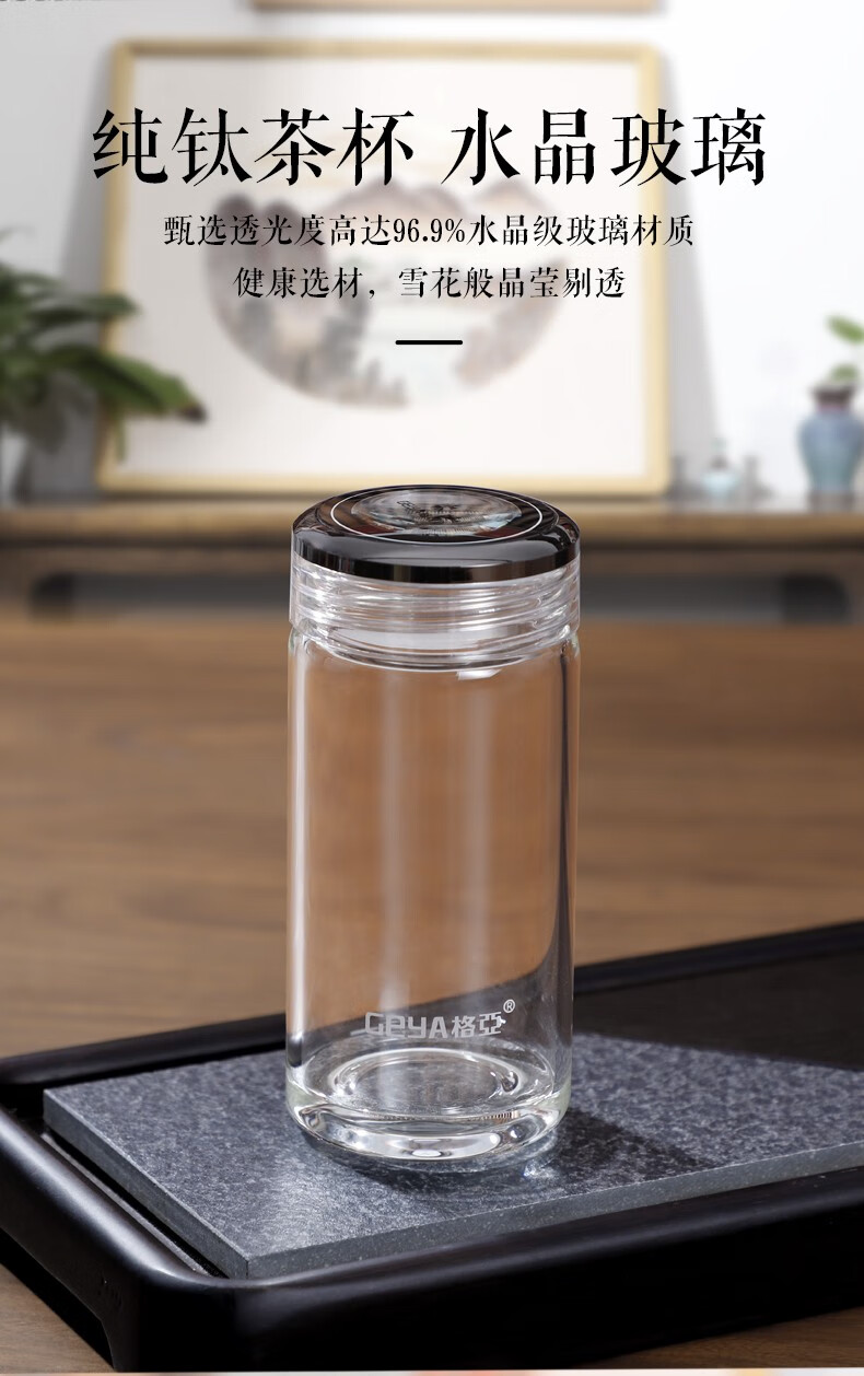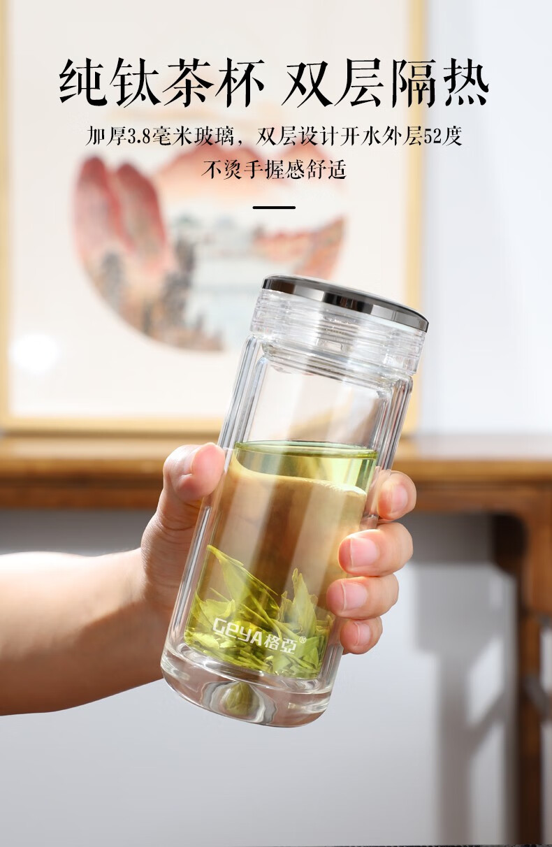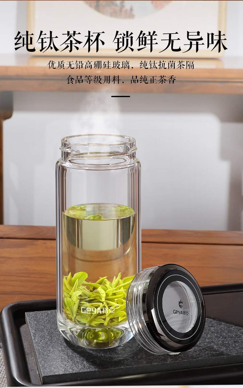 格亚(GEYA)清灵纯钛抑菌钛茶杯双层玻璃杯男士纯钛杯商务玻璃泡茶水杯杯子 双层【高端礼盒装】400ml