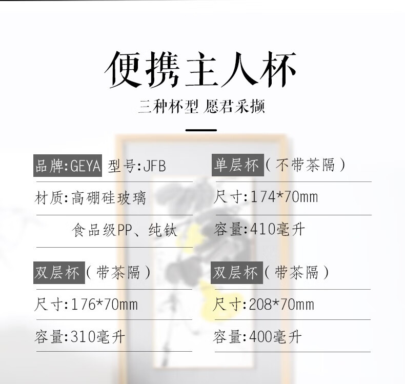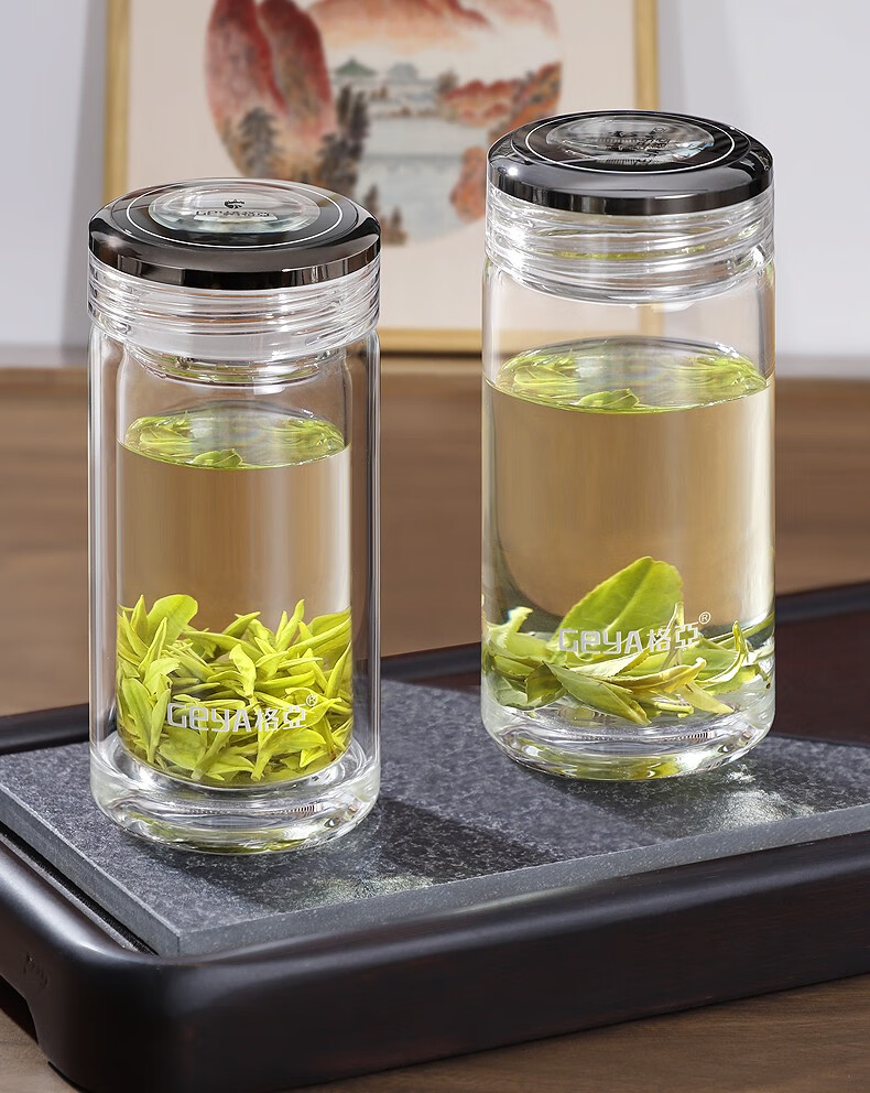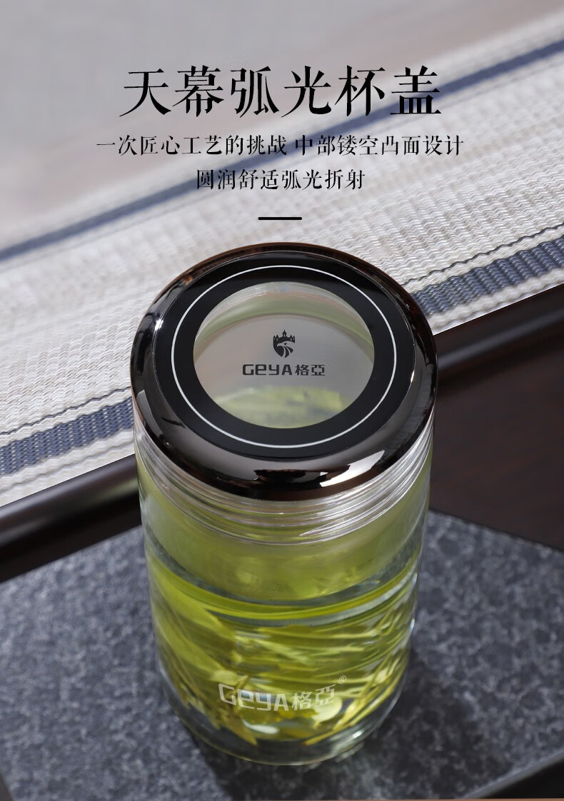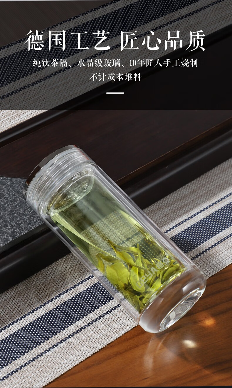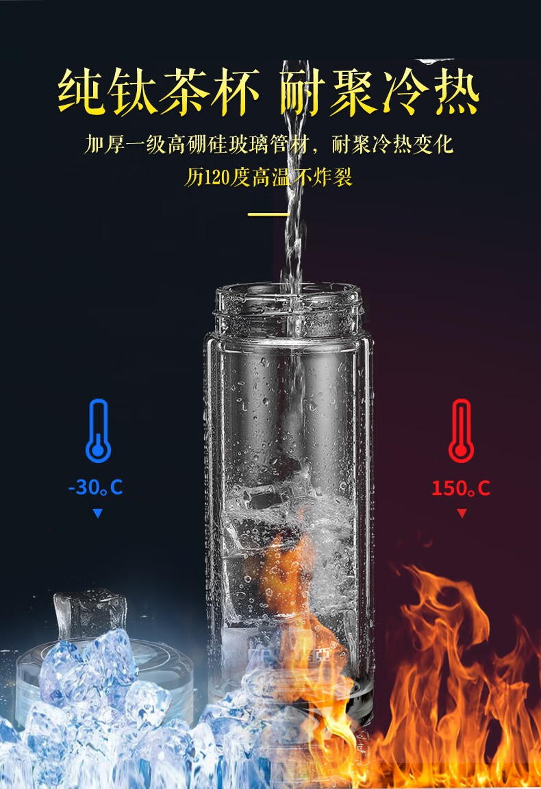格亚(GEYA)清灵纯钛抑菌钛茶杯双层玻璃杯男士纯钛杯商务玻璃泡茶水杯杯子 双层【高端礼盒装】400ml