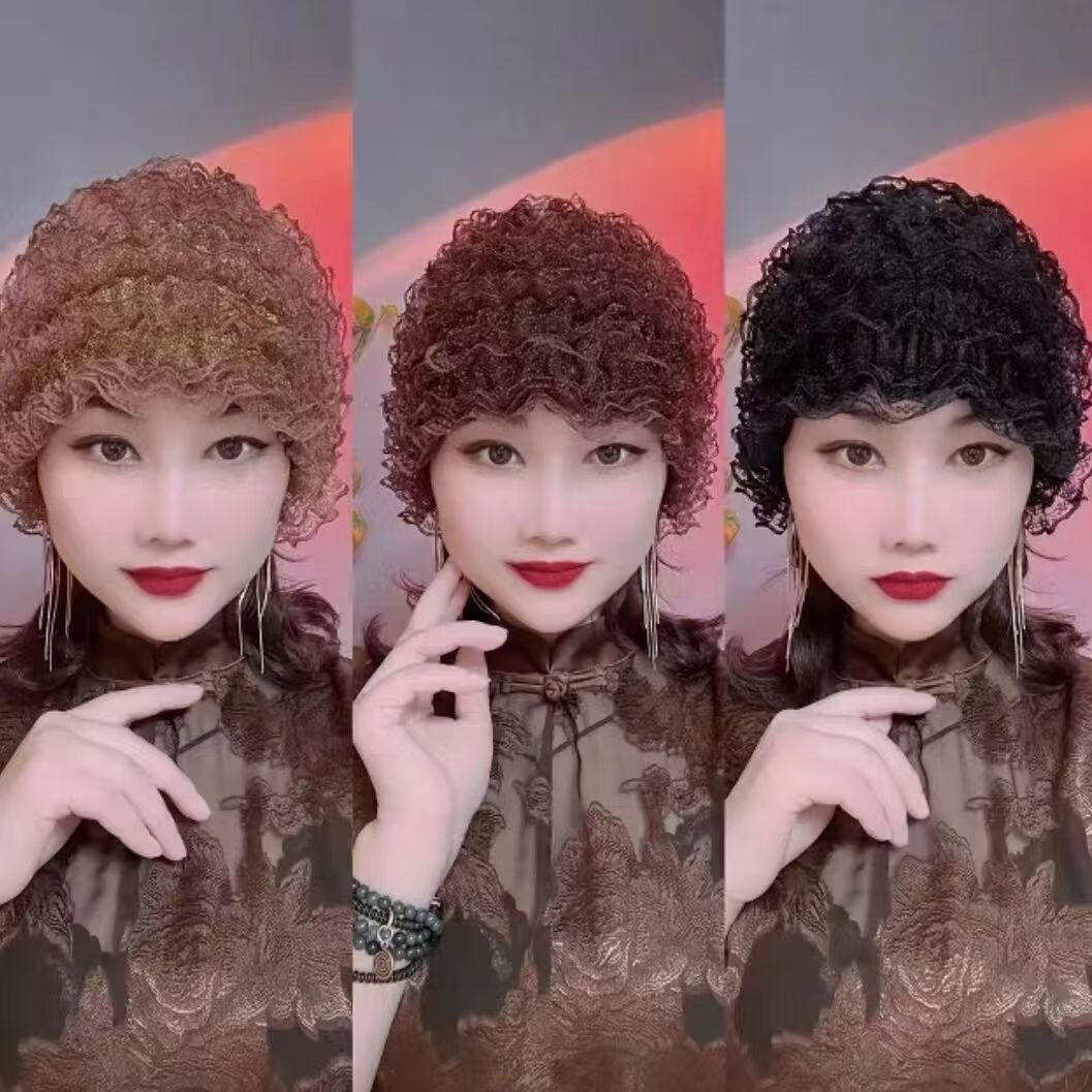 洋气薄款发带帽遮盖白发显年轻洋气包头帽蕾丝假发帽子网红四季帽 黑色 均码弹力松紧
