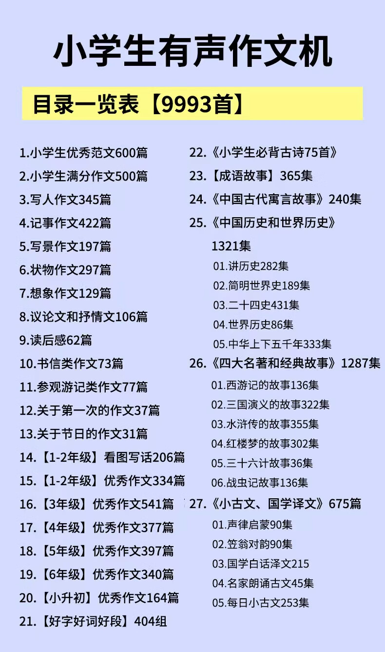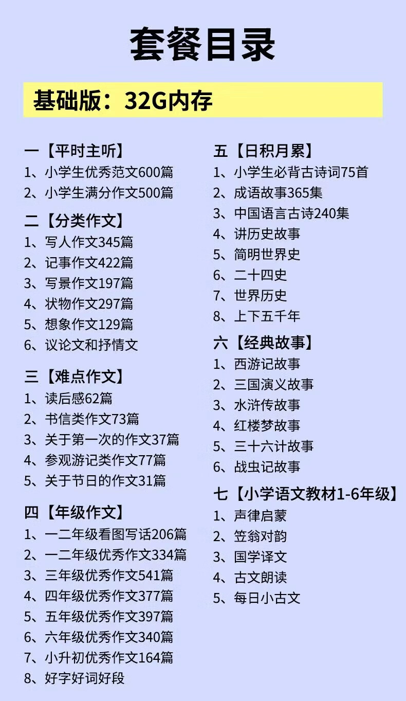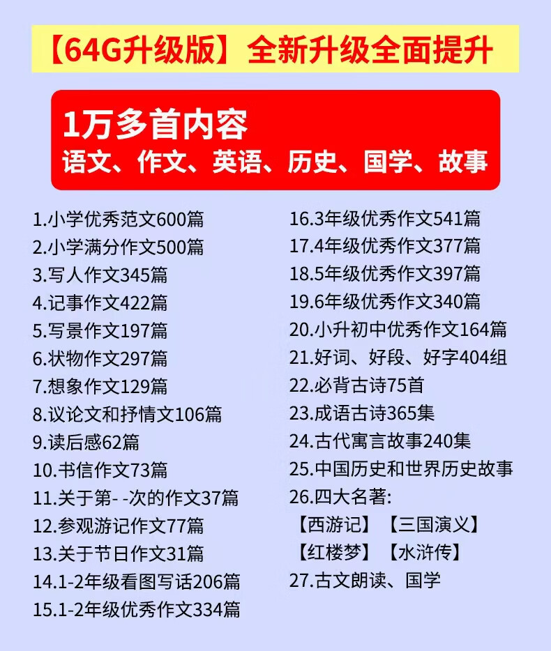 信博士小学生1-6年级优秀作文学习机语文听书机故事机 绿色64g作文机