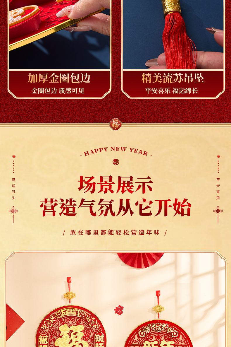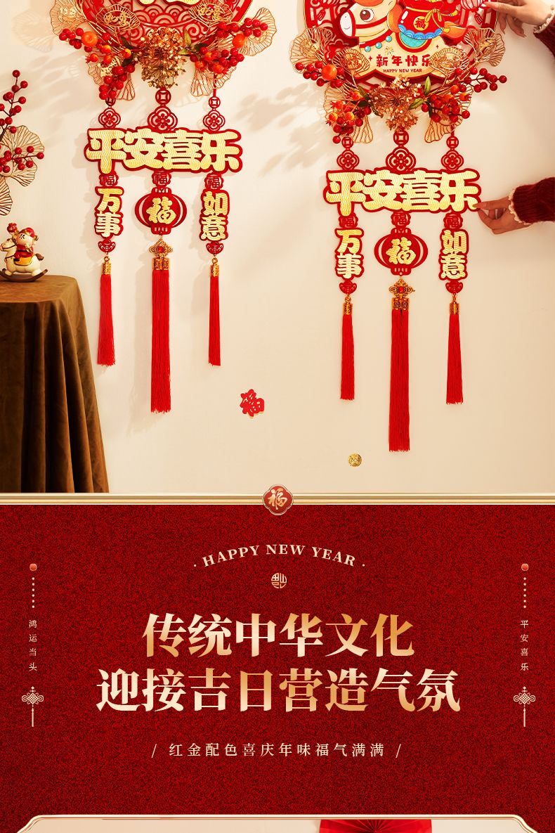 千棵树新款2026马年新年春节门贴福字挂饰元旦过年新春喜庆挂件装饰用品 平安喜乐挂件 立体新年挂件