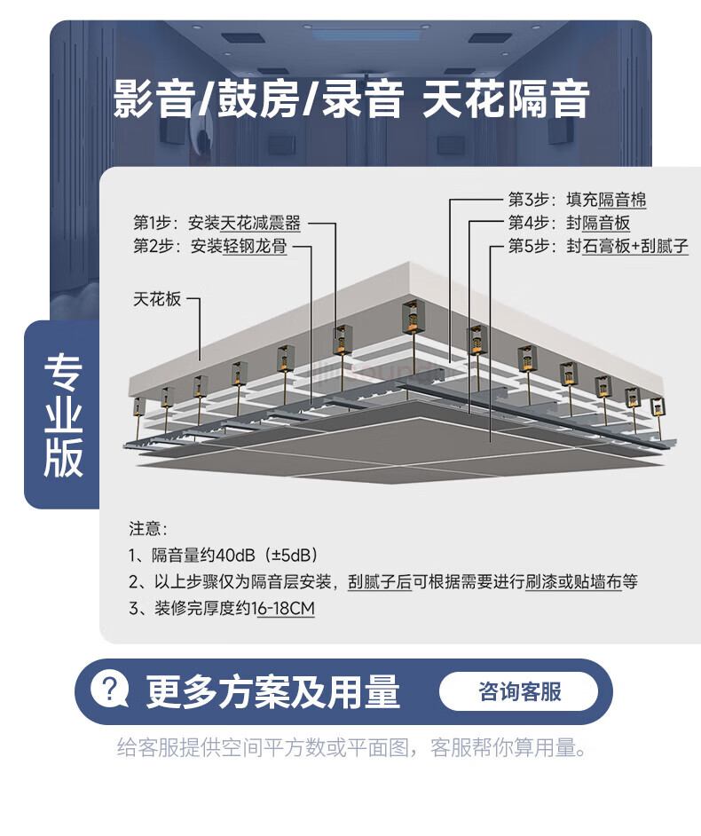 声博士(soundbox)环保阻尼隔音板墙体天花卧室家用阻燃隔音装修材料 一片1220*1220*12mm