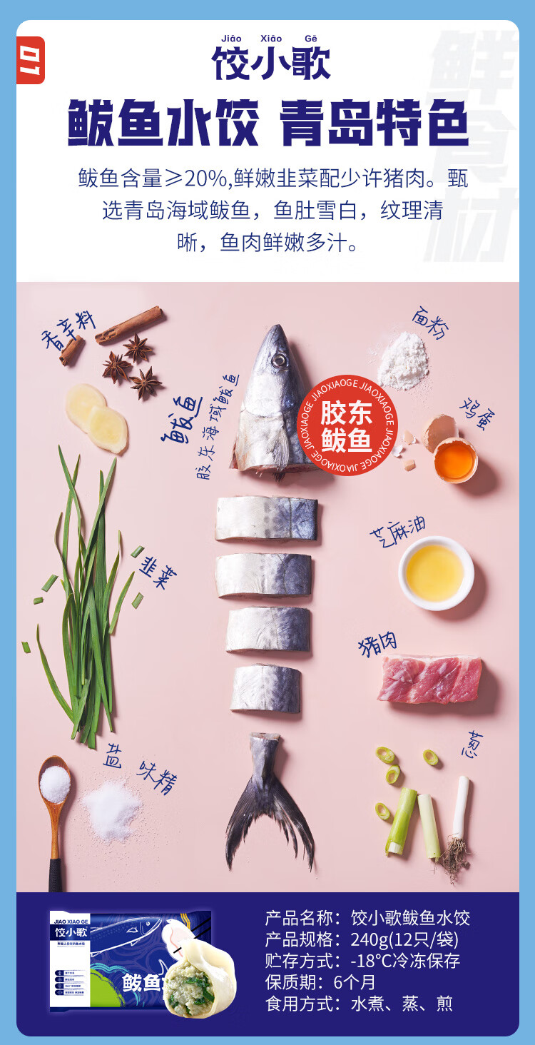饺小歌 鲅鱼水饺240g/12只早餐夜宵海鲜蒸煎饺速冻饺子生鲜速食年货送礼