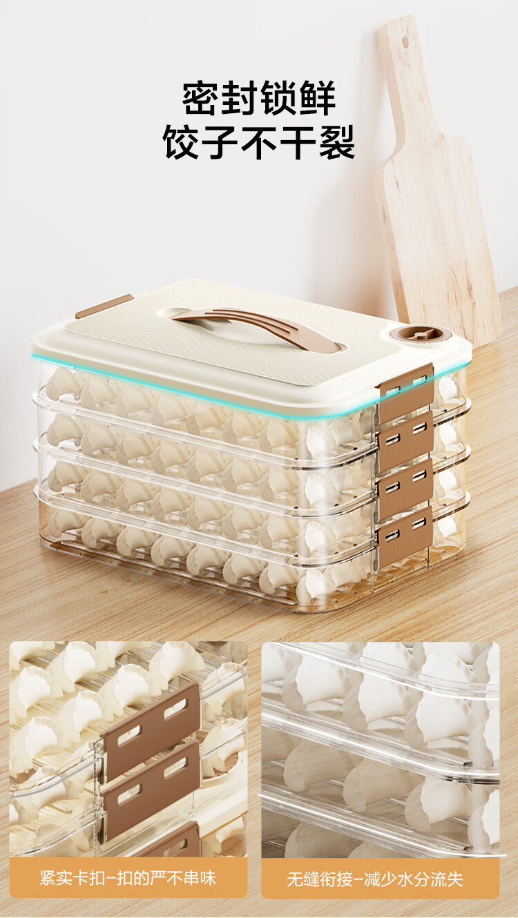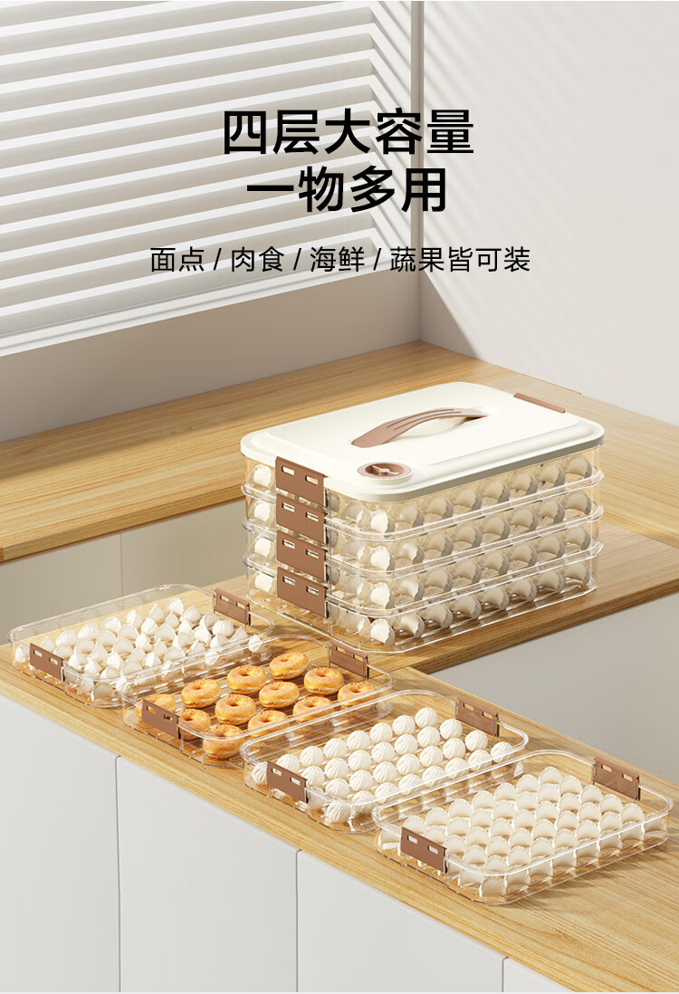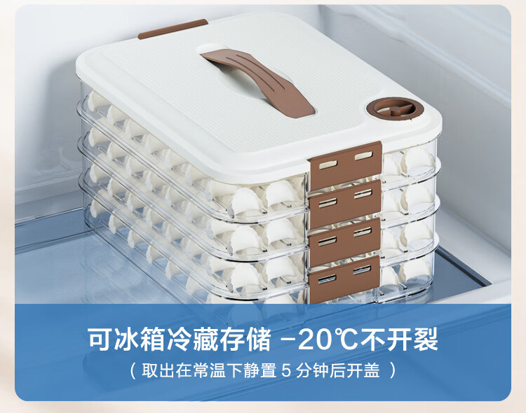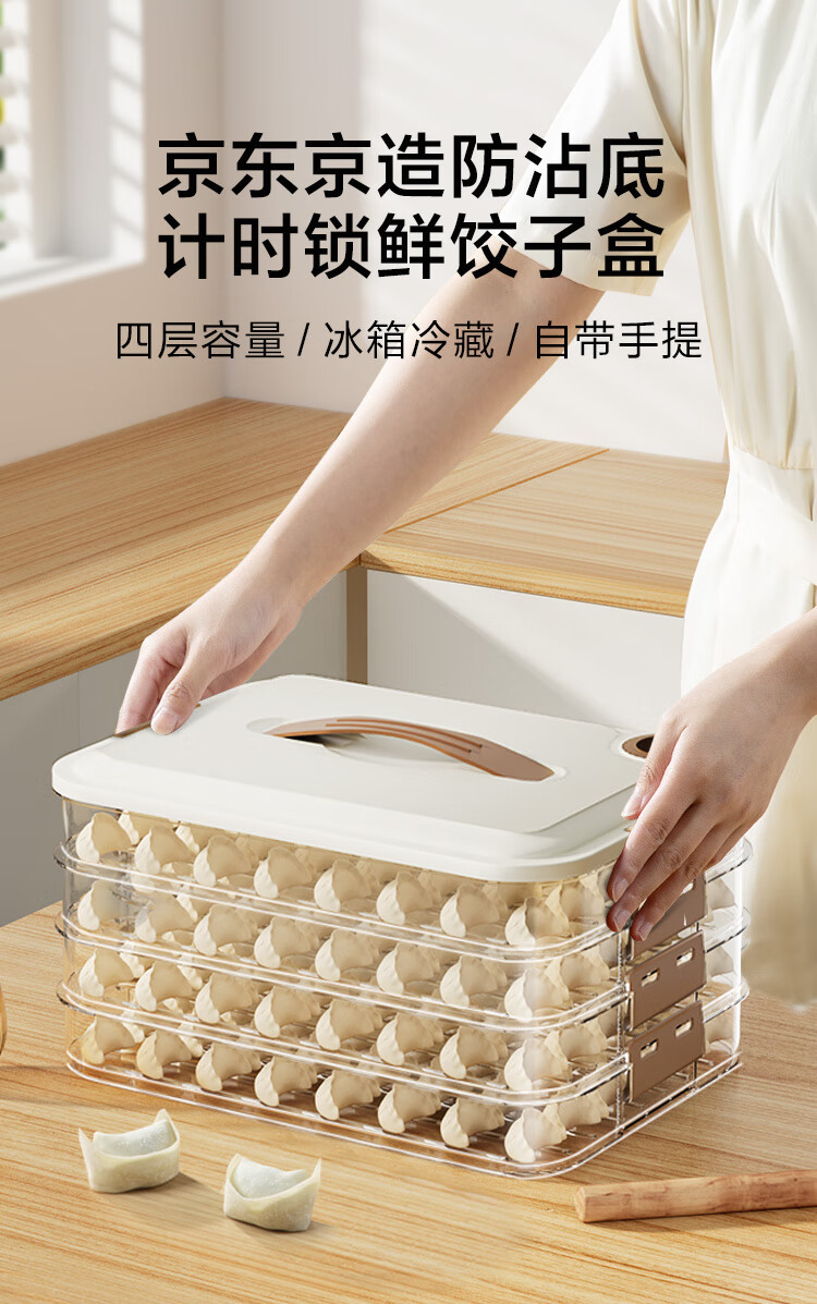 京东京造 饺子冰箱收纳盒 食品接触级包水饺馄饨冷冻收纳盒 (四层一盖)