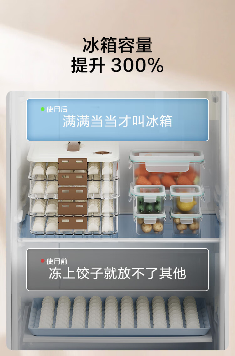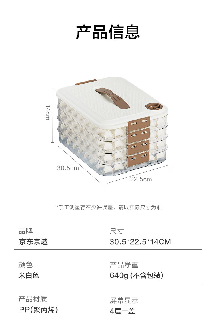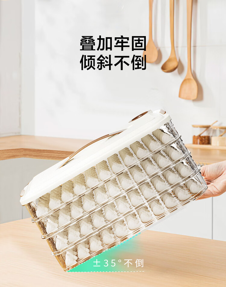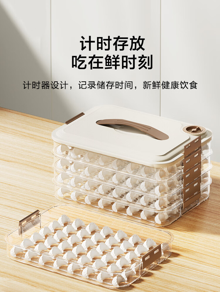 京东京造 饺子冰箱收纳盒 食品接触级包水饺馄饨冷冻收纳盒 (四层一盖)