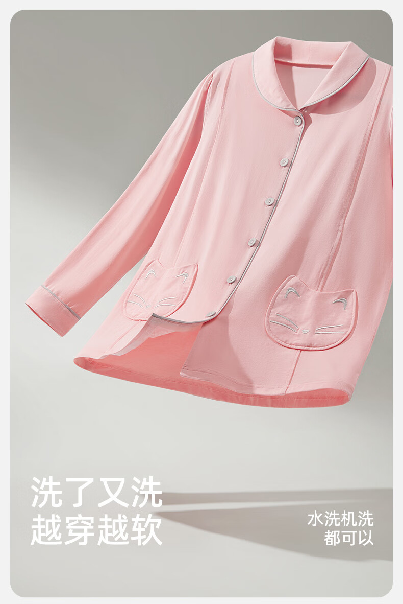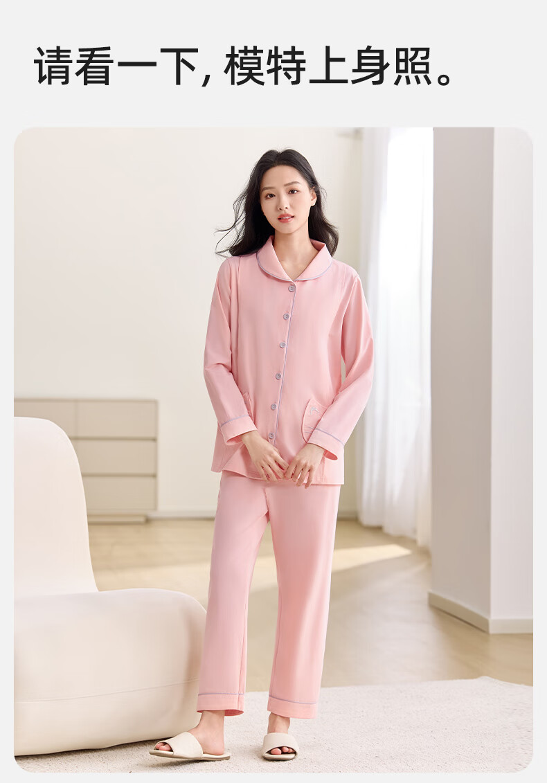 十月结晶月子服春秋薄款产妇棉产后孕妇睡衣哺乳家居服套装 粉色 M码