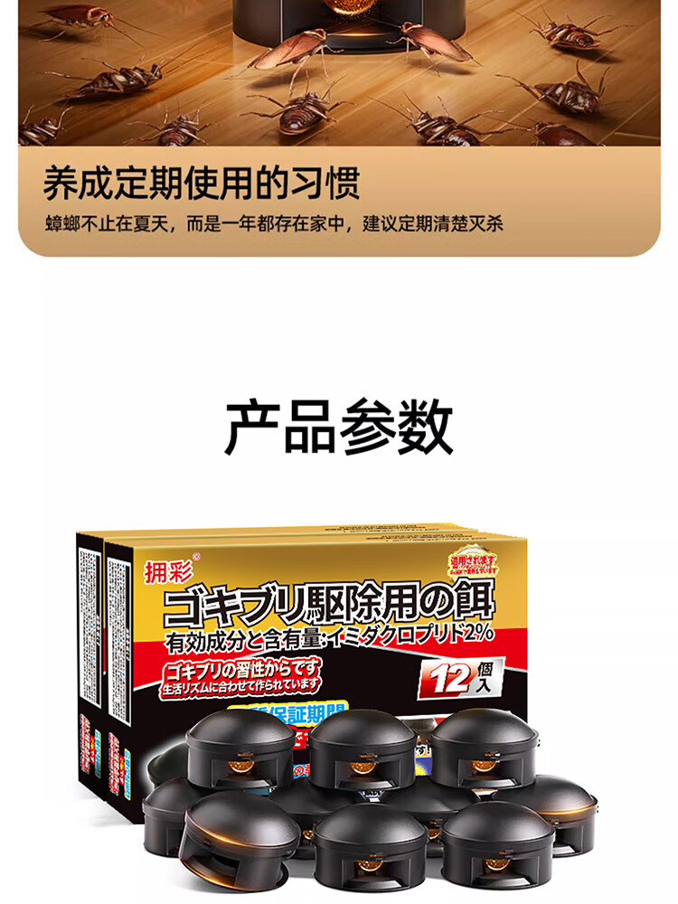 拥彩蟑螂药特效强力全窝端12枚虫卵双杀除灭防杀蟑螂屋双诱胶饵剂神器