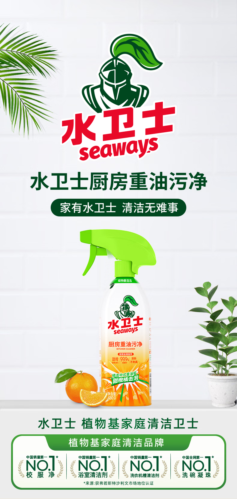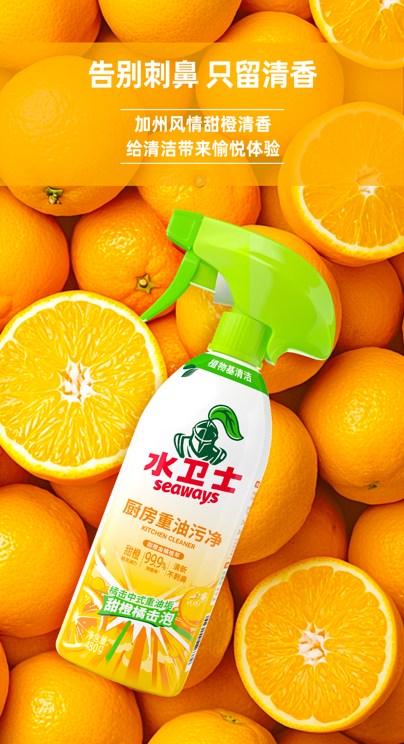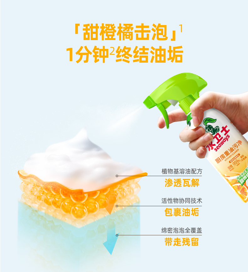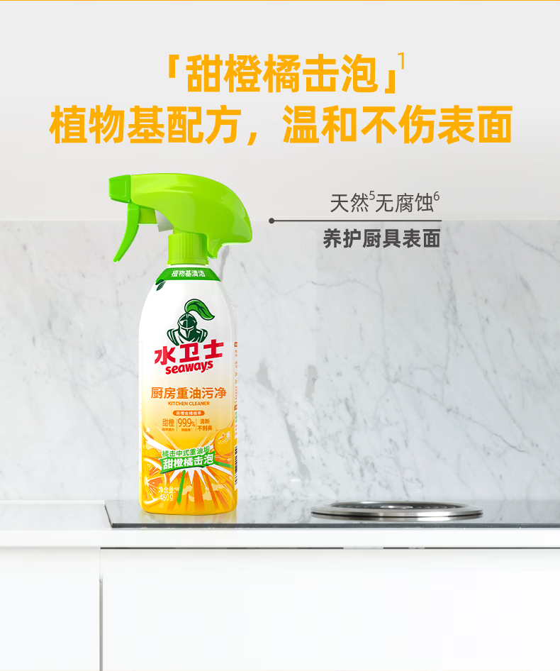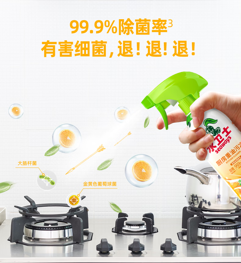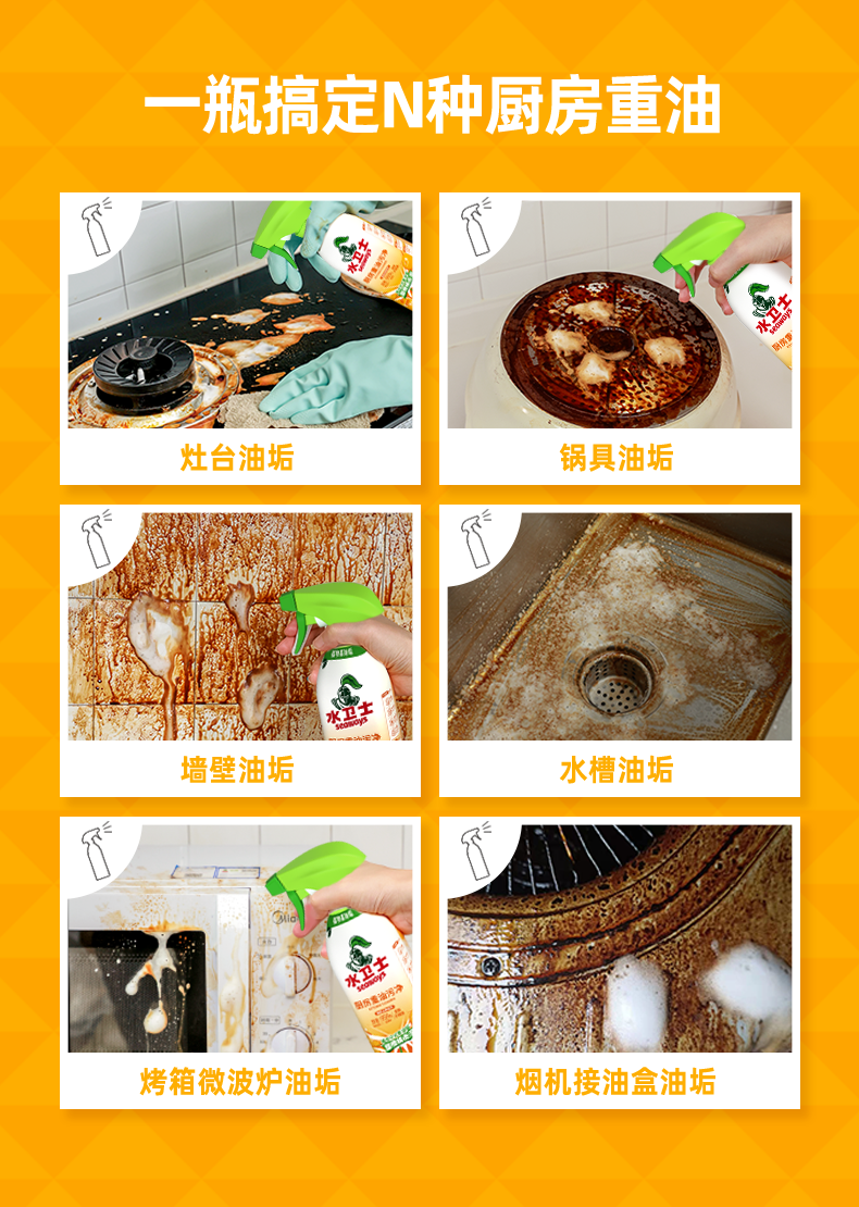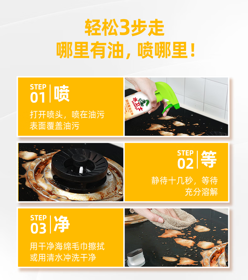 水卫士油污清洁剂厨房重油污净烟机清洗厨房去油污一喷净厨房家用水卫仕 3瓶1喷头【超值装】