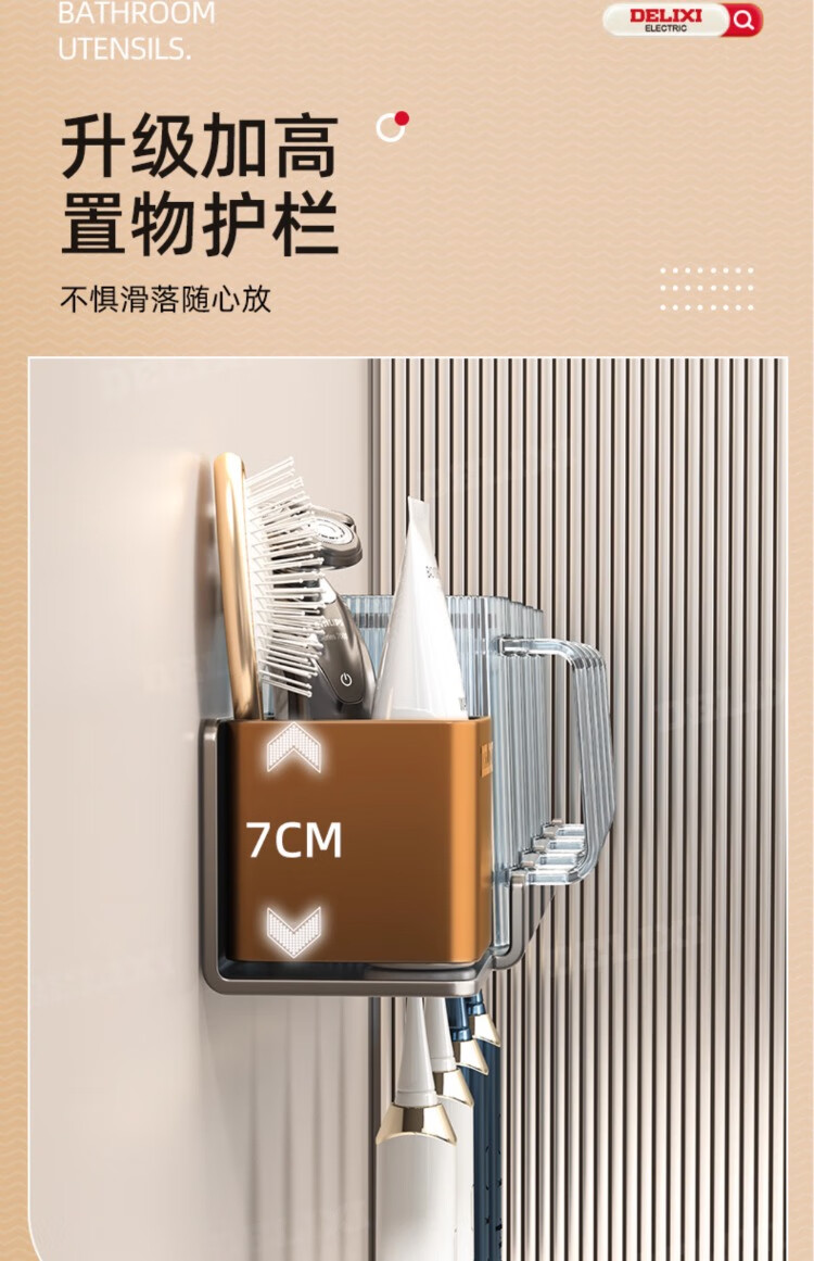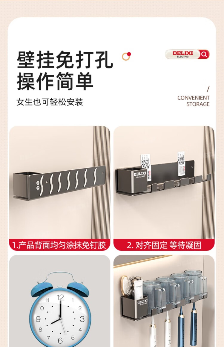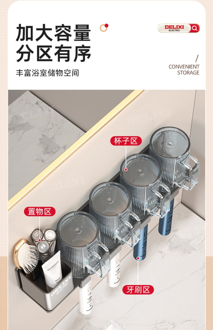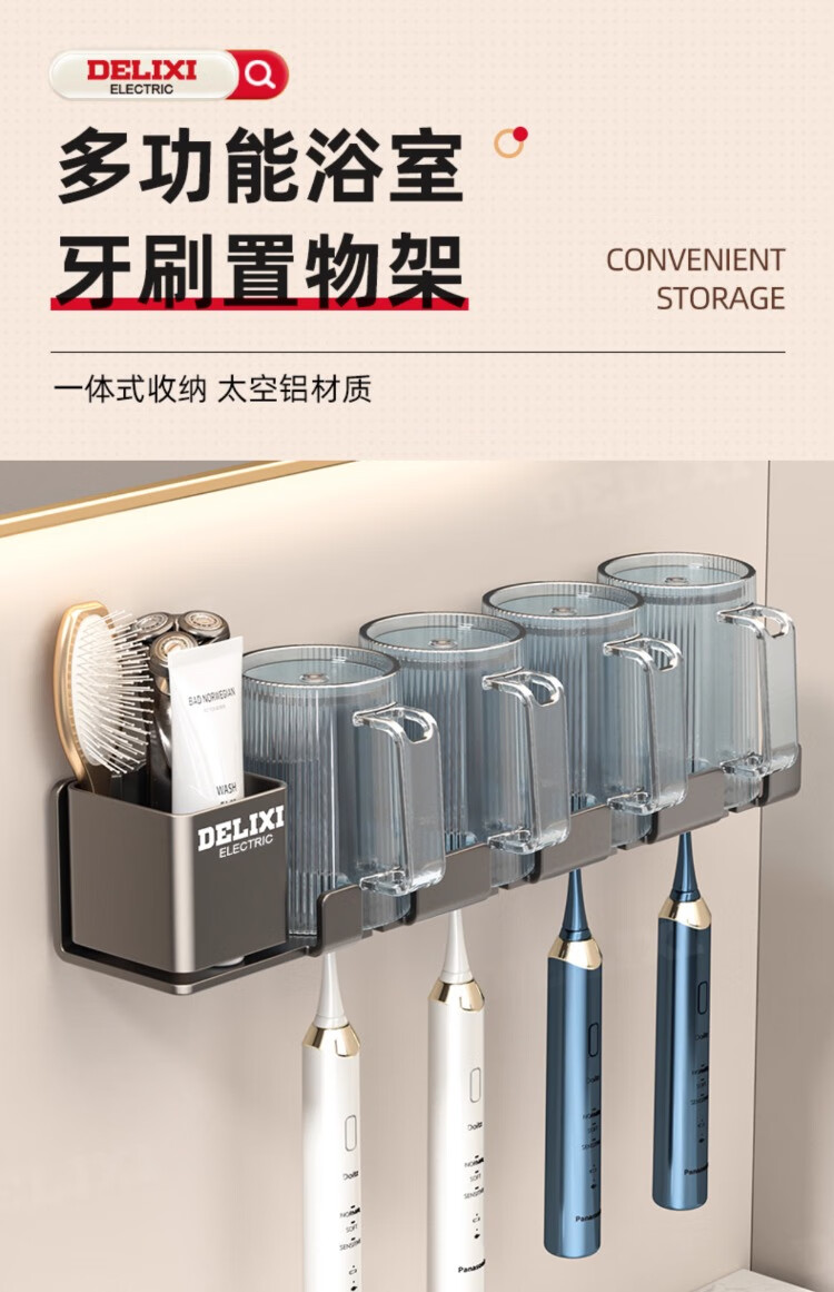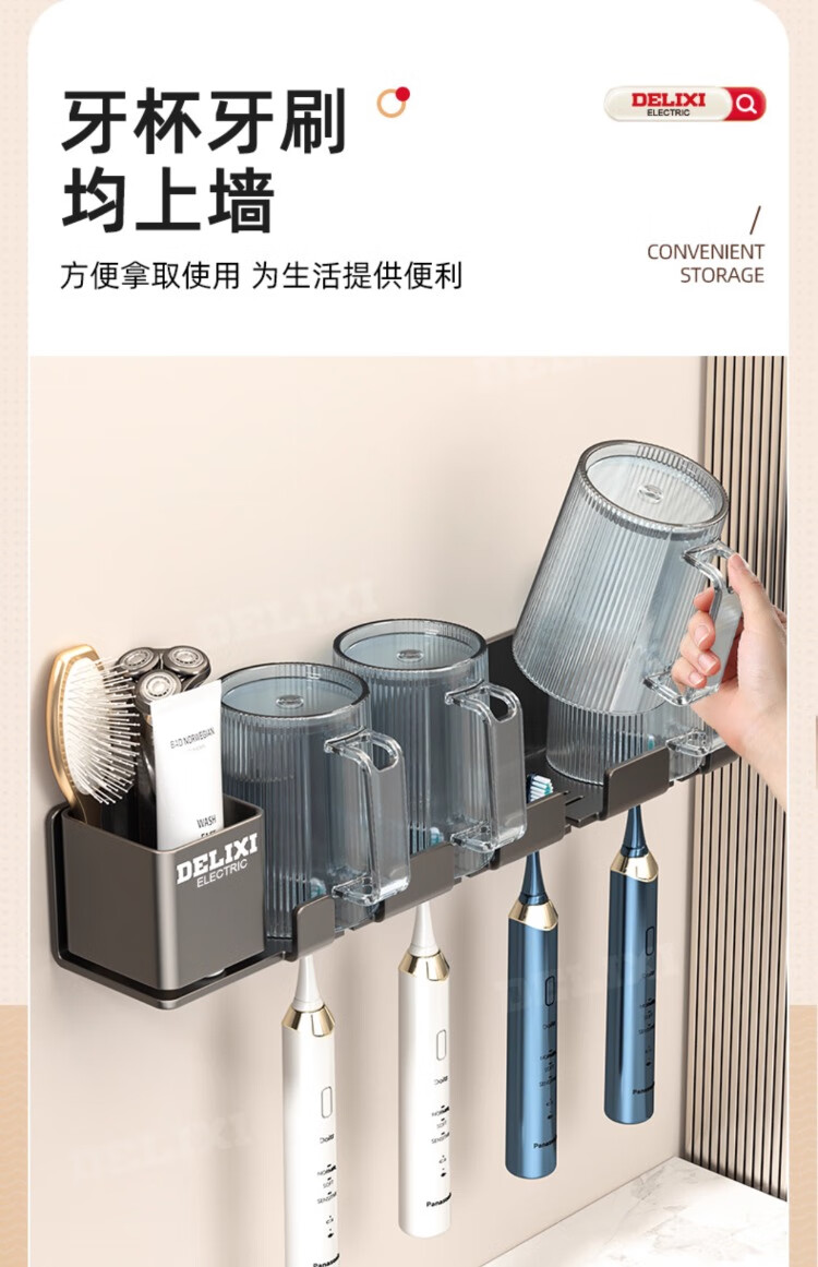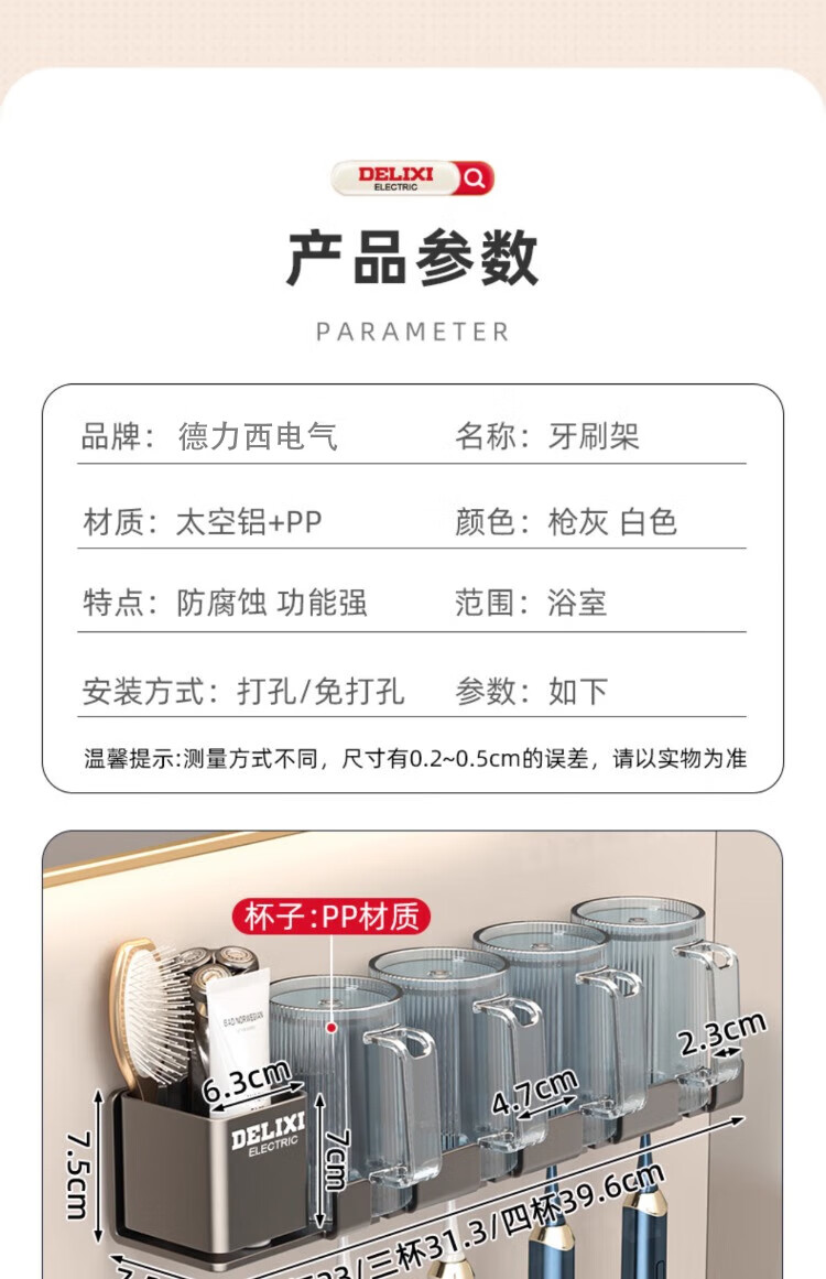 德力西(DELIXI)牙刷置物架免打孔卫生间漱口杯刷牙杯收纳壁挂式电动牙刷架115 牙刷架-三杯白色