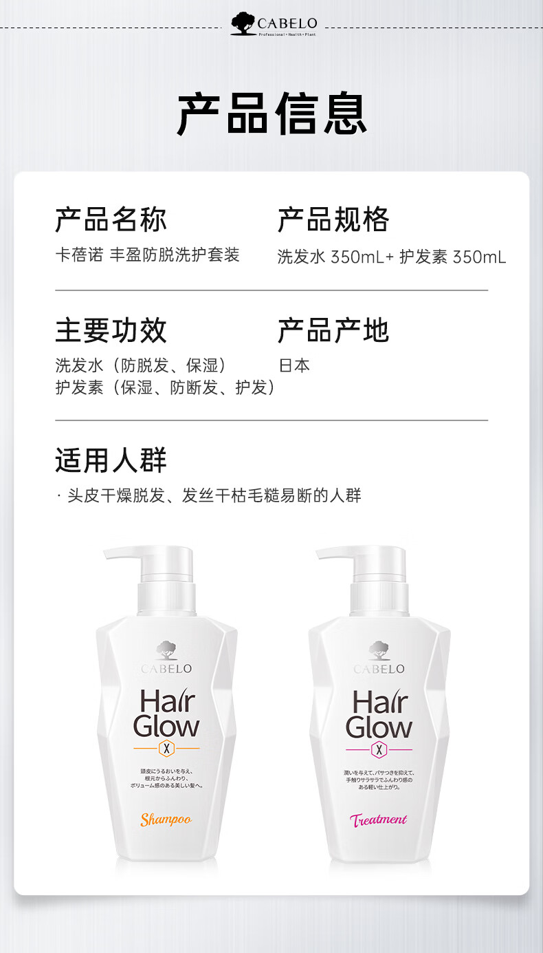 卡蓓诺(CABELO)丰盈润养防脱洗发水 焕活头皮发丝 细软干性发质适用【日本进口】 【防脱润养】焕活头皮 洗发水 355ml*1瓶