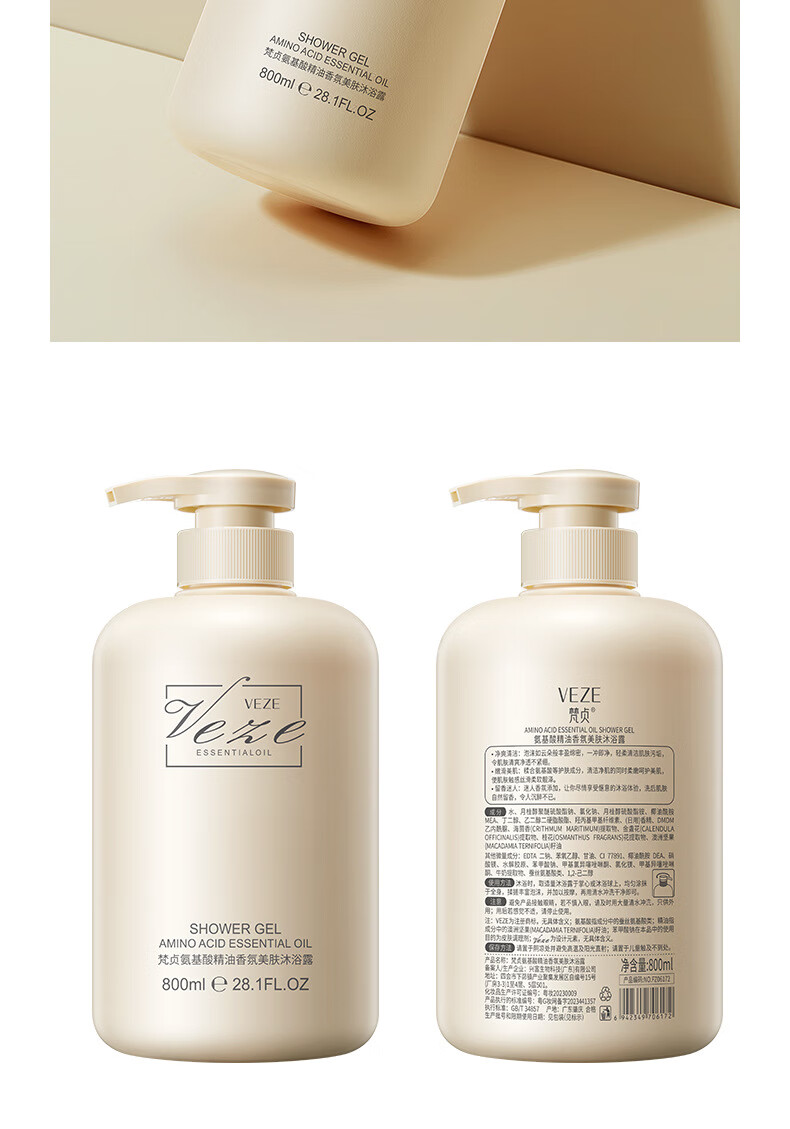 梵贞沐浴露氨基酸精油香氛美肤沐浴露 深层清洁呵护肌肤清凉舒爽 洗发 沐浴露(新)+洗发露(新)