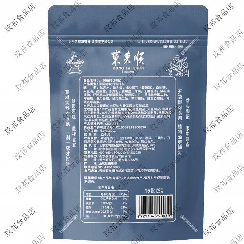 东来顺火锅蘸料鲜香麻辣香辣味老北京传统沾料麻酱清真涮锅 东来顺125g鲜香蘸料*3包