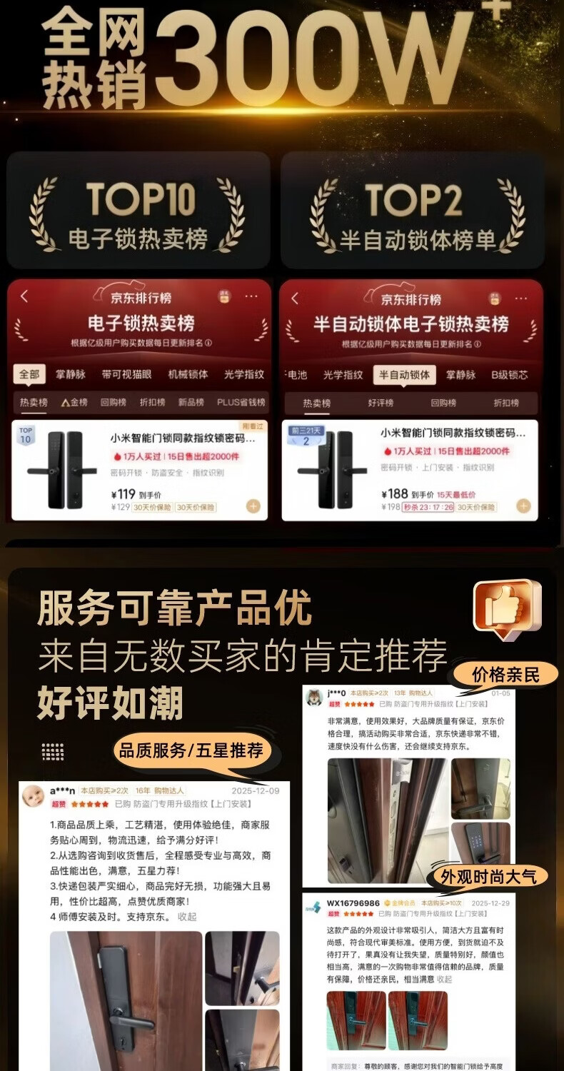 小米智能门锁同款指纹锁密码锁民宿公寓智能门锁电子锁家用防盗 防盗门专用升级指纹【上门安装】