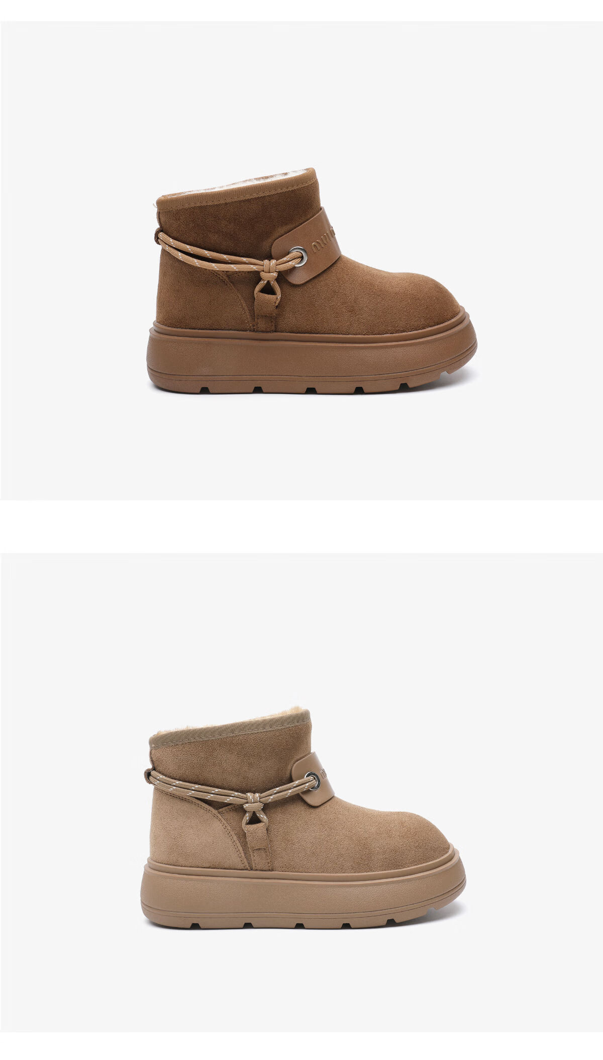 月芽儿复古加绒加厚织物鞋女2025新款冬季增高保暖雪地靴短筒靴 绒里棕色03T 34