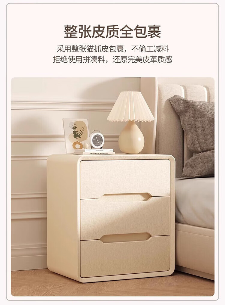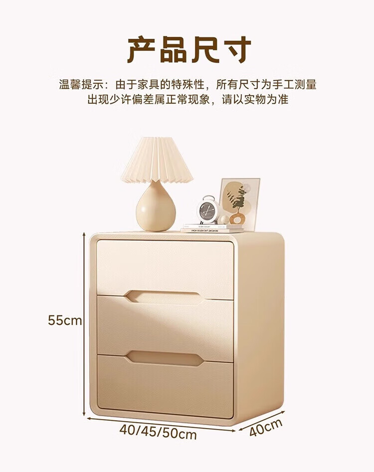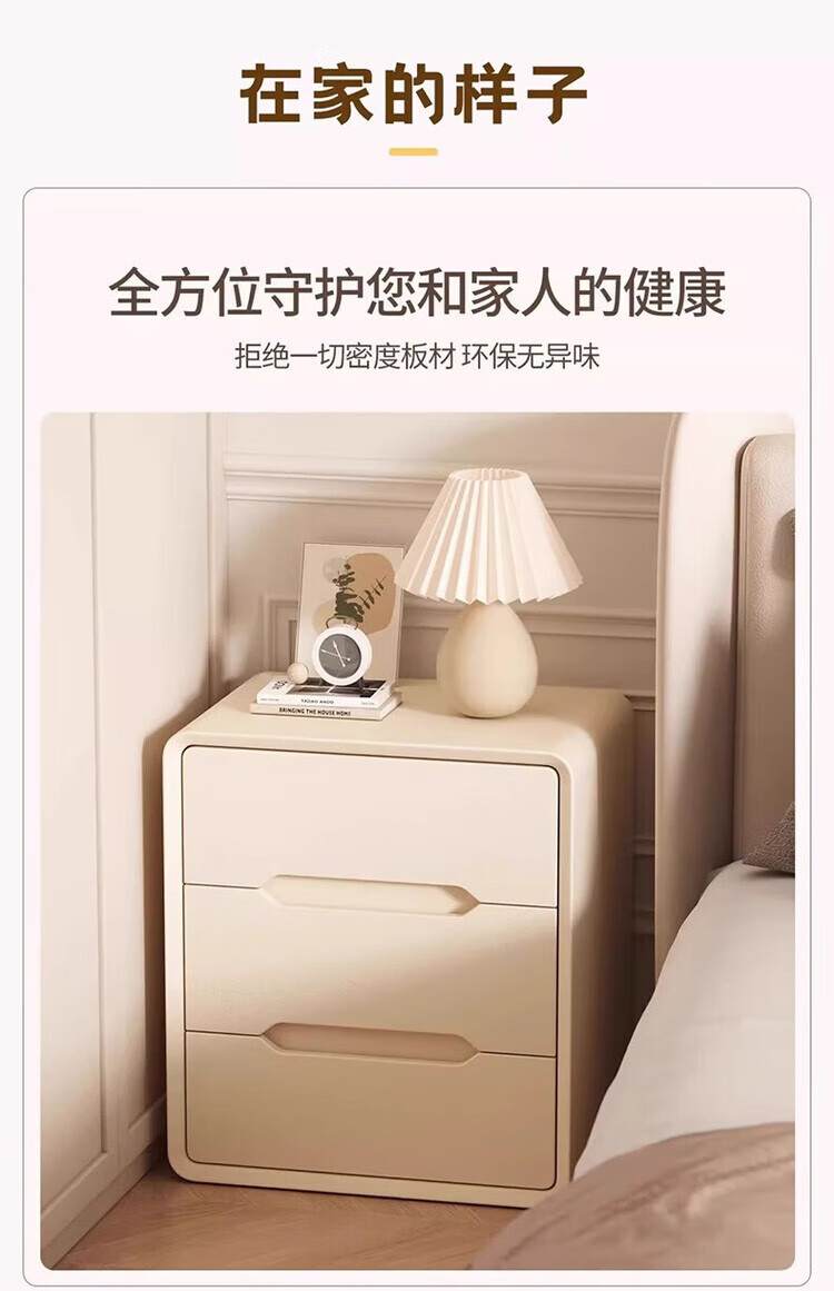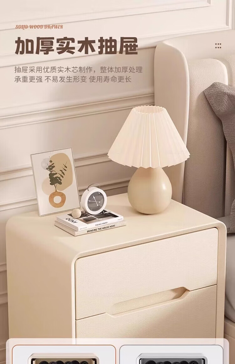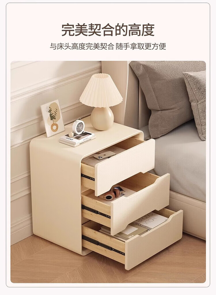 耐禾奶油风三抽实木床头柜简约现代白色轻奢家用卧室床头置物床边收纳 奶白色【实木抽屉+整装发货】 长40x宽40x高55cm