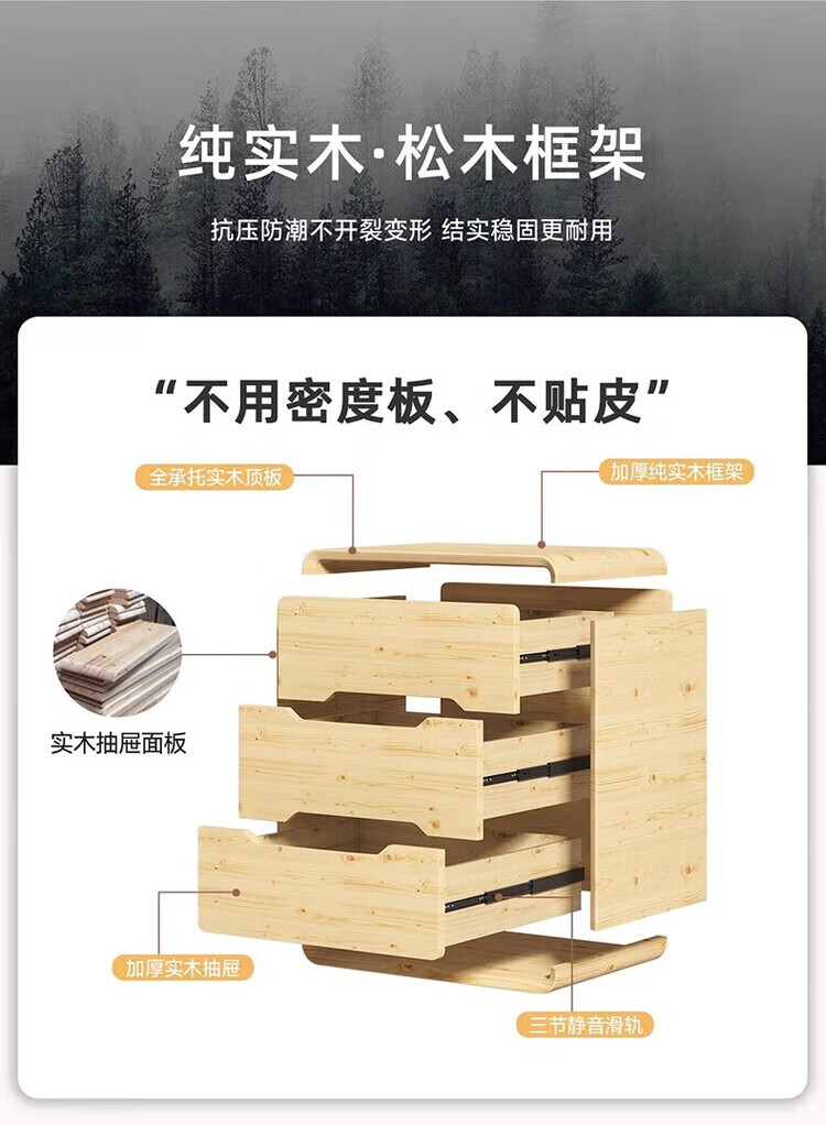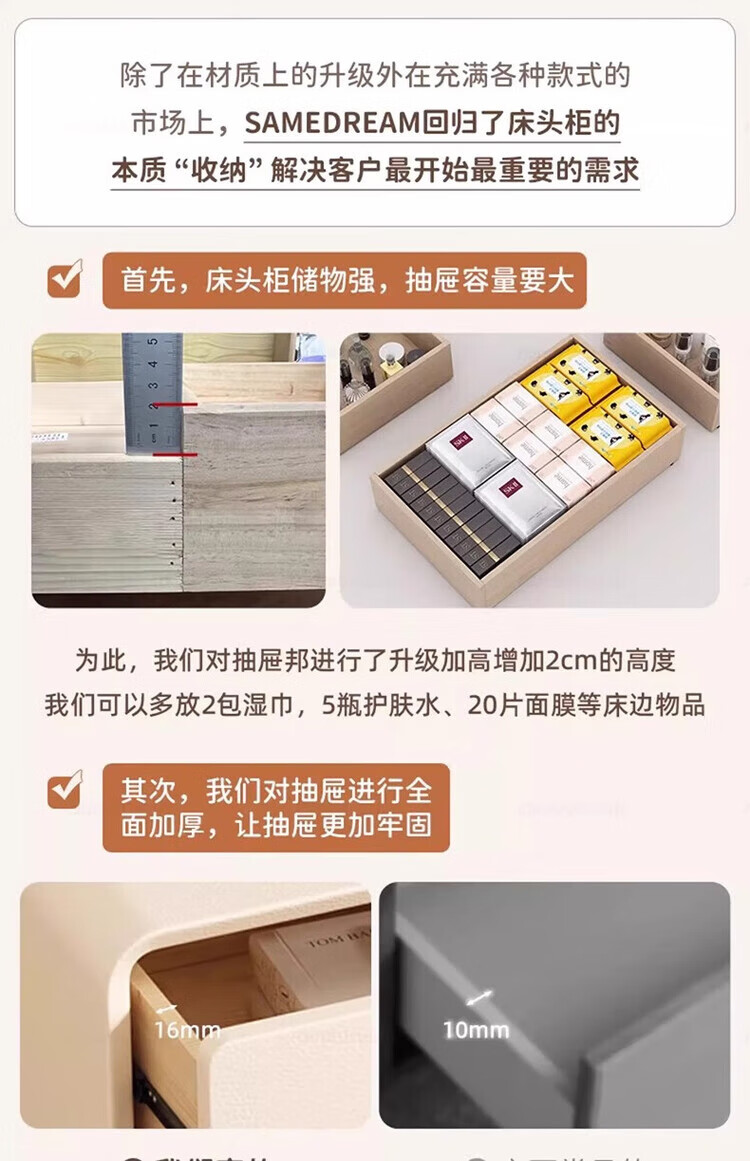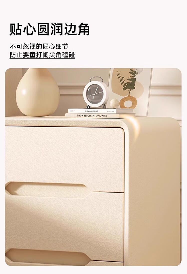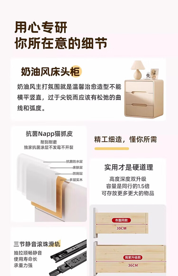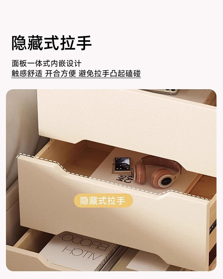 耐禾奶油风三抽实木床头柜简约现代白色轻奢家用卧室床头置物床边收纳 奶白色【实木抽屉+整装发货】 长40x宽40x高55cm