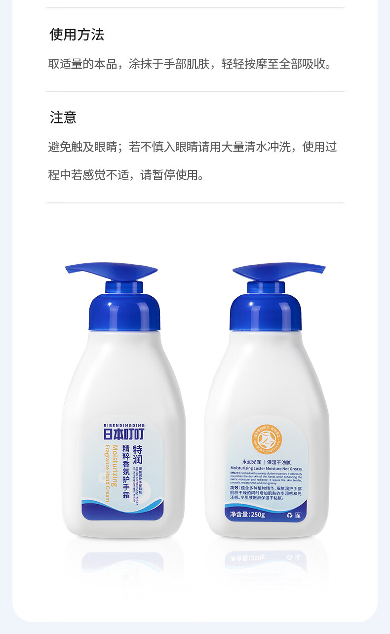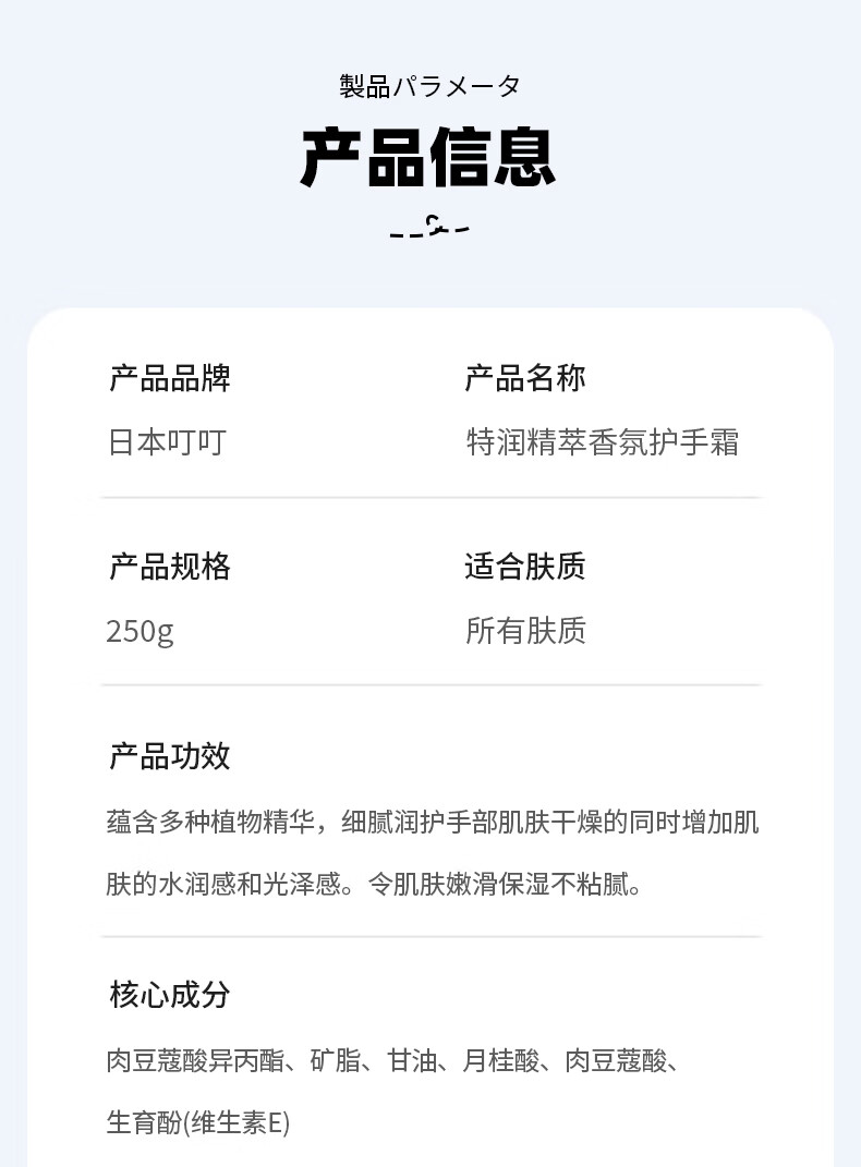 日本叮叮特润香氛护手霜 滋润保湿手部护理持久留香清爽不粘腻润肤250g*2