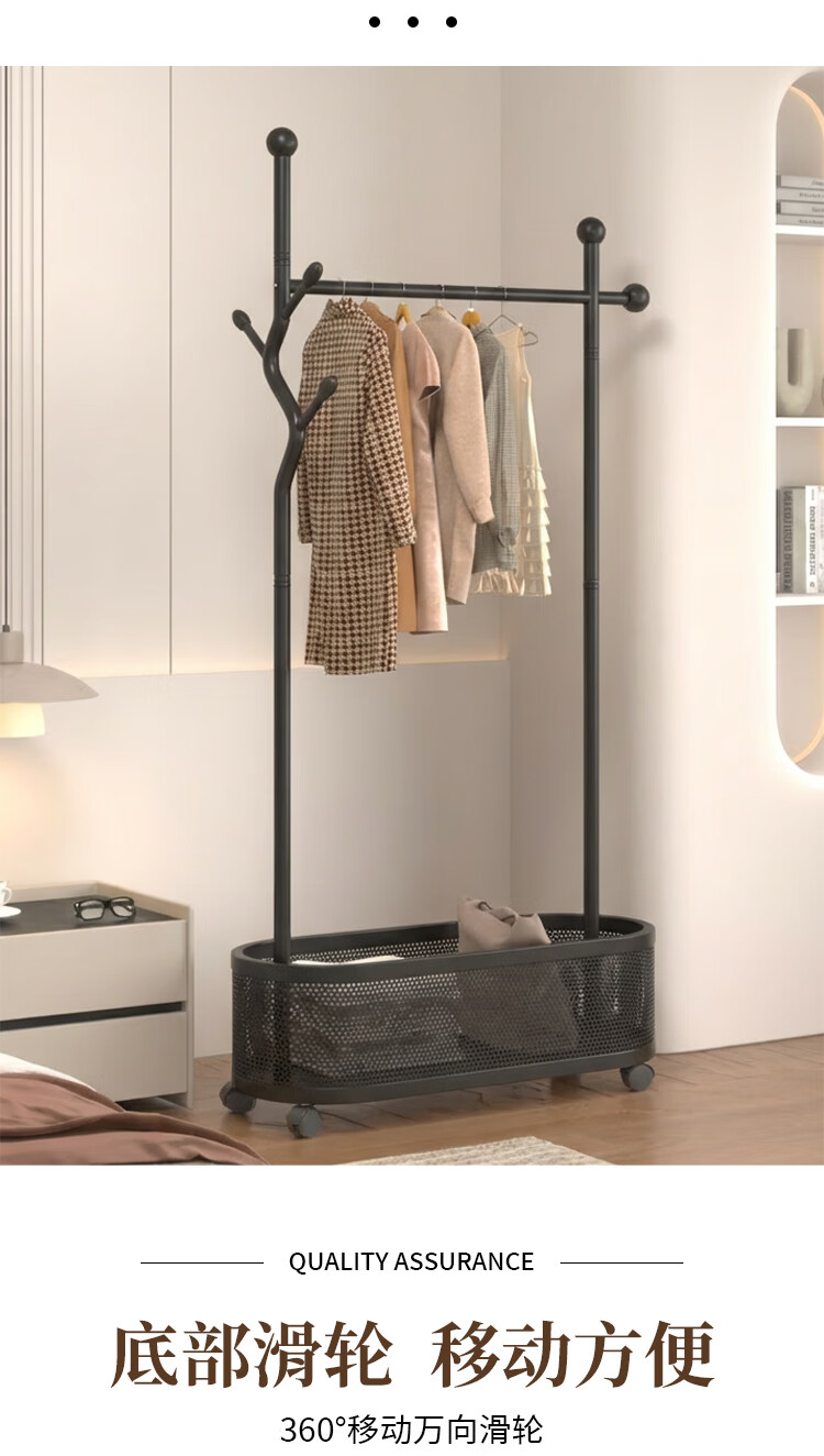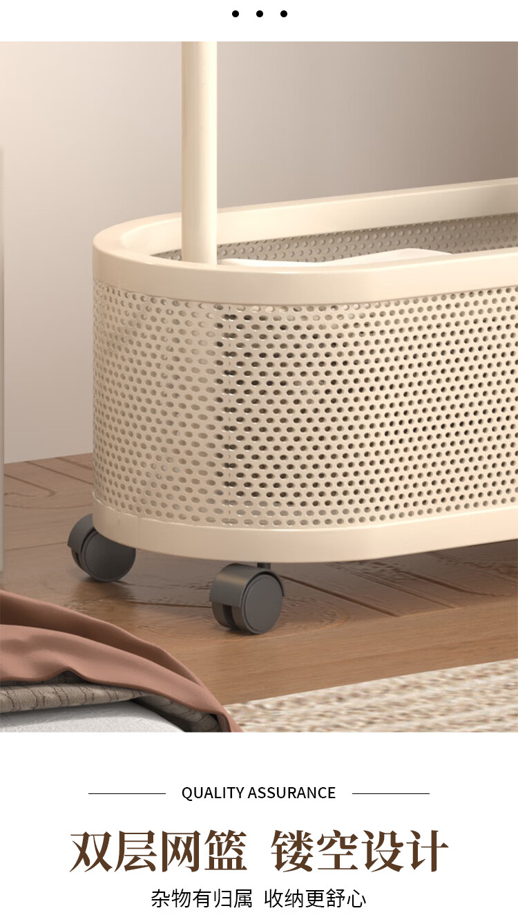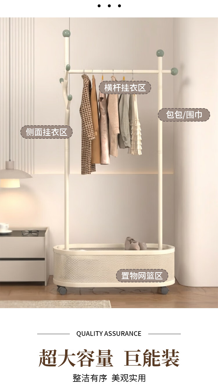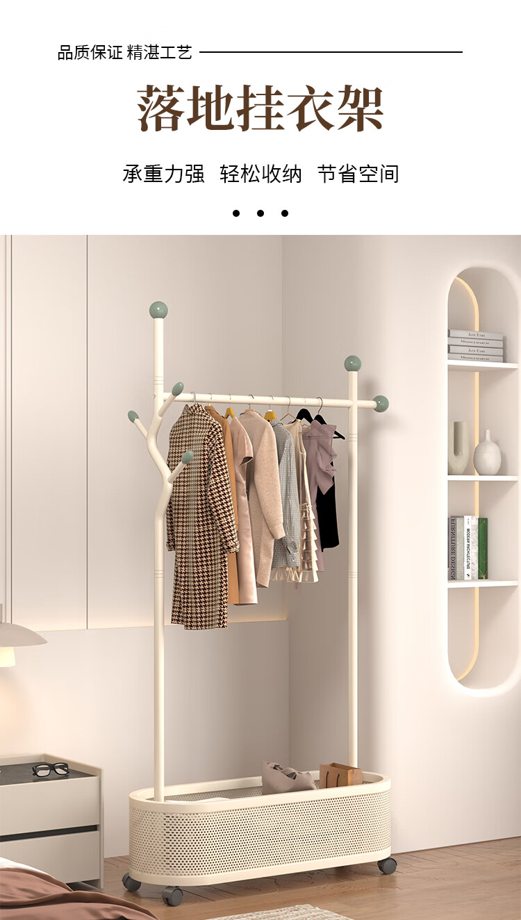 馨婺家衣帽架落地卧室挂衣架奶油风家用客厅单杆晾衣服架挂包收纳衣服架 奶油白-长50cm【承重稳固】可移动
