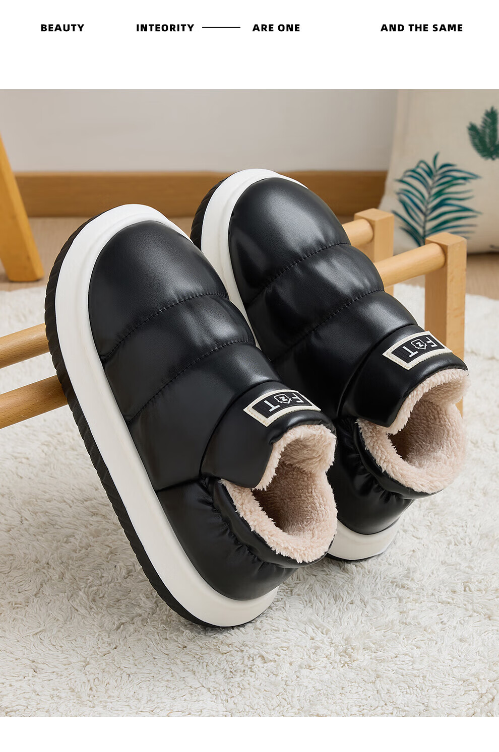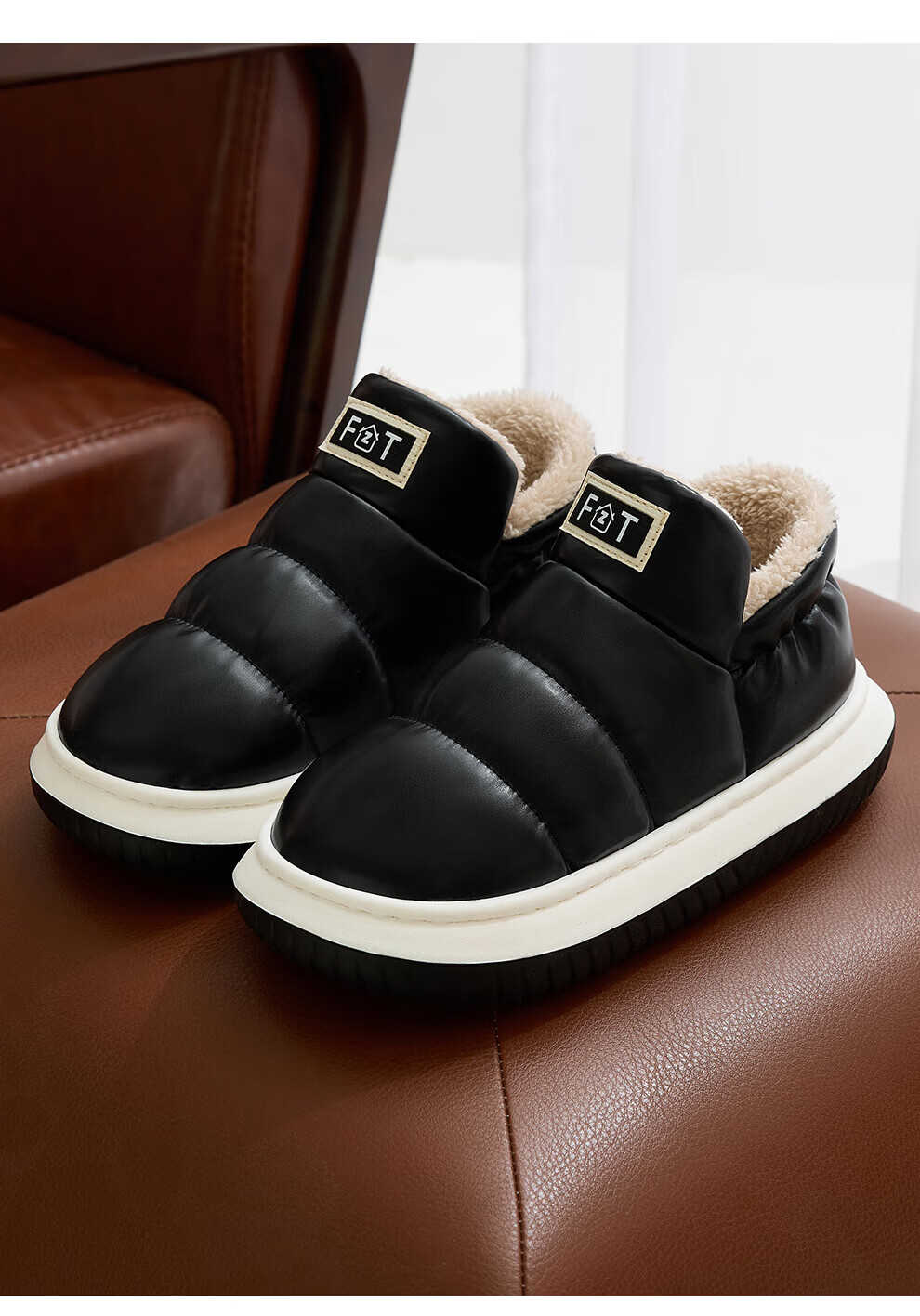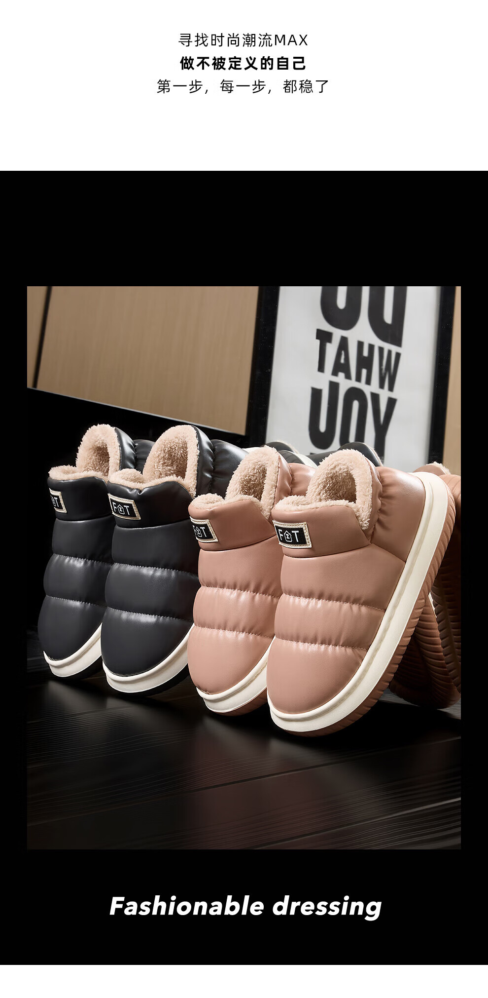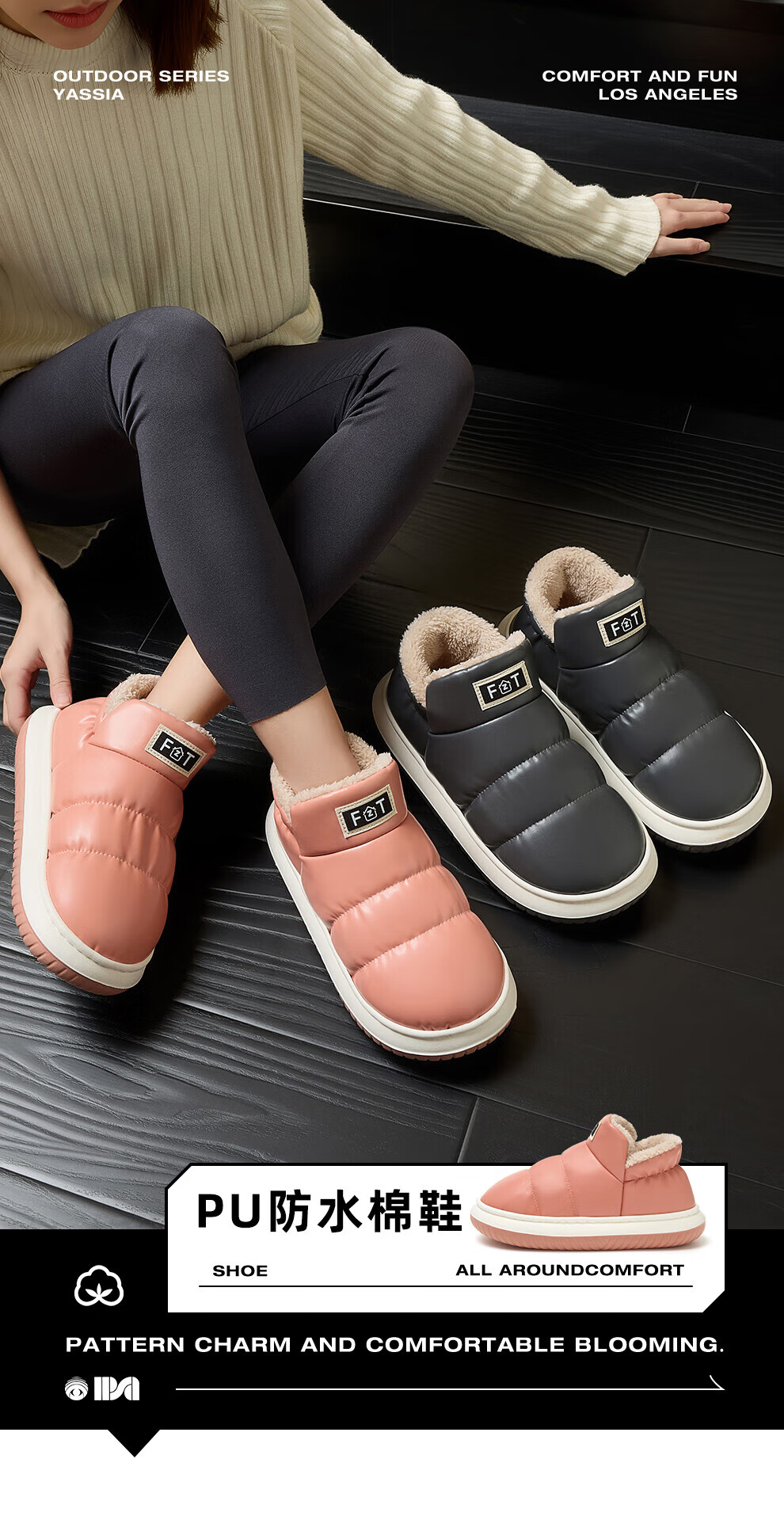 FZT防水老人专用棉拖鞋男士2025新款冬季包跟厚底家居户外保暖防滑女 黑色 36-37 适合35-36【内长215mm】