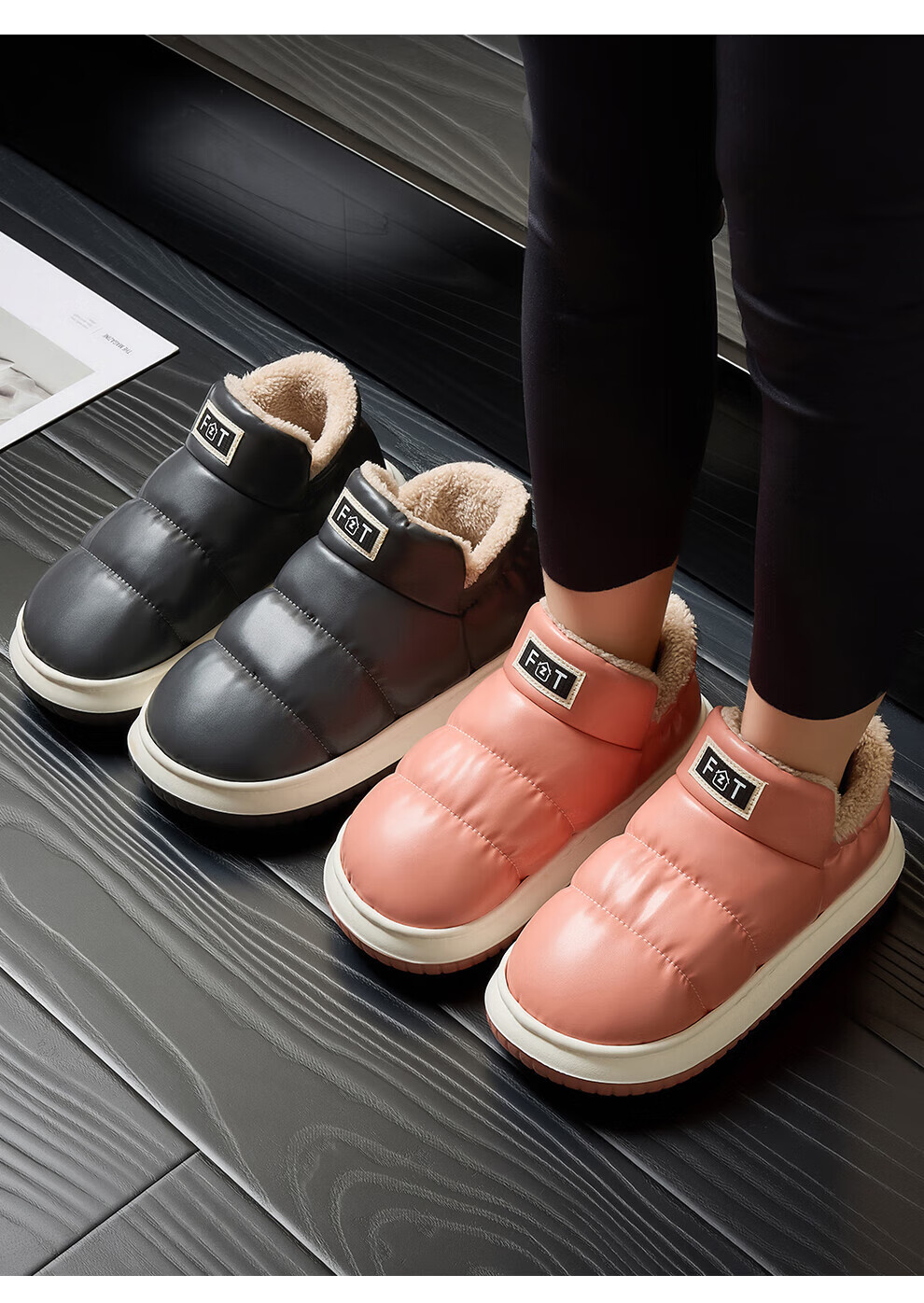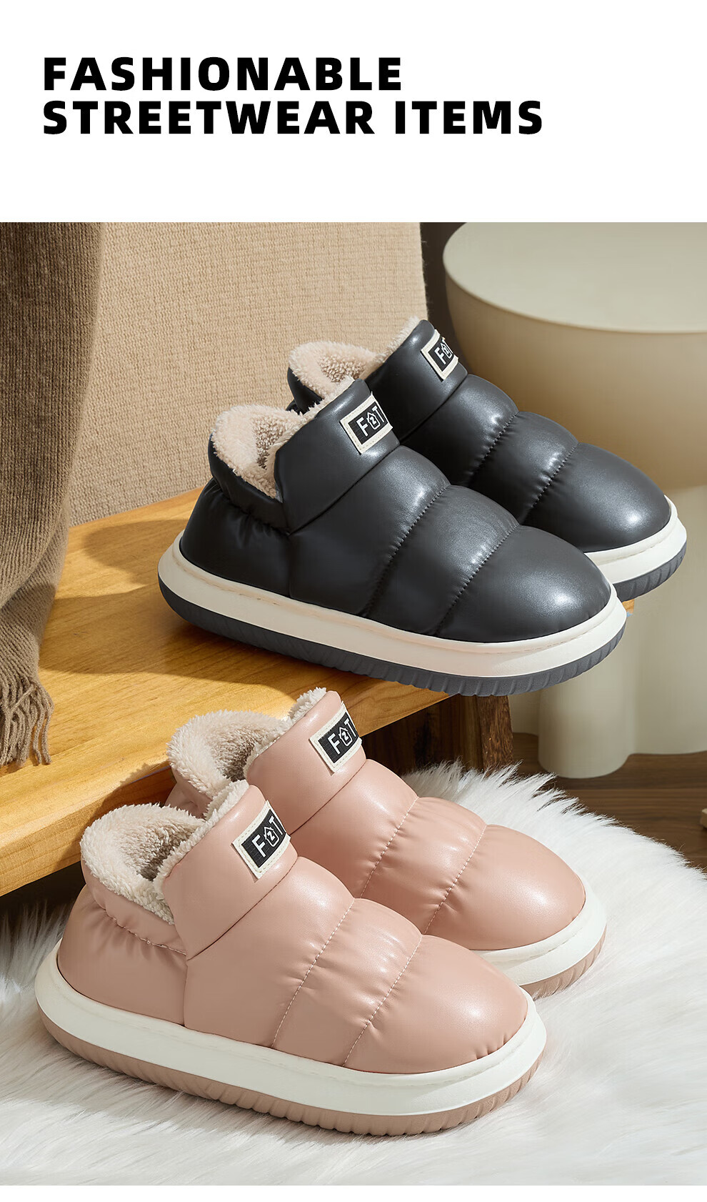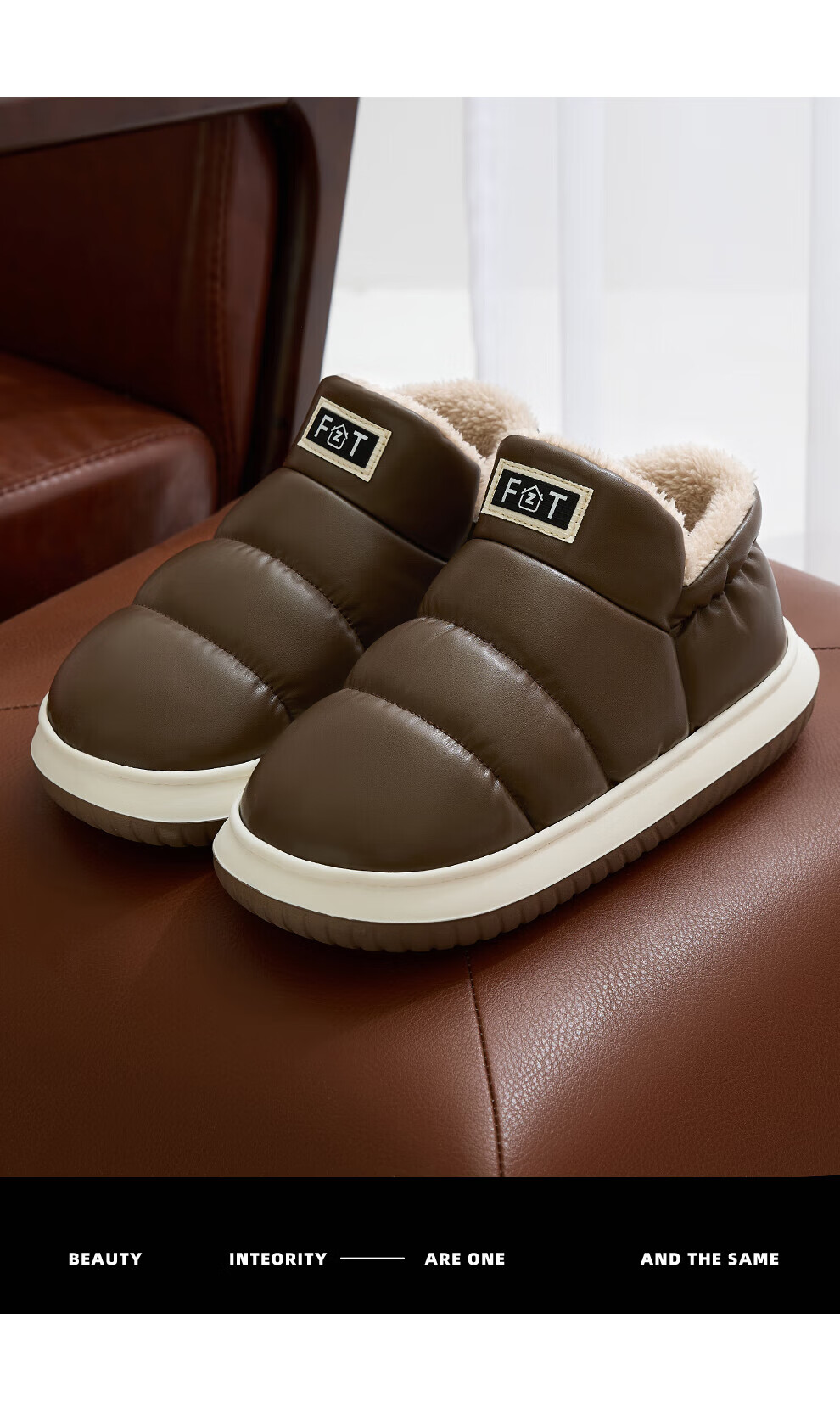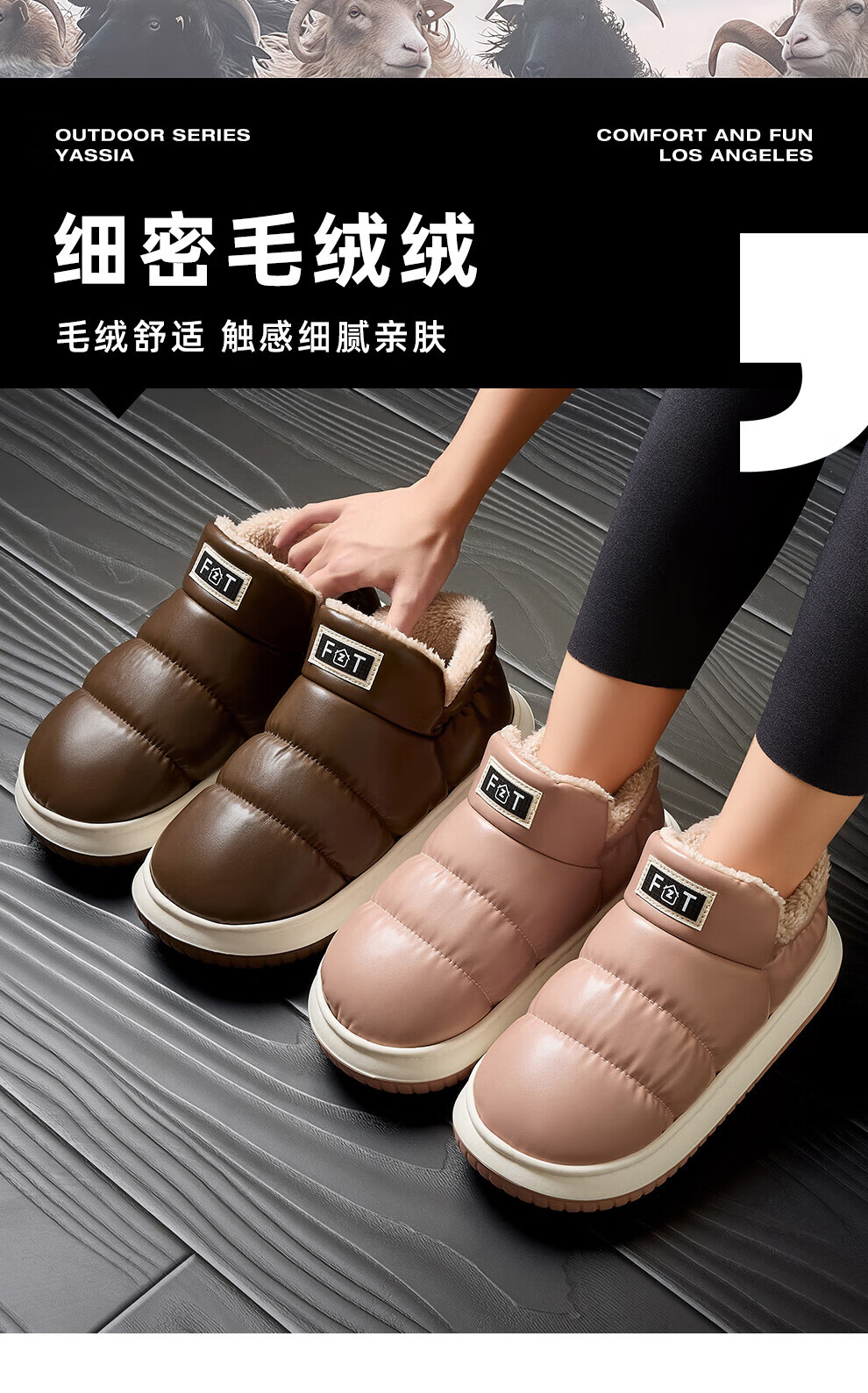 FZT防水老人专用棉拖鞋男士2025新款冬季包跟厚底家居户外保暖防滑女 黑色 36-37 适合35-36【内长215mm】