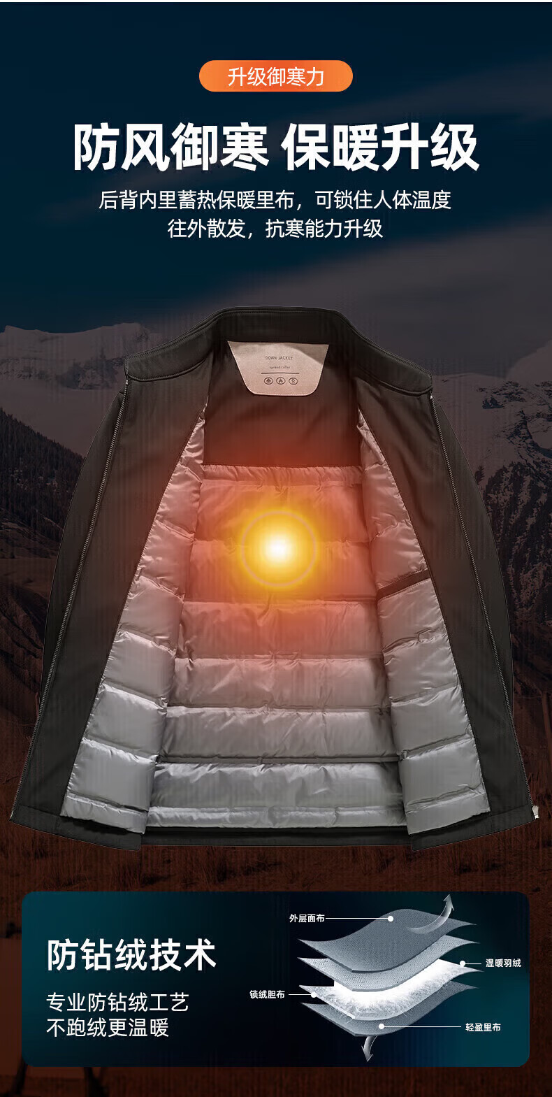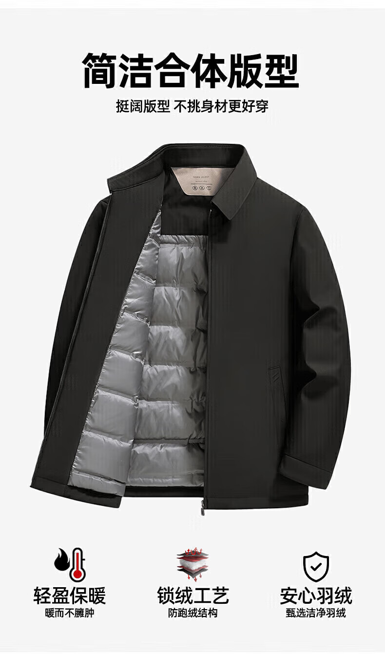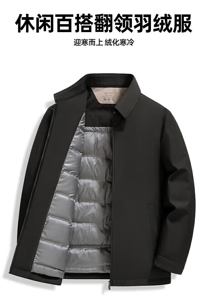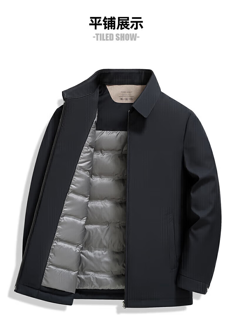 罗蒙夹克翻领羽绒服男士2025秋冬新款商务休闲百搭干部装保暖外套 藏青色 XL 180 【建议135-150斤】