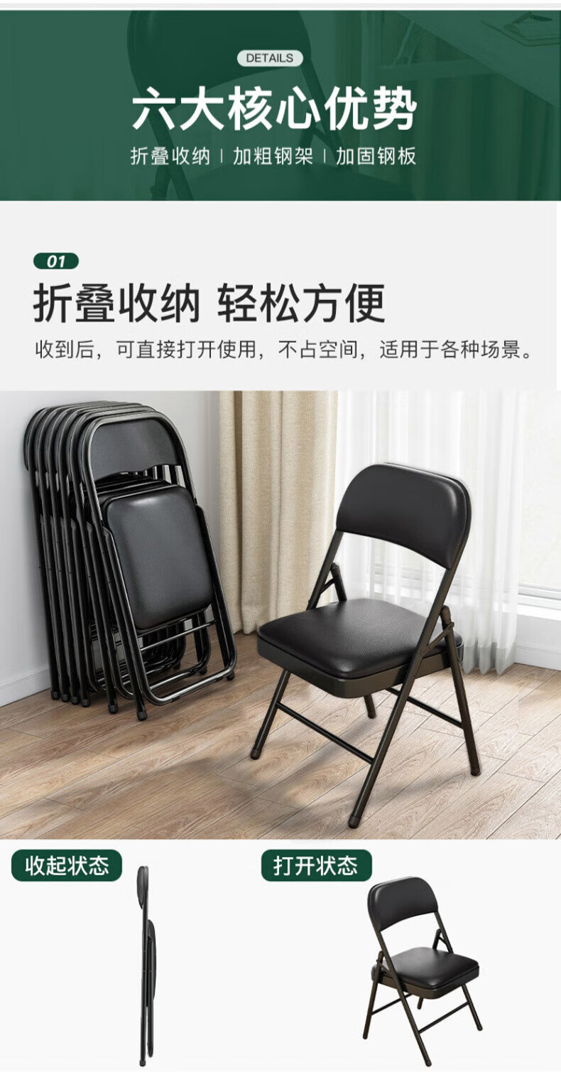 【优选好物】折叠椅金属家用简易靠背椅便携餐椅培训椅办公电脑椅 米驼色