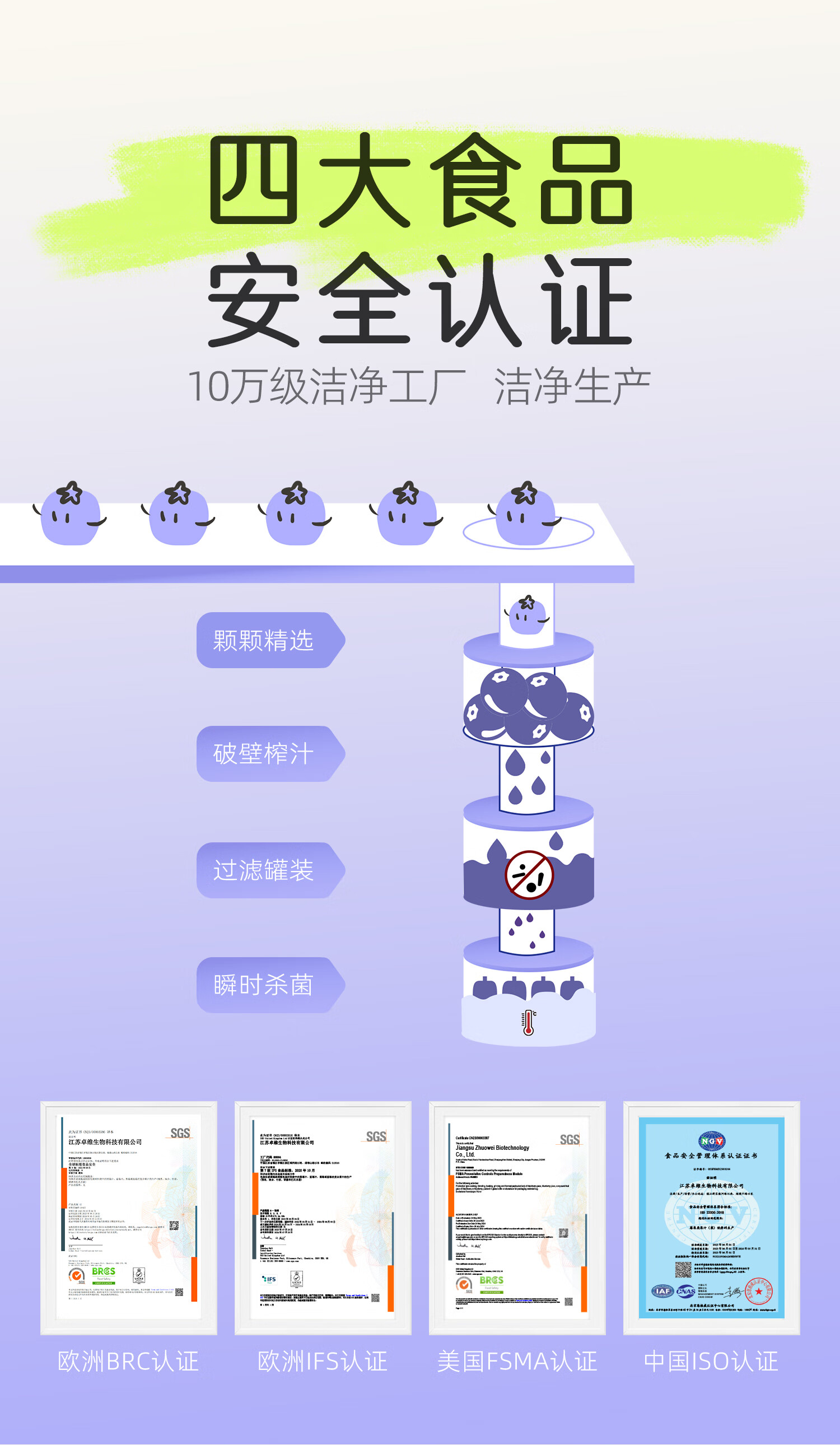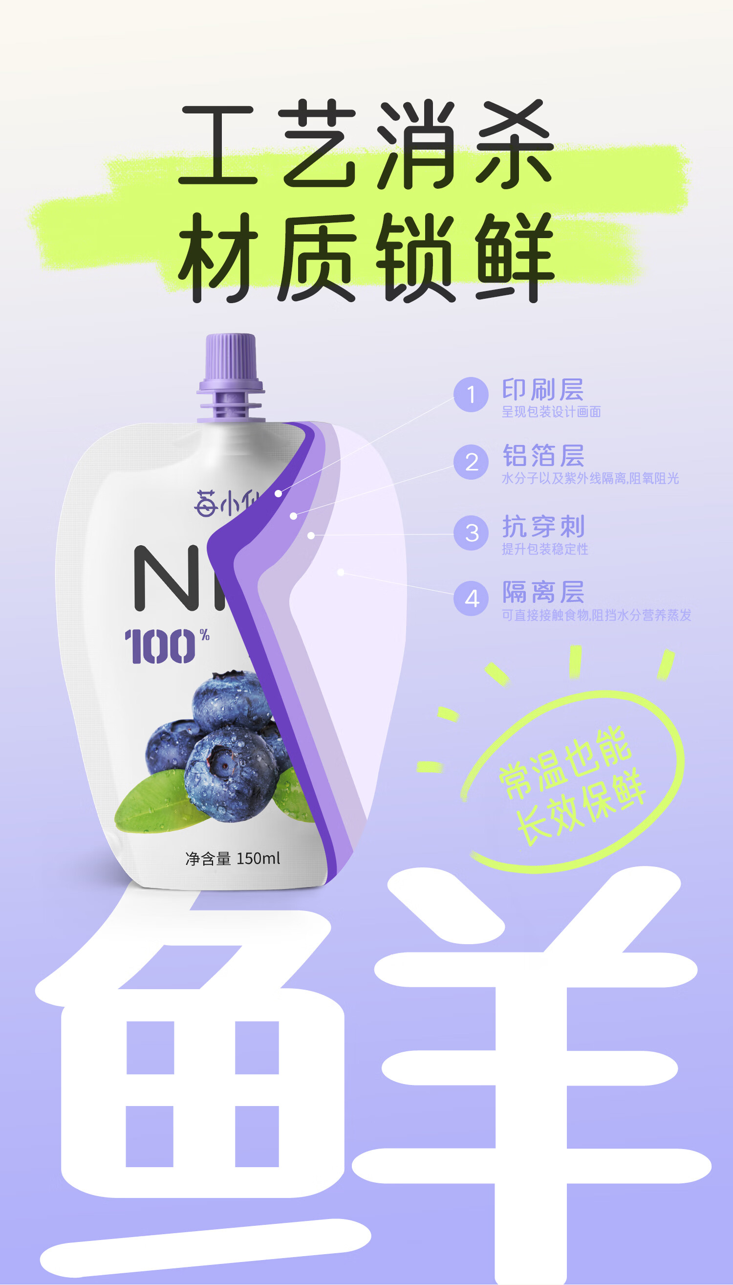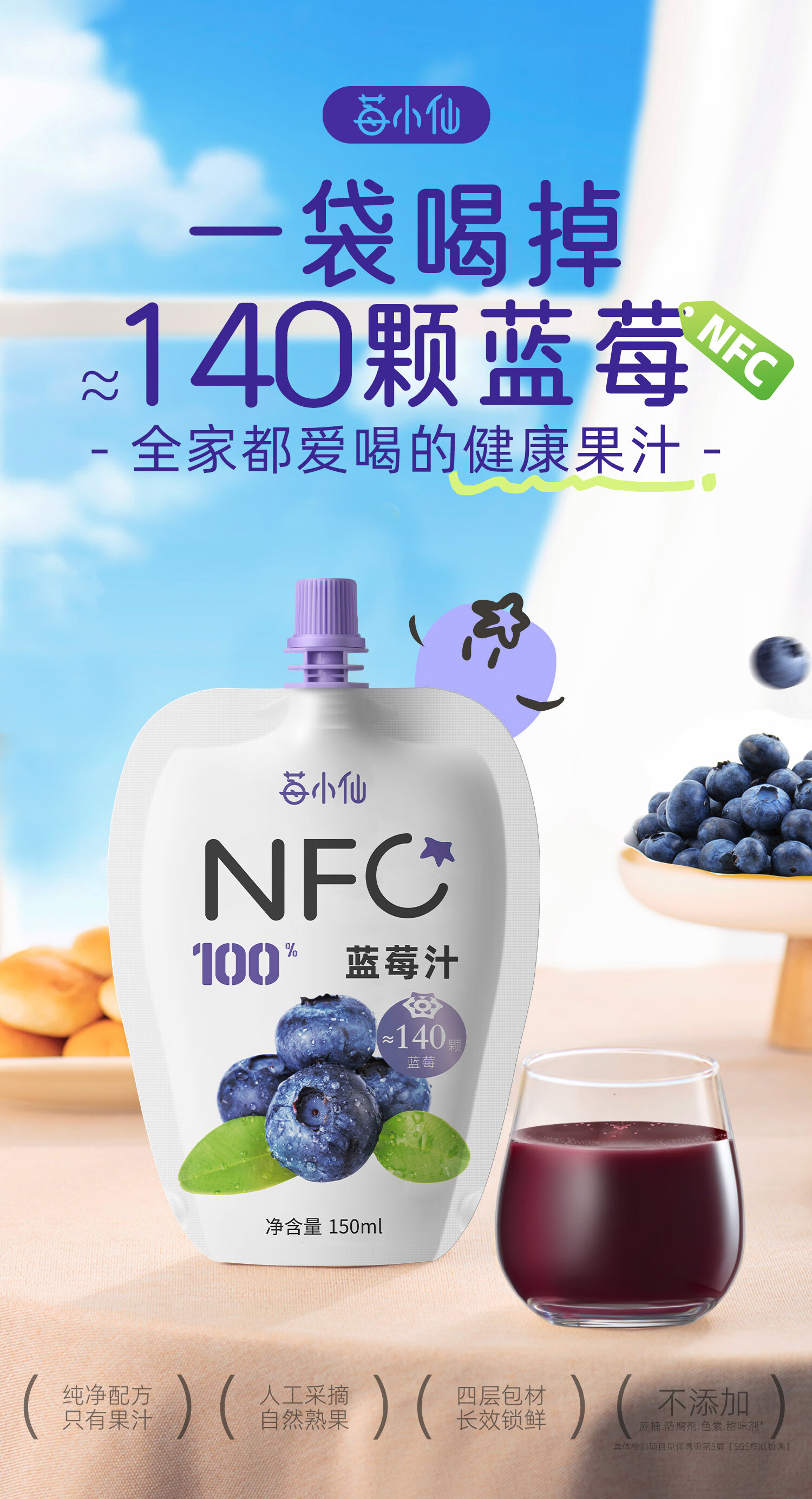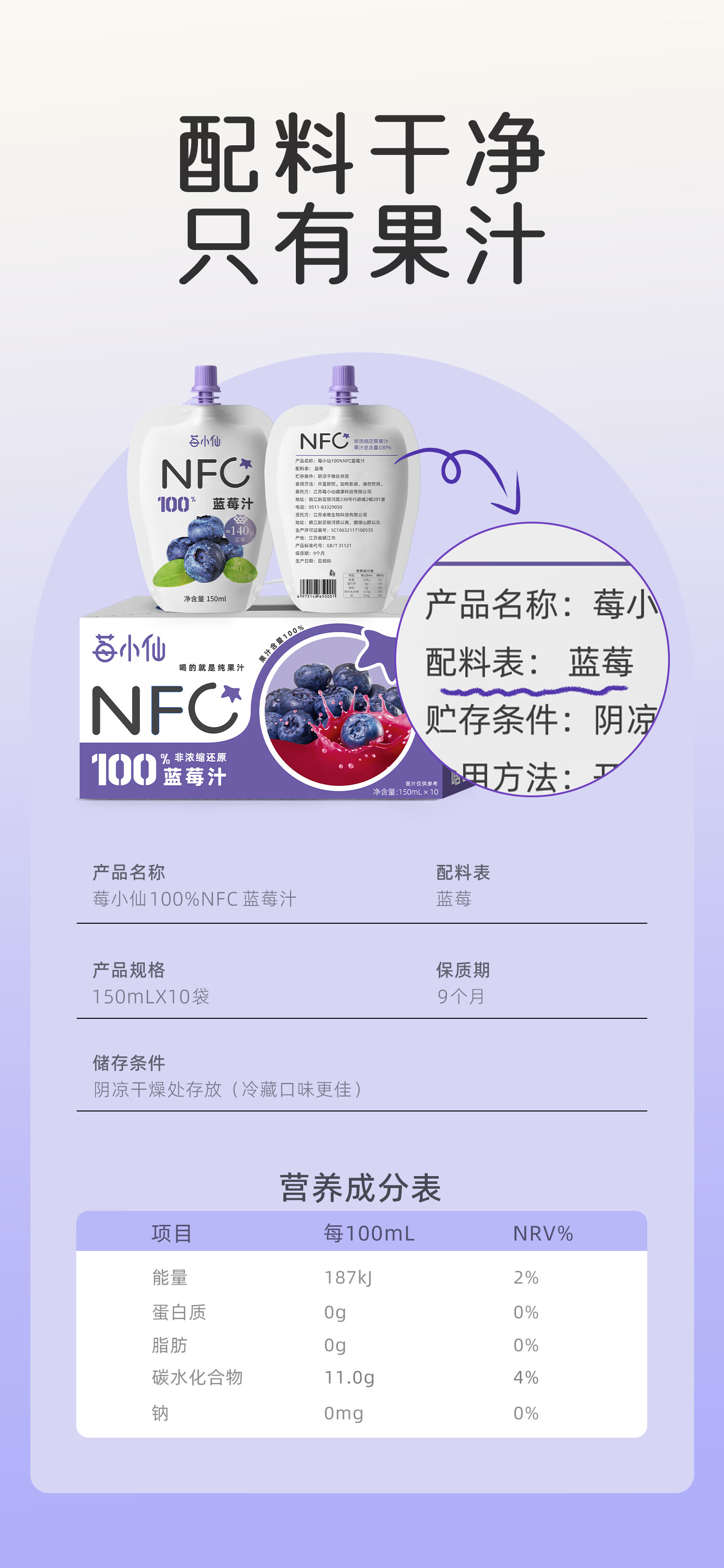 莓小仙NFC蓝莓汁100%纯果汁0脂0添加蔗糖花青素饮料无添加蓝莓果汁饮料 3箱装+5袋