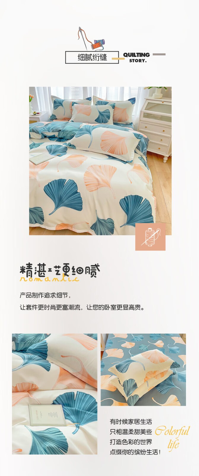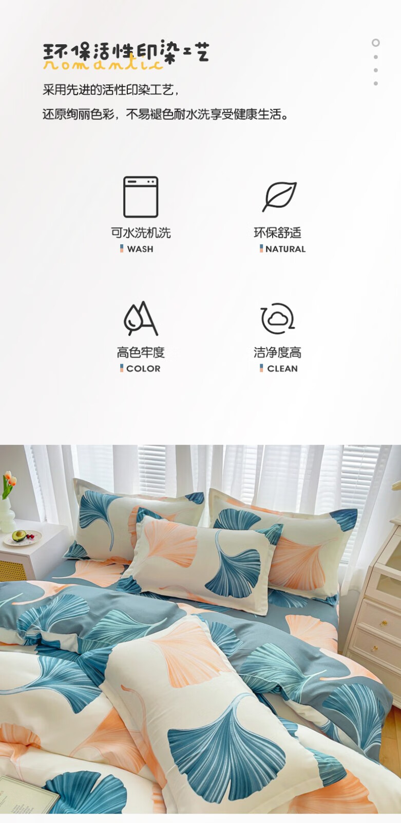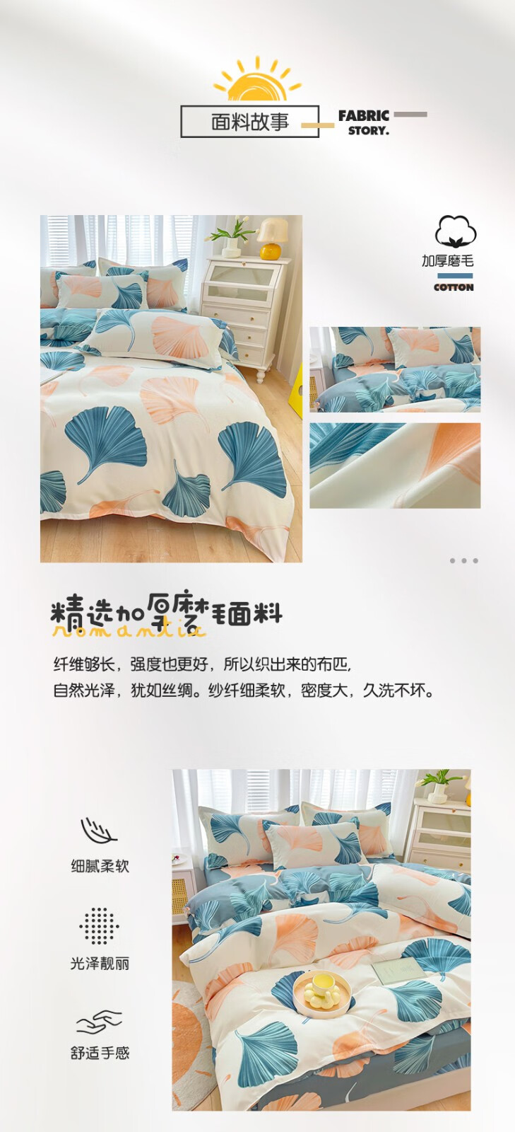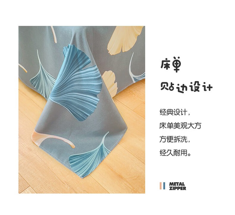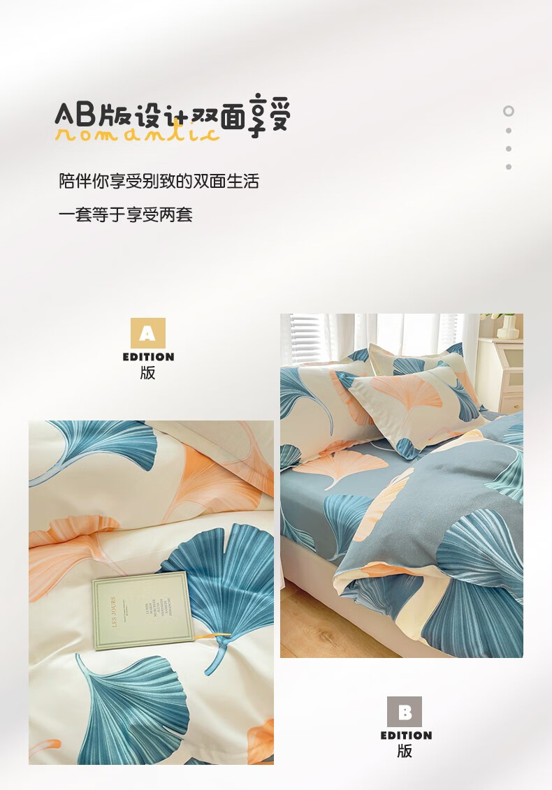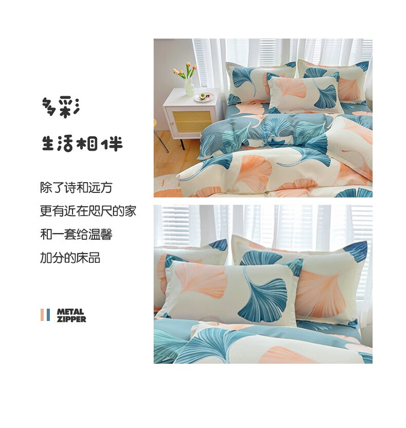 多兰诗(Duolanshi)磨毛四件套 春秋加厚保暖小清新宿舍卡通家用斜纹四件套 晚棠 1.8米 床笠款 被套180*220 四件套