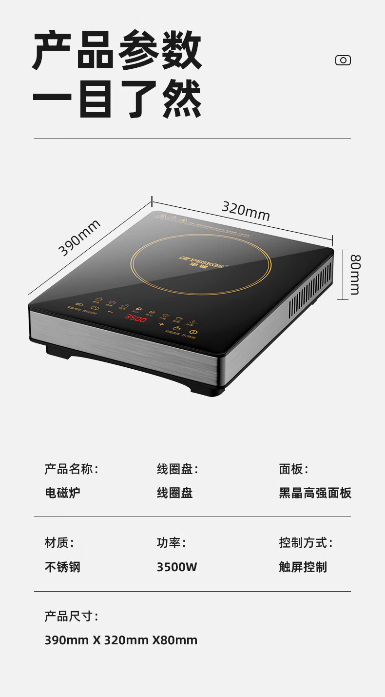 【严选】凹面电磁炉家用功率猛火炒菜无辐射易清洗通用多功 3500W