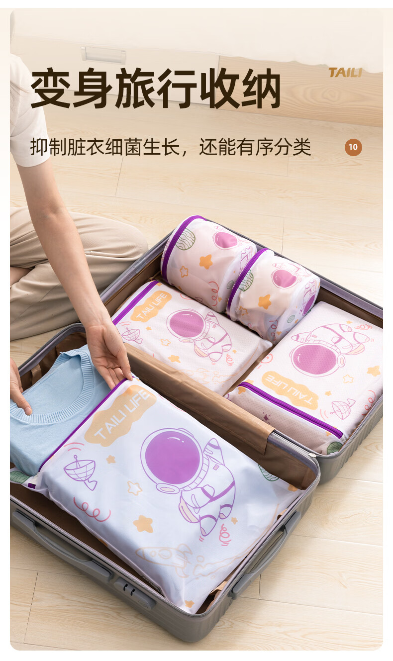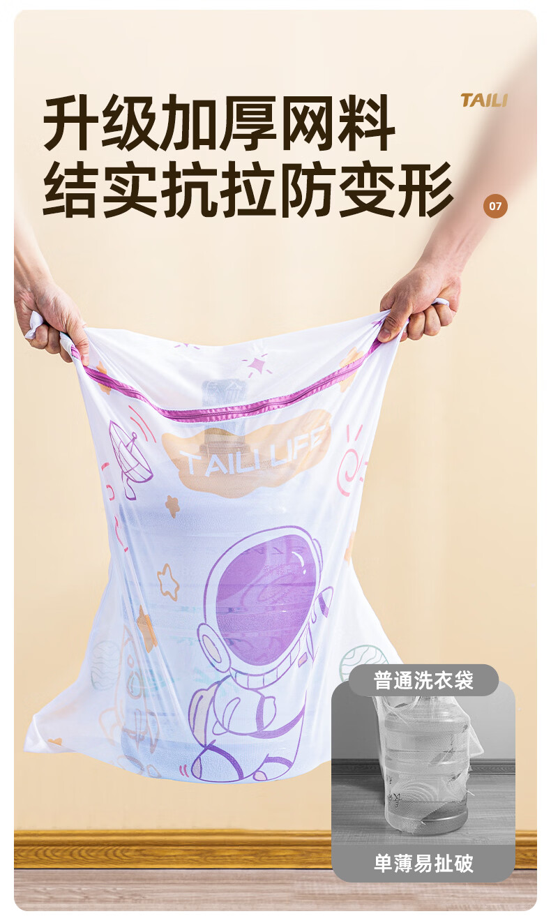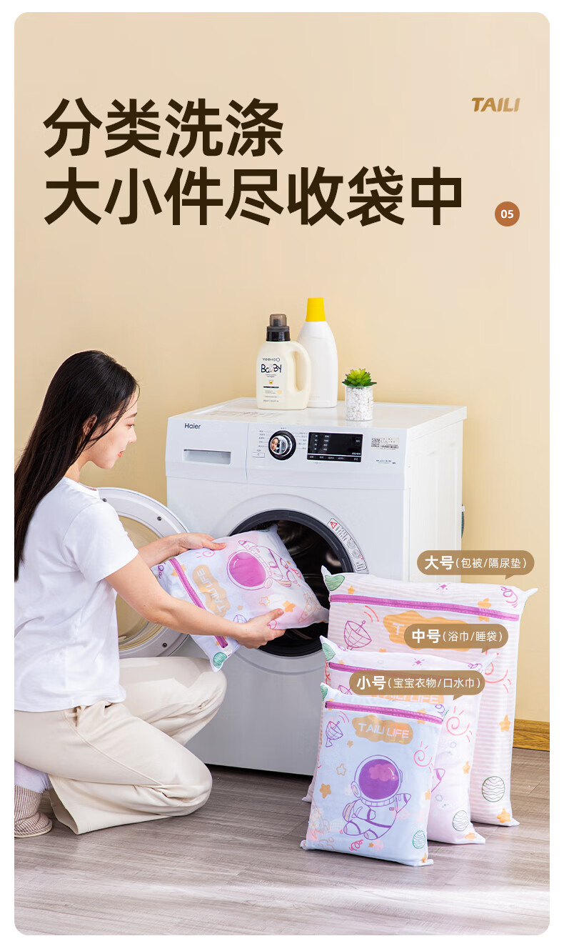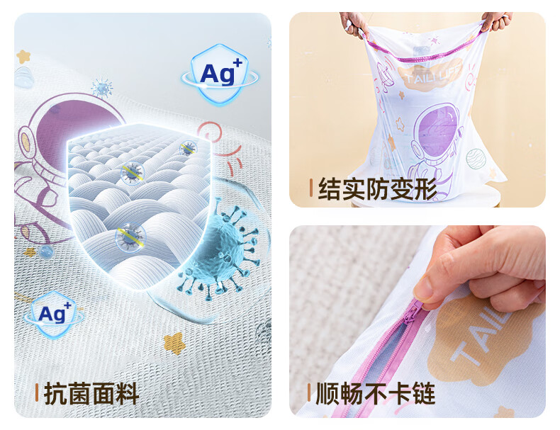 太力抗菌护洗袋婴儿洗衣袋专用洗衣机防缠绕细网文胸内衣护洗袋 儿童3件套【大号+中号+小号】