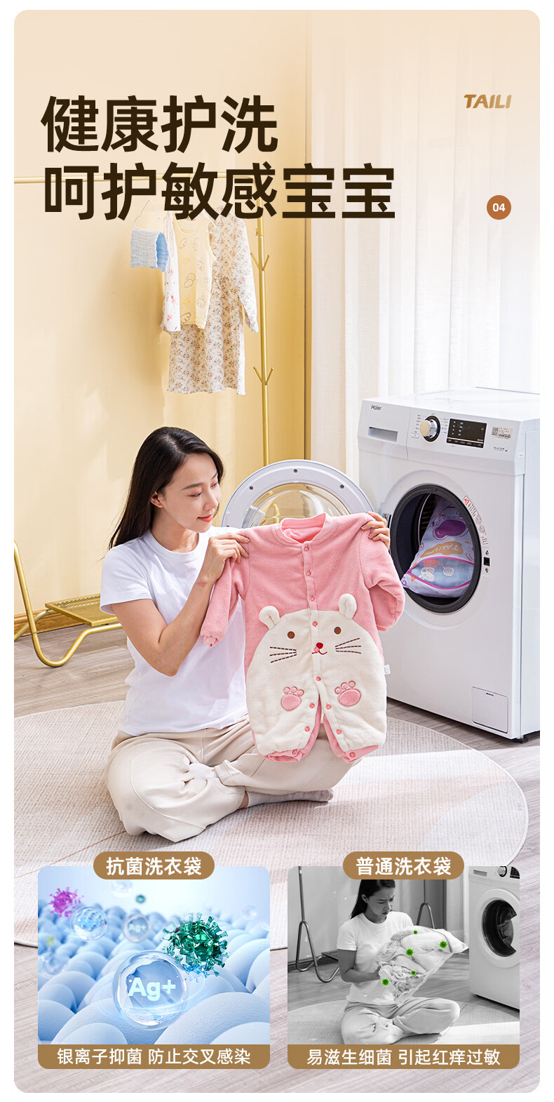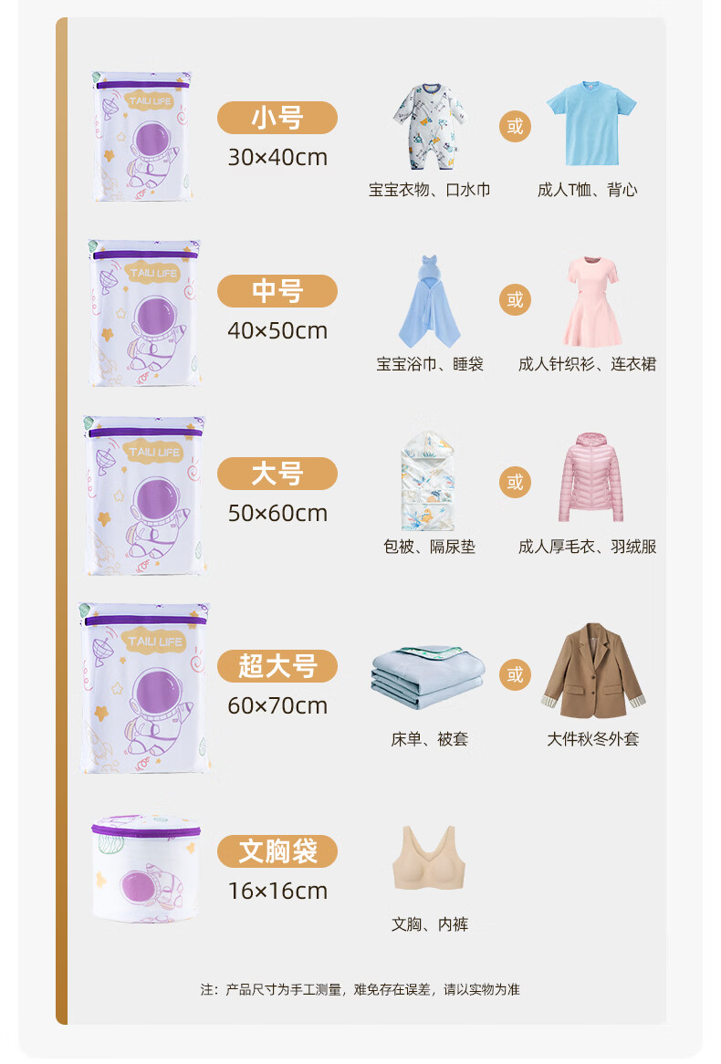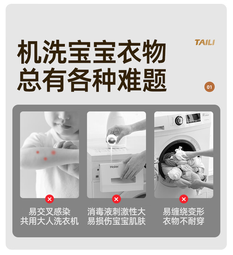 太力抗菌护洗袋婴儿洗衣袋专用洗衣机防缠绕细网文胸内衣护洗袋 儿童3件套【大号+中号+小号】