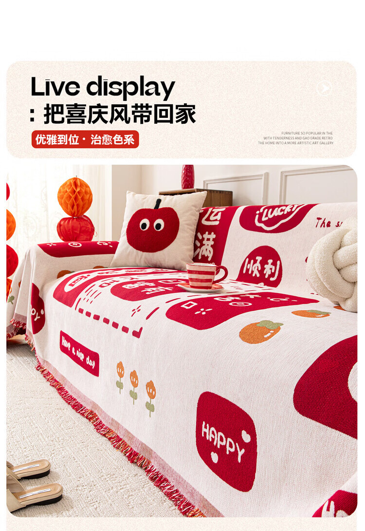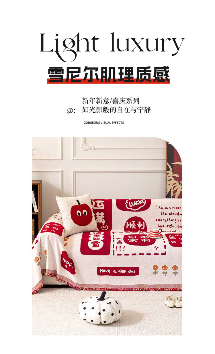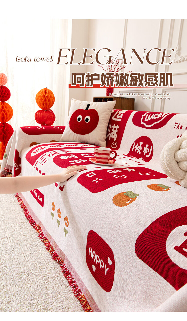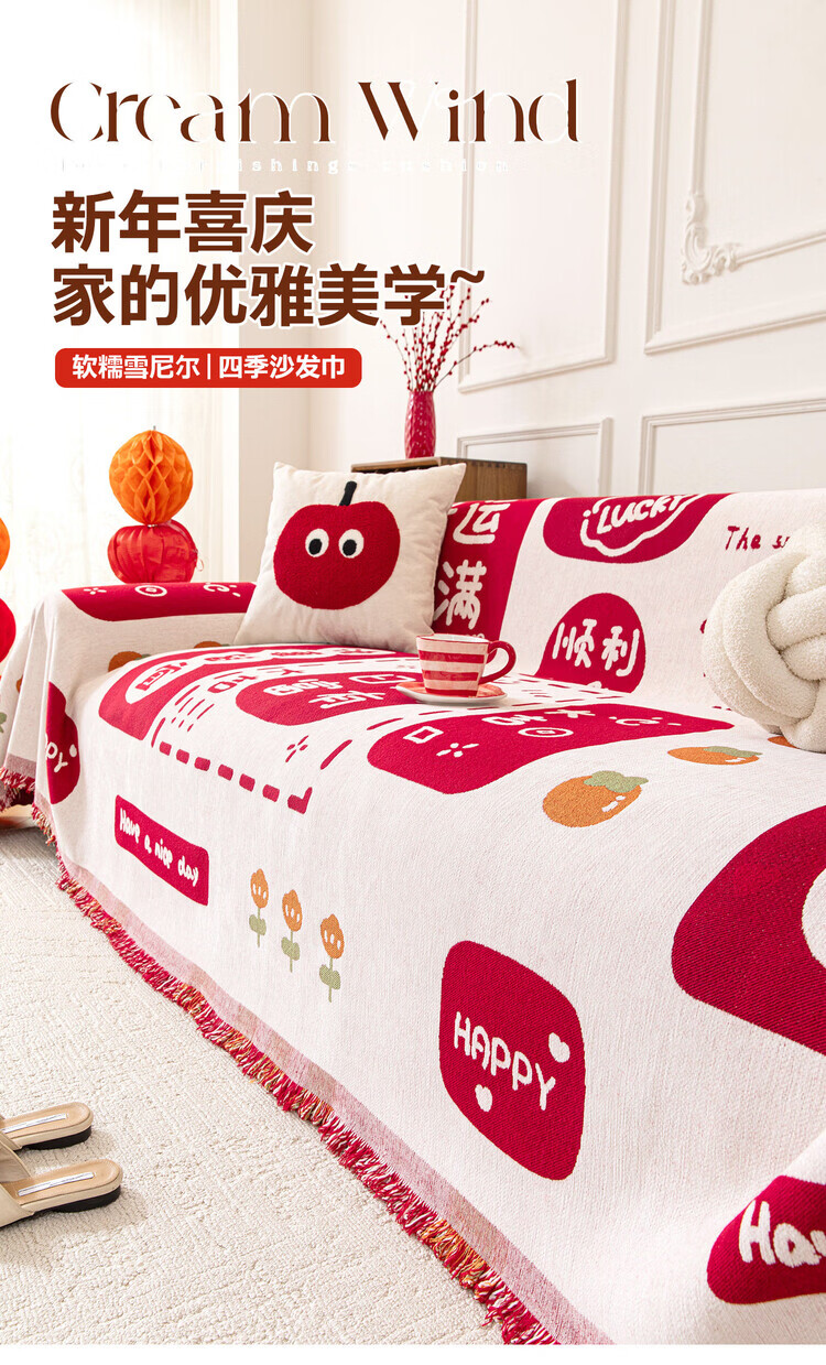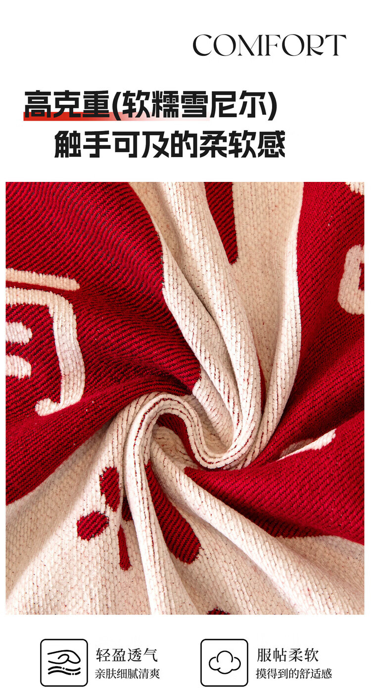 ALPLUME喜庆沙发巾2025新款高克重雪尼尔沙发盖布四季通用防滑氛围感坐垫 好运满满 单人位 180*130cm【适合小单人位】