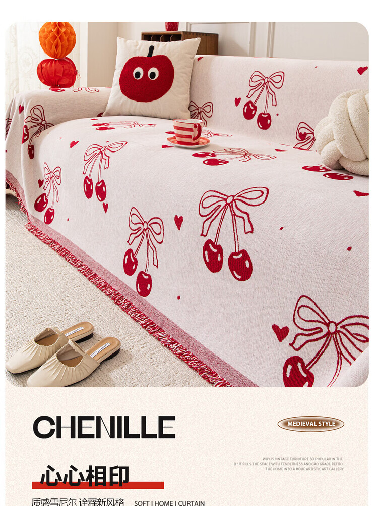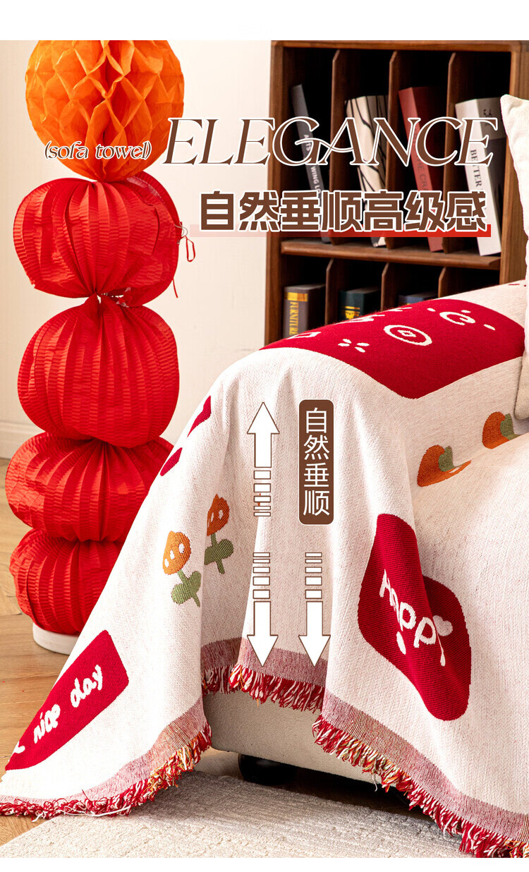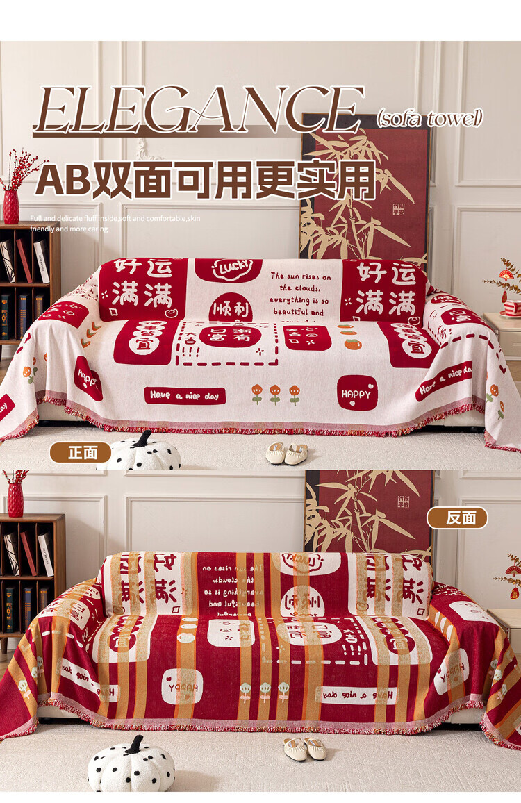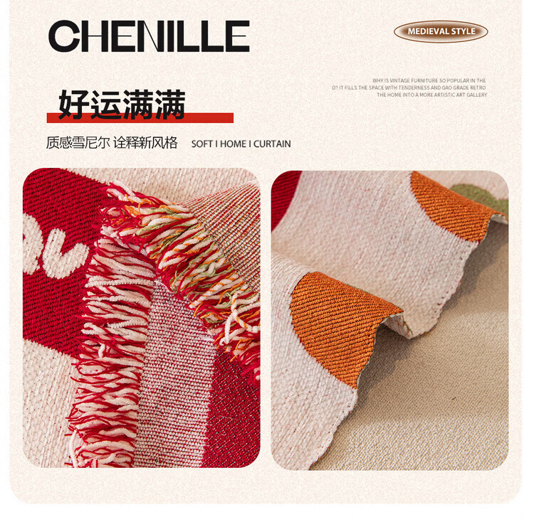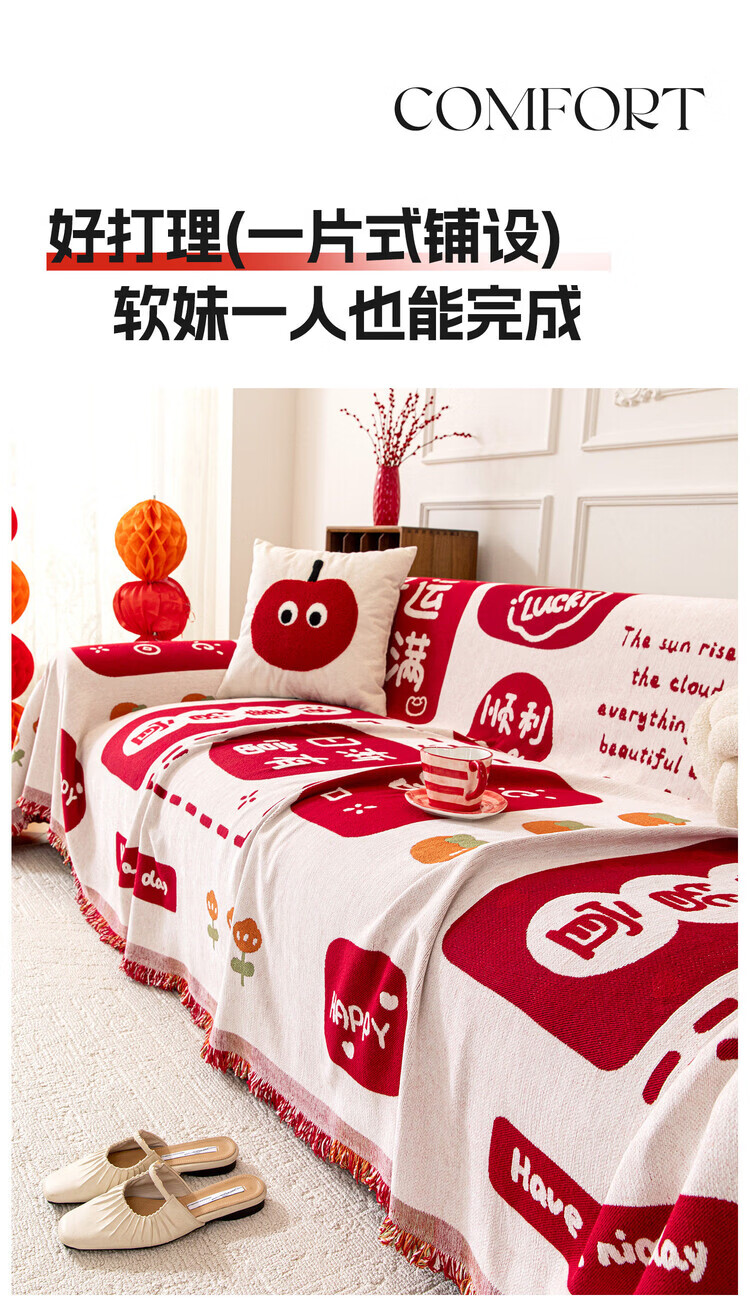 ALPLUME喜庆沙发巾2025新款高克重雪尼尔沙发盖布四季通用防滑氛围感坐垫 好运满满 单人位 180*130cm【适合小单人位】