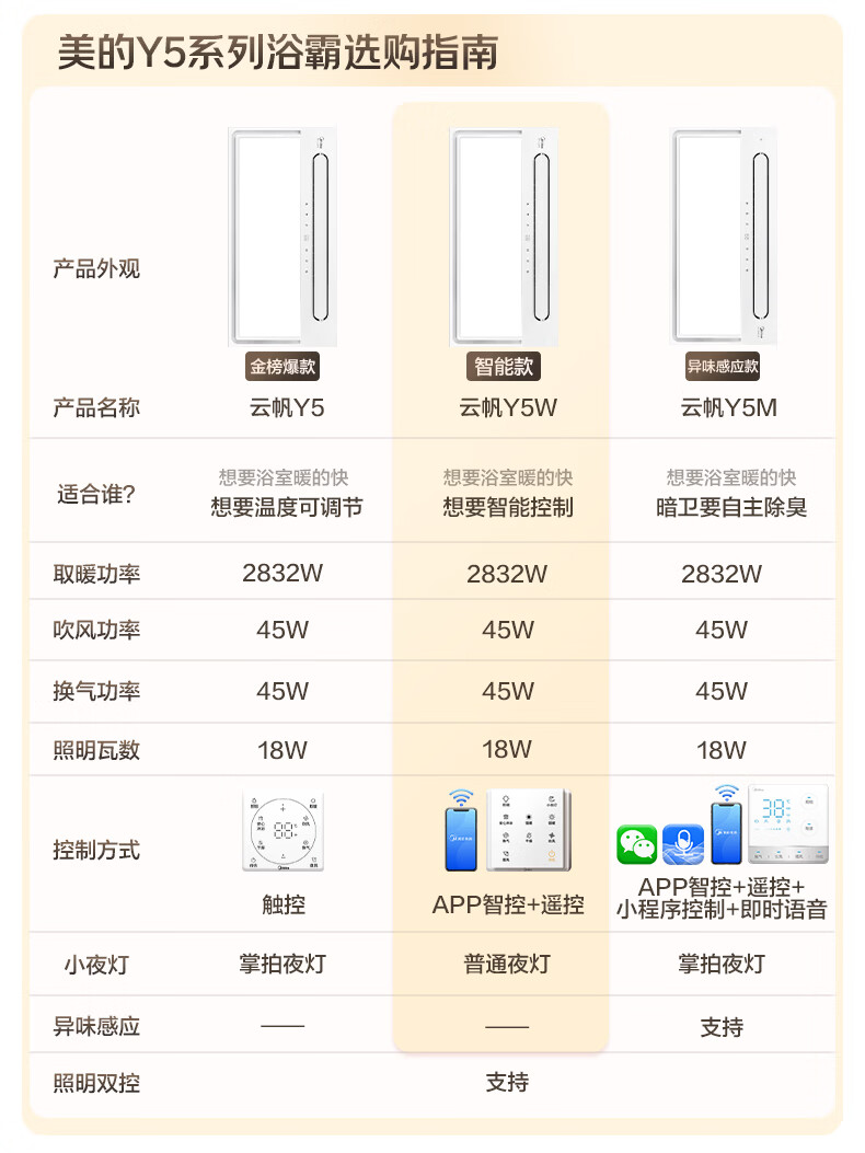 美的(Midea)智能浴霸云帆系列暖风照明排气一体无线遥控速暖Y5W