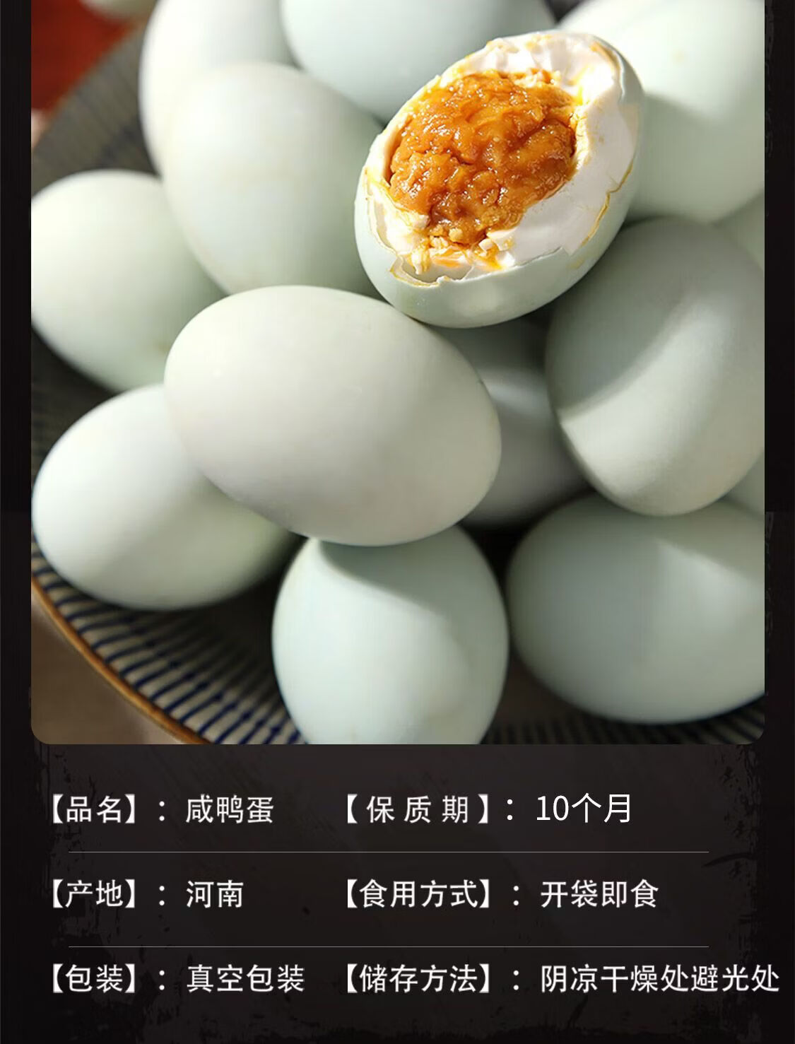 10枚咸鸭蛋鸭蛋红心流油整箱咸蛋批发即食真空包装咸流油 【共520克】10枚