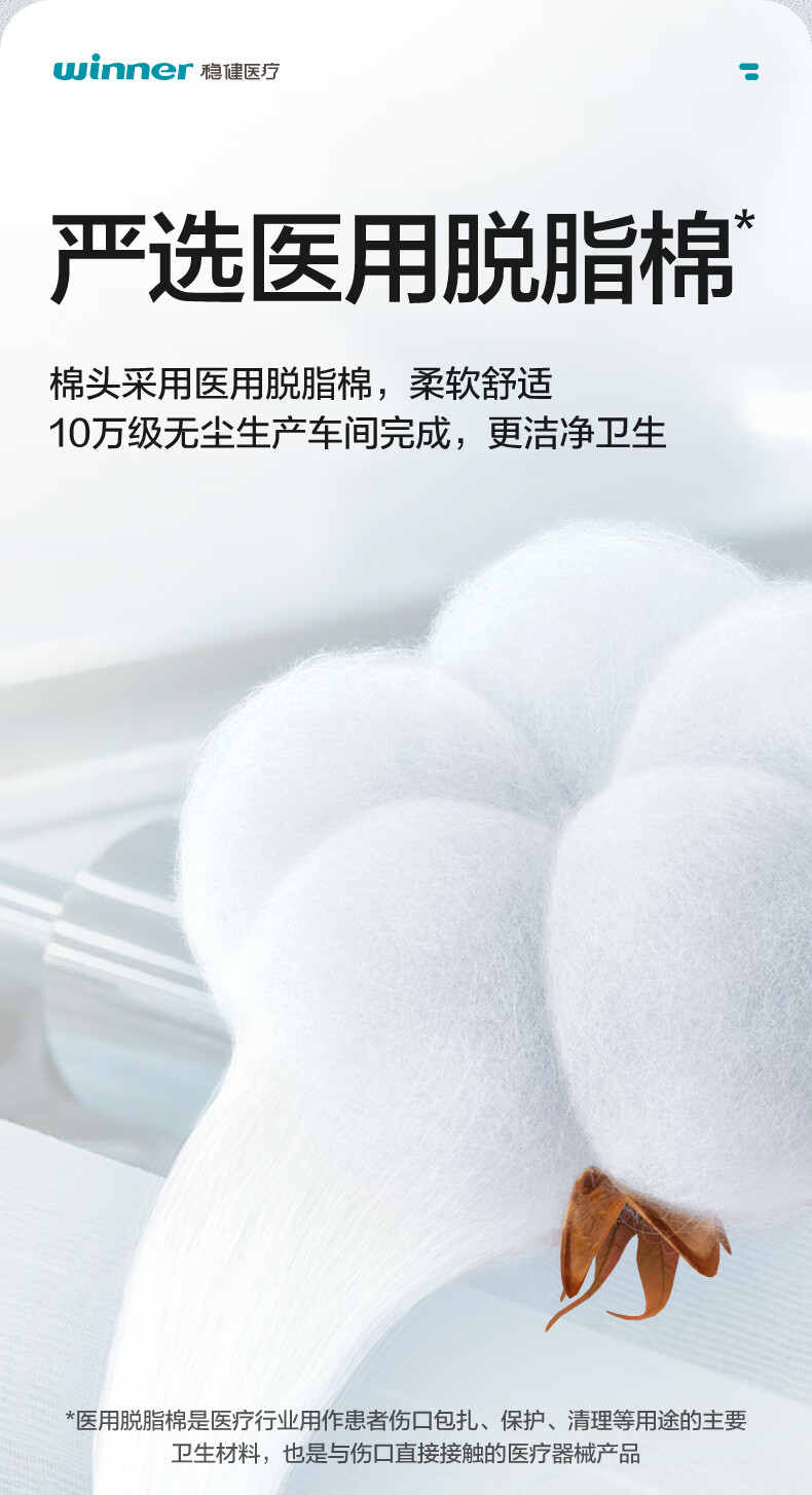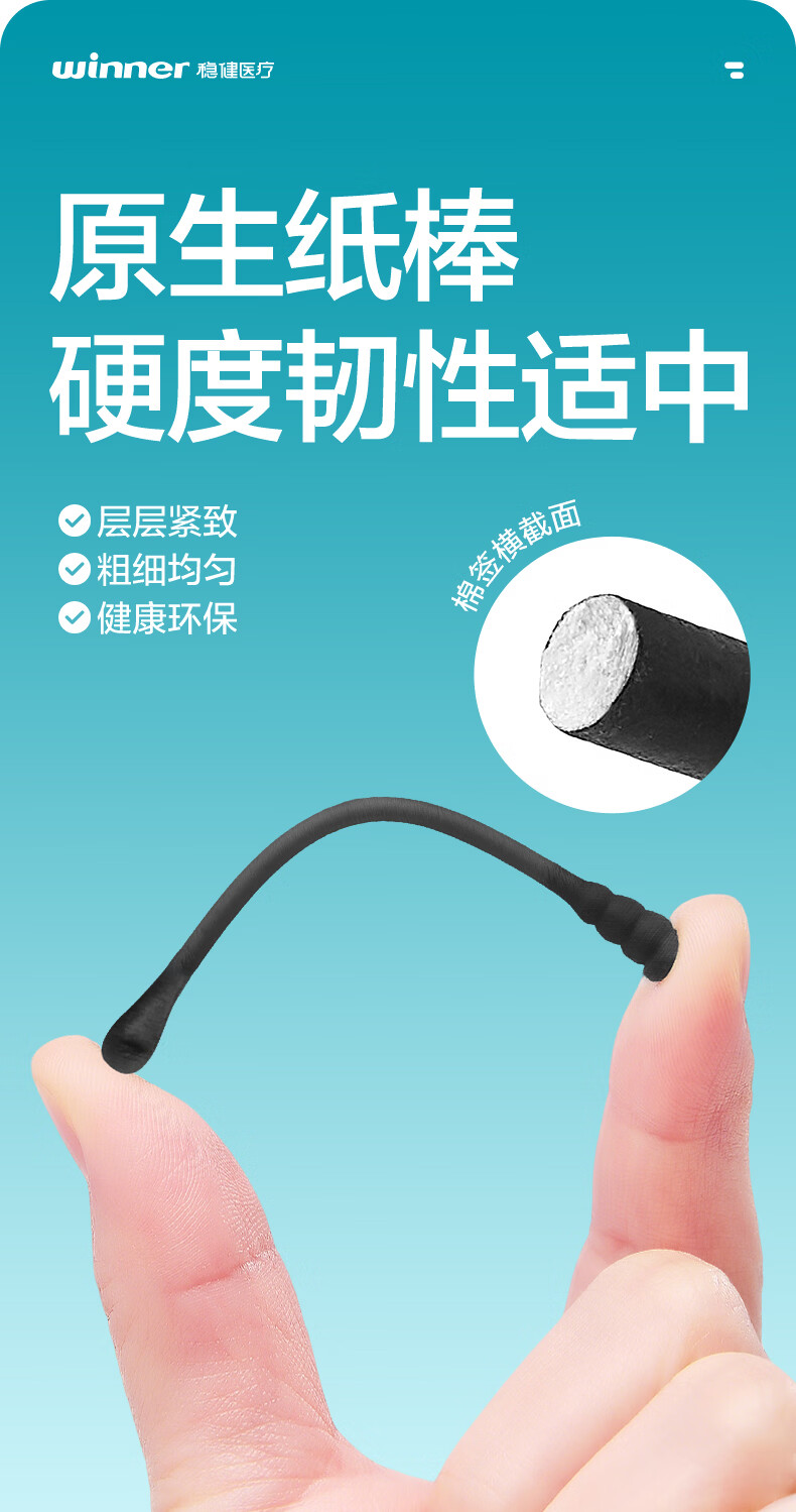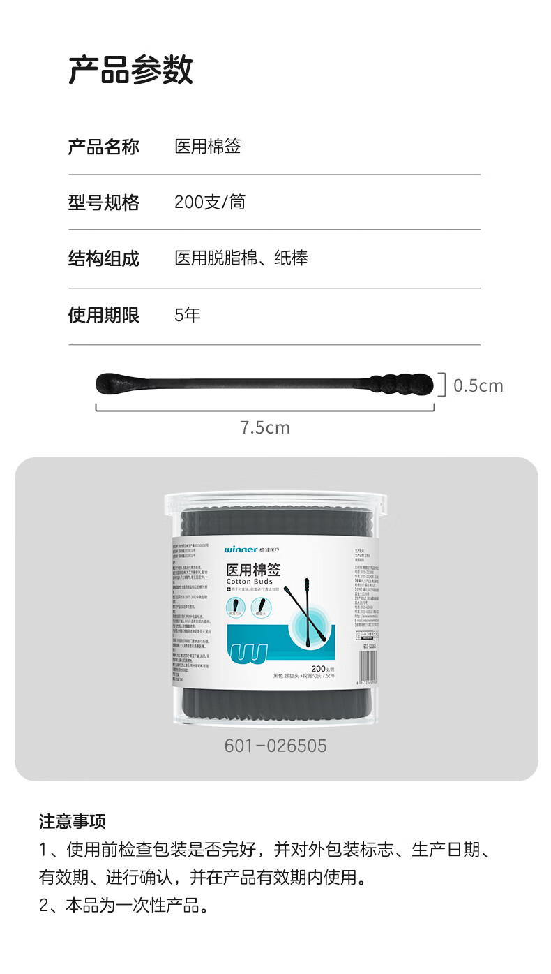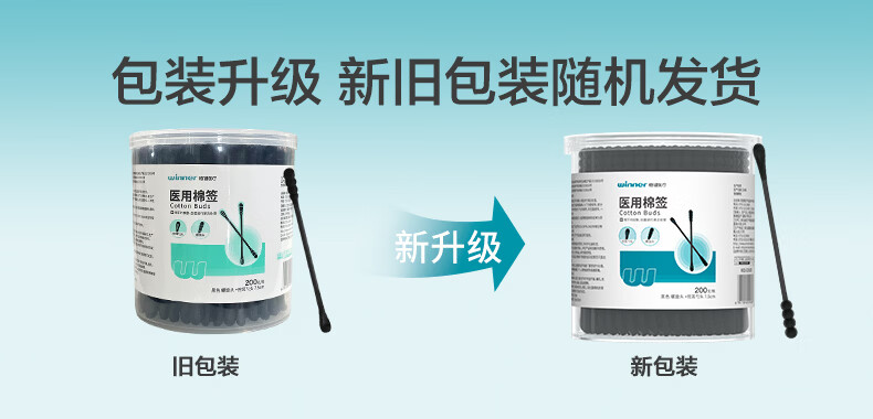 稳健医用棉签黑色双头耳勺棉棒200支掏耳朵化妆棉签螺旋头清洁棉棒