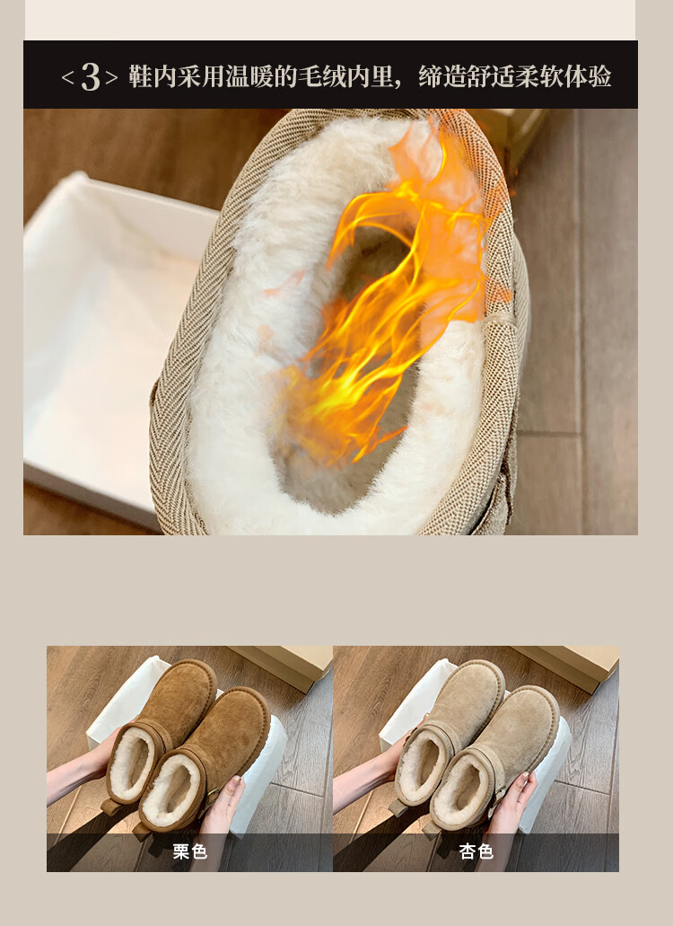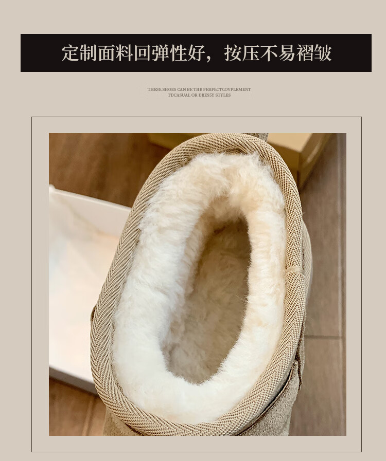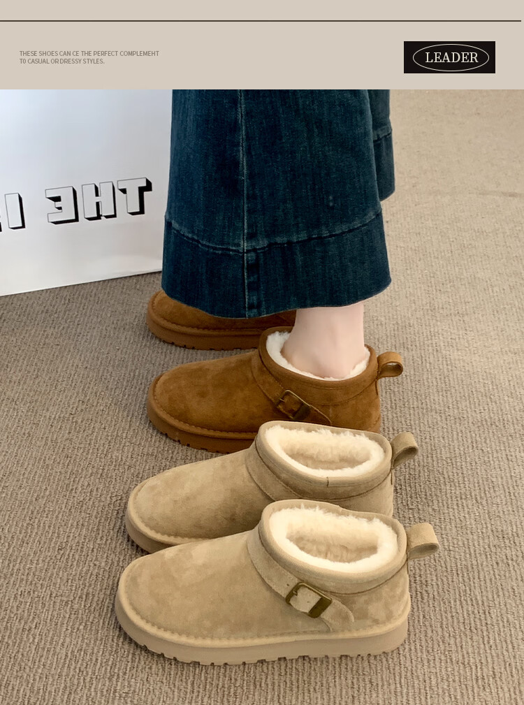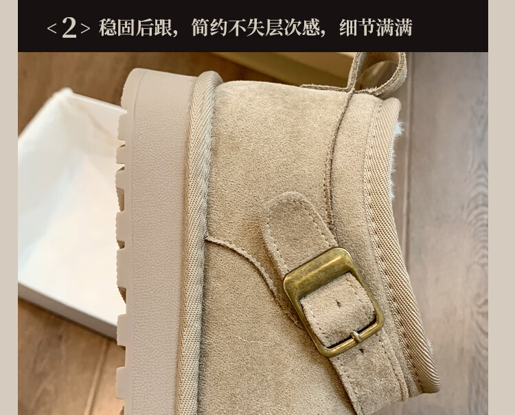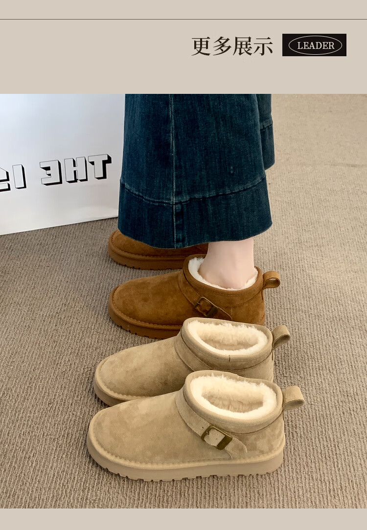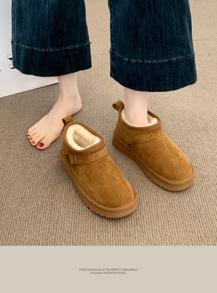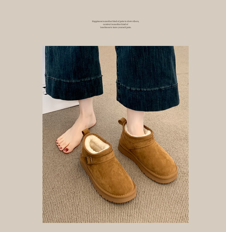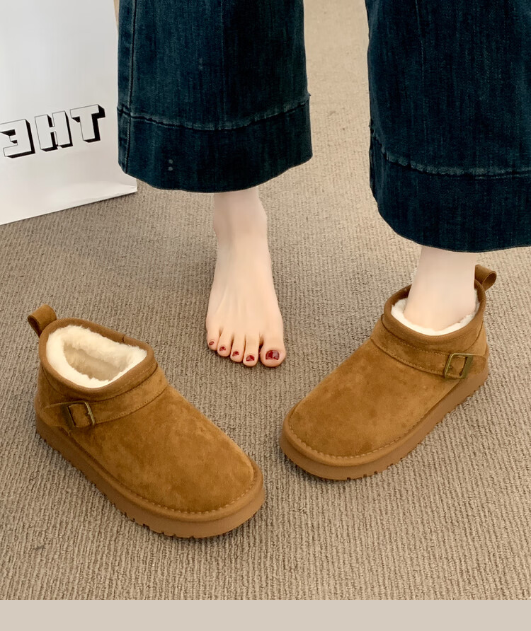 稻草人(MEXICAN)厚底勃肯鞋皮毛一体雪地靴女冬2026新款加绒短筒棉靴东北大棉鞋子 驼色【专柜版】店主推荐95%买家选择 35