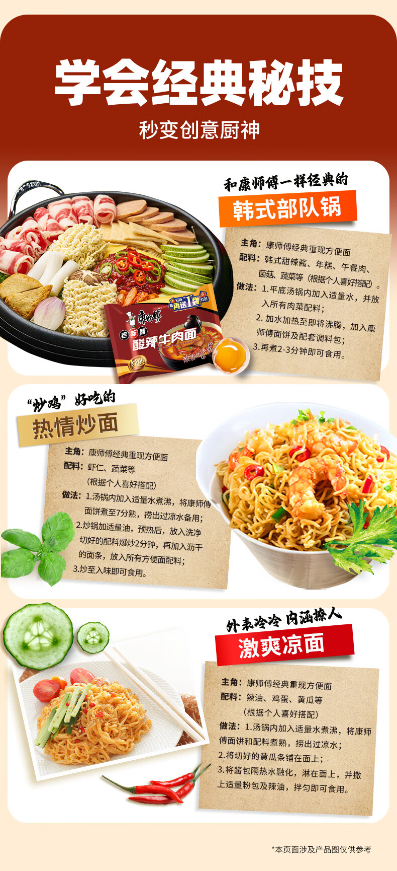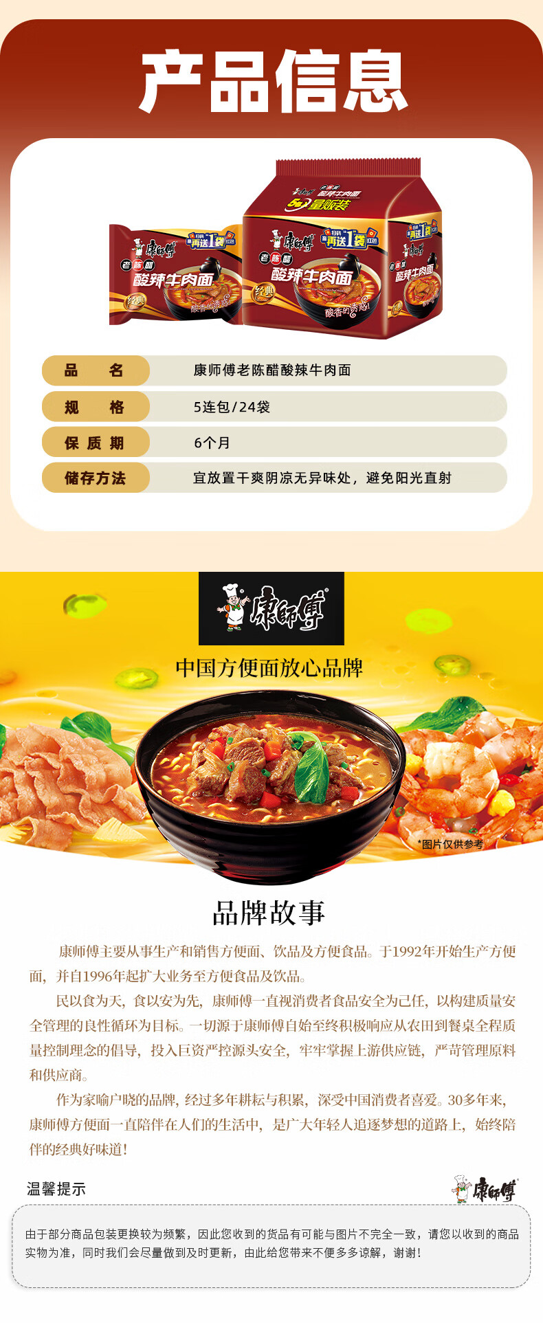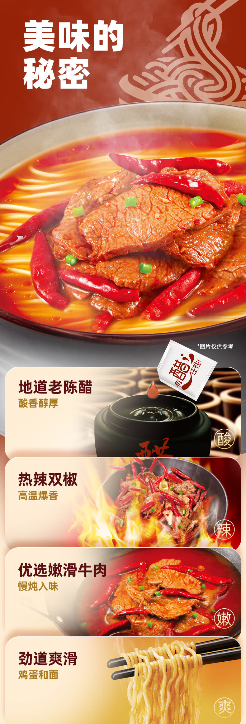 康师傅 方便面 经典老陈醋酸辣牛肉面五连包110g*5 泡面袋装 方便食品