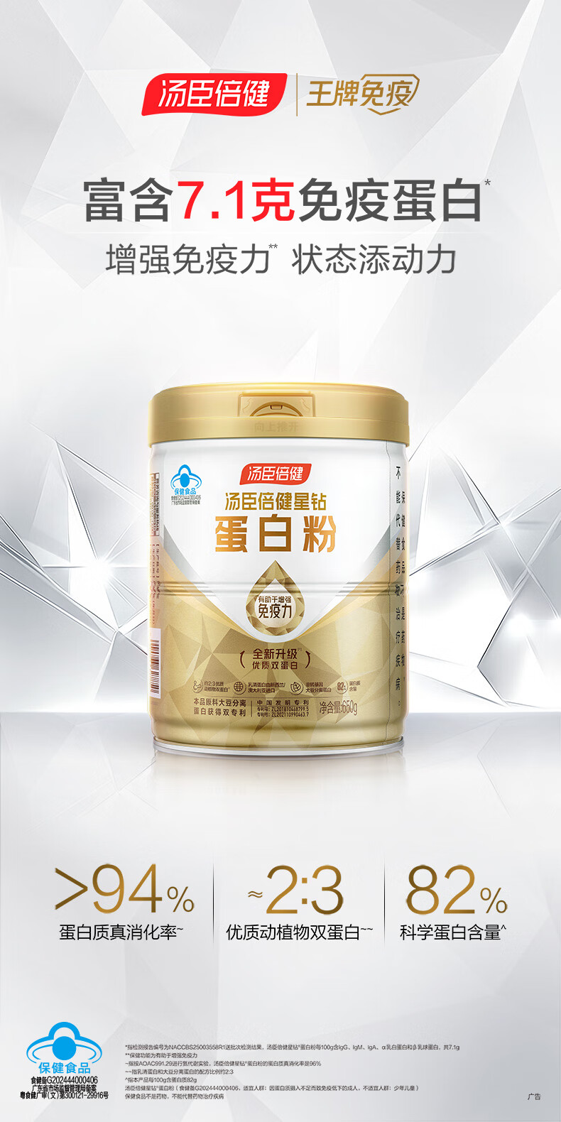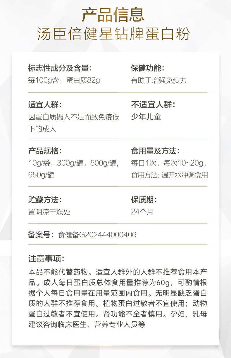 汤臣倍健星钻蛋白粉650g 免疫球蛋白乳清蛋白粉 成人中老年增强免疫力