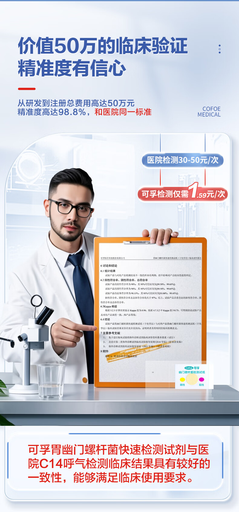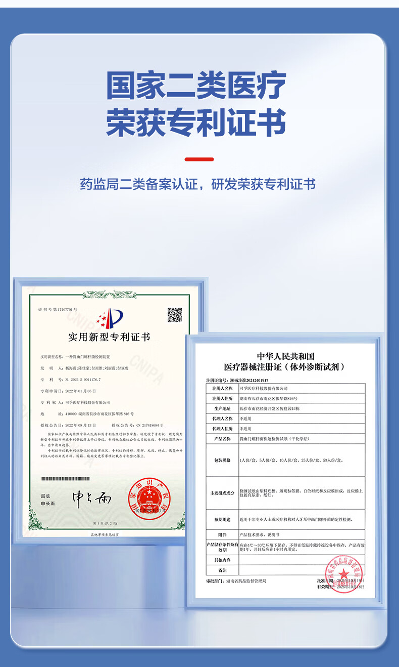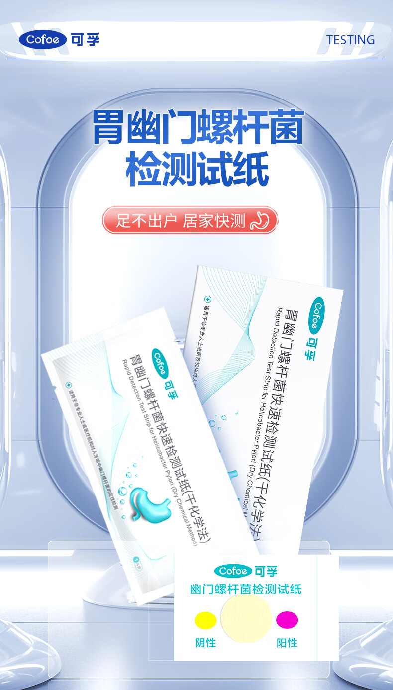 可孚胃幽门螺旋杆菌检测试纸10片医用非碳C14吹气检测盒幽门螺杆菌