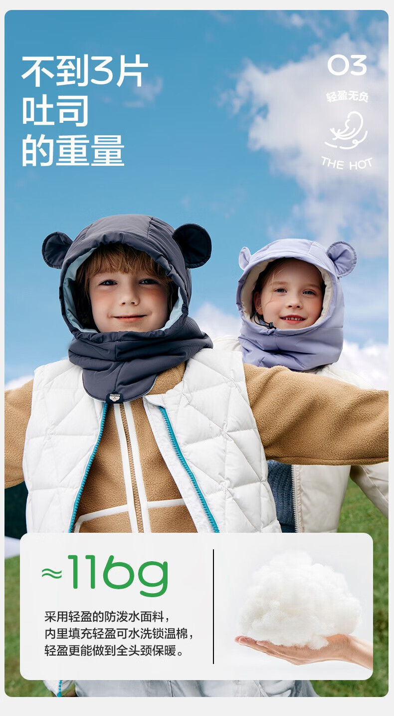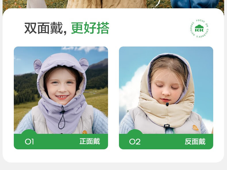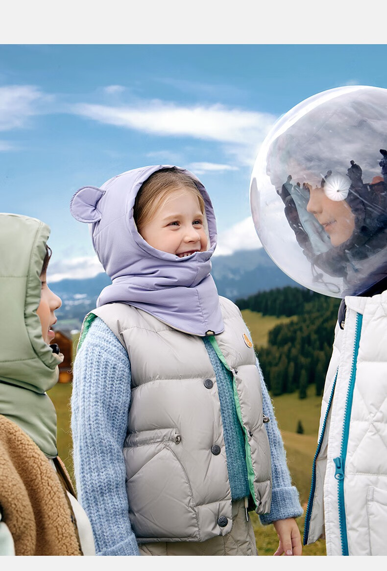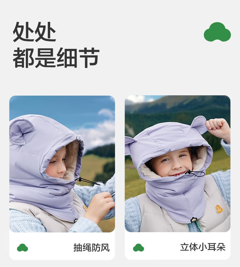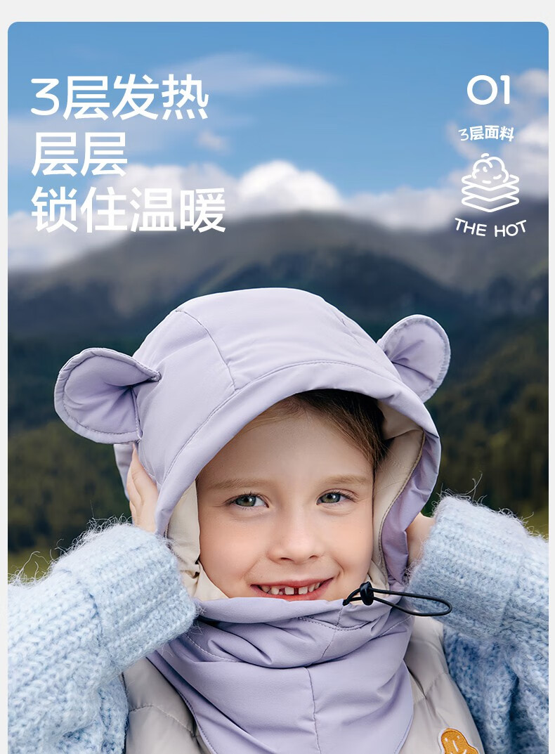Kocotreekk树儿童帽子保暖加厚女童护耳帽男孩围脖一体帽卡通冬季远山紫 L