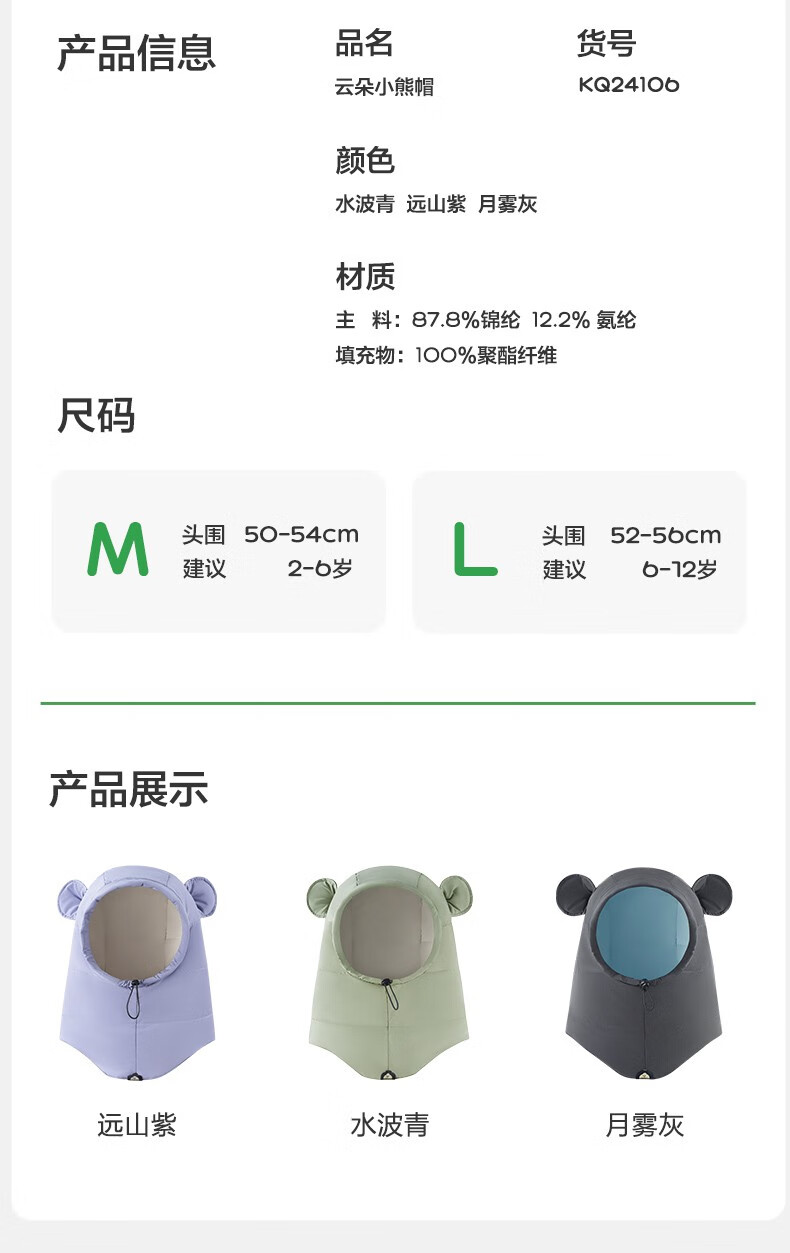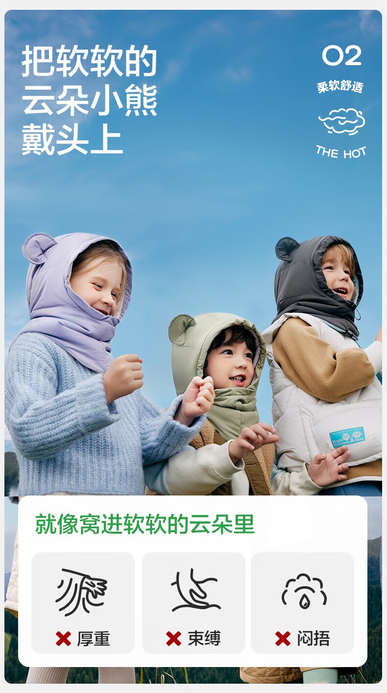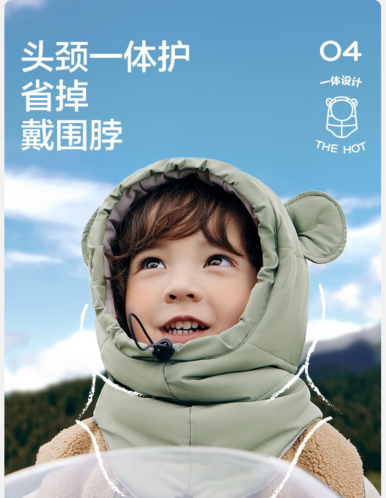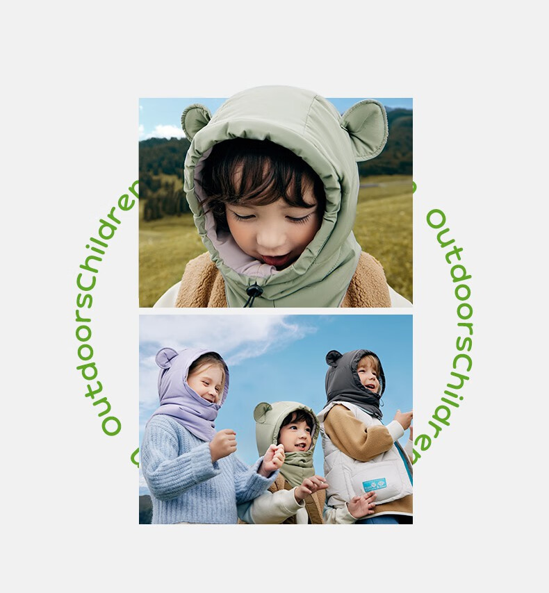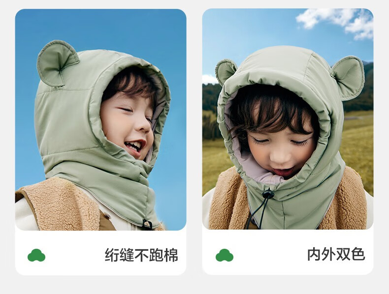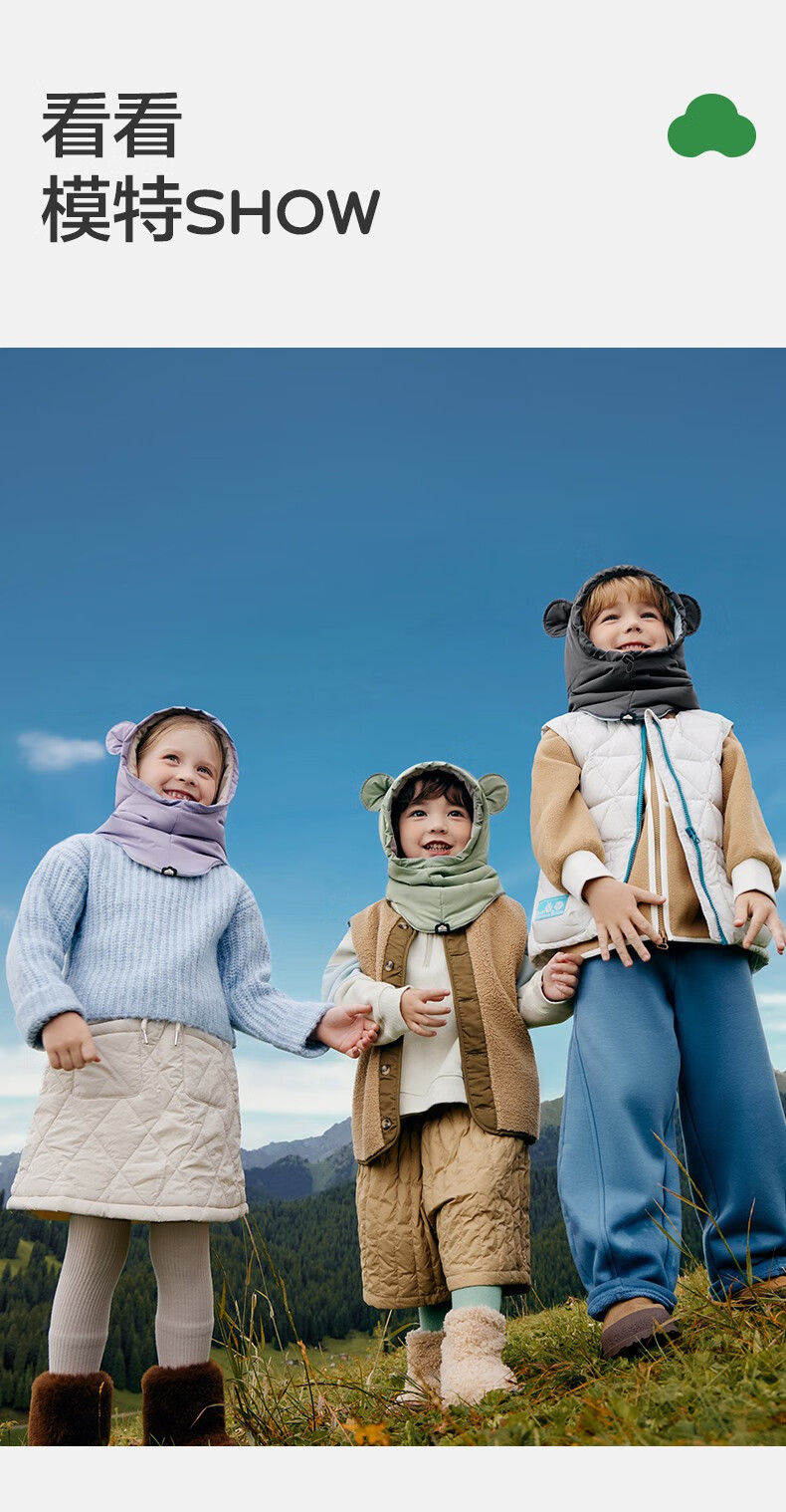 Kocotreekk树儿童帽子保暖加厚女童护耳帽男孩围脖一体帽卡通冬季远山紫 L