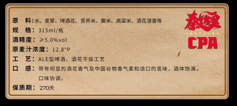 雪花(SNOW)啤酒 秦始皇CPA中国特色淡色艾尔精酿12.8度 315ml*12瓶 新年送礼