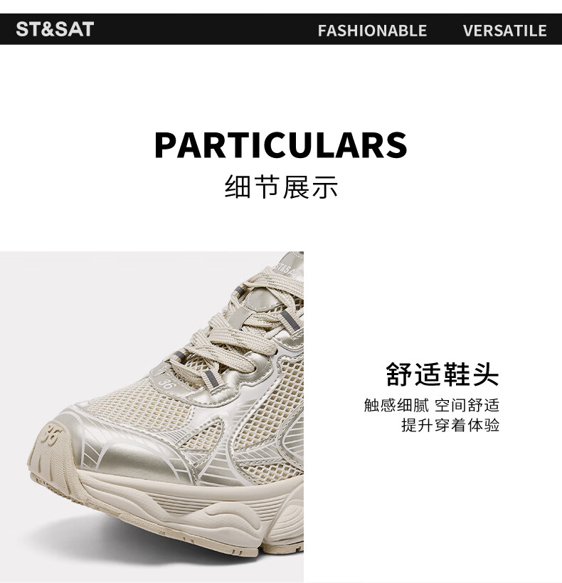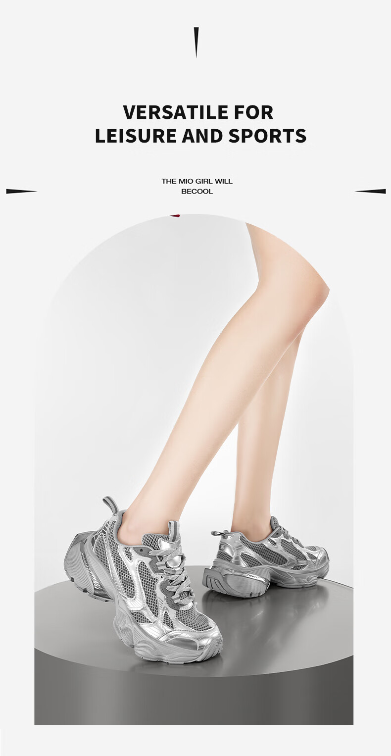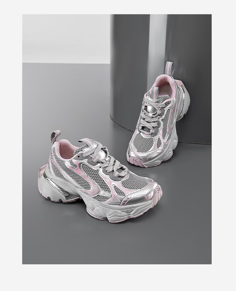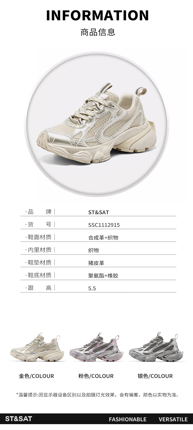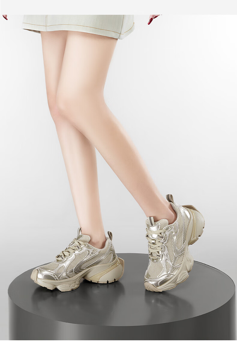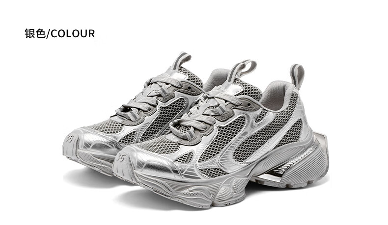 星期六厚底增高老爹鞋女2025秋季新款时尚潮流百搭舒适透气旅行鞋 银色 35