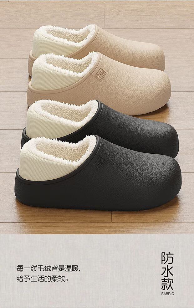 FZT包根雪地靴棉拖鞋女2025冬季新款厚底防滑带毛绒休闲鞋棉拖鞋男 浅卡其 36-37 标准码【内长225mm】