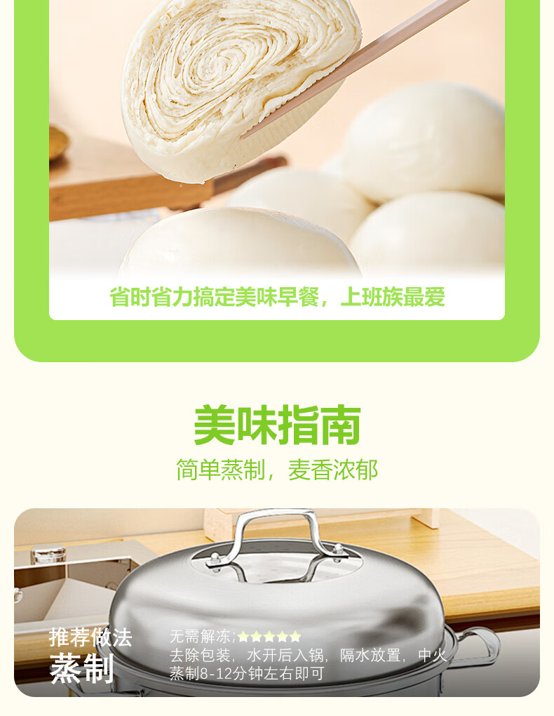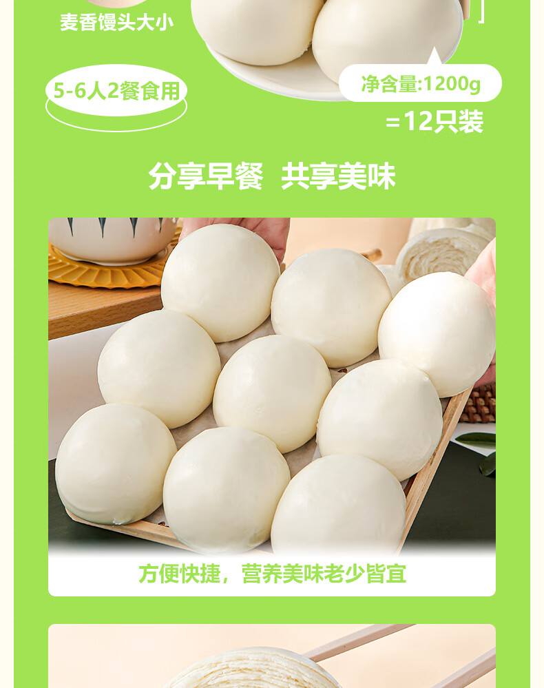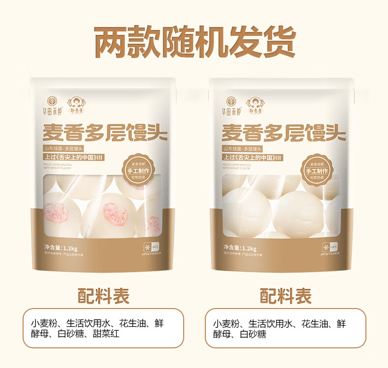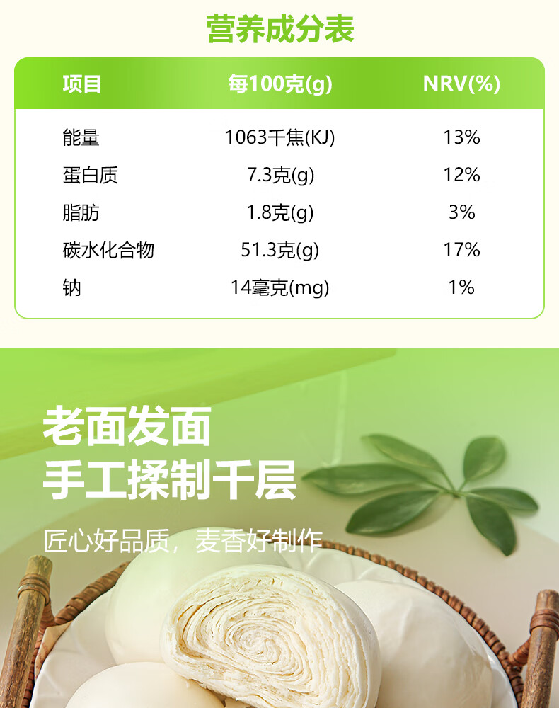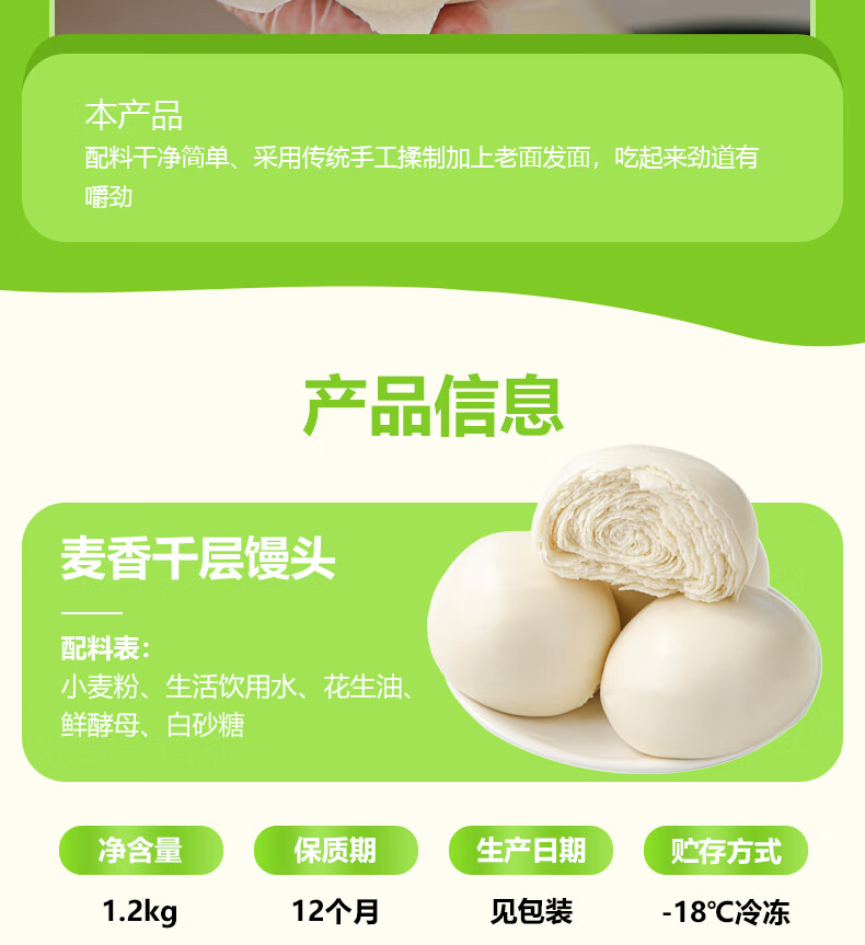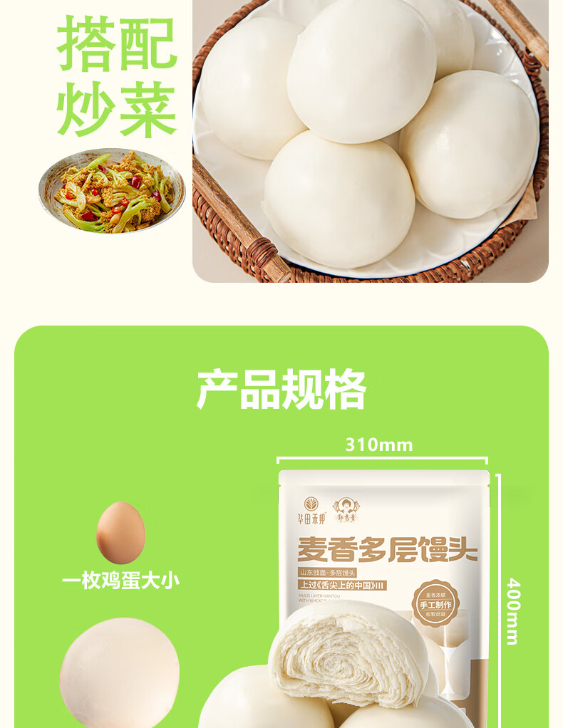 华田禾邦手工老面麦香千层馒头 1.2kg 12个装 山东呛面馒头速食早餐半成品