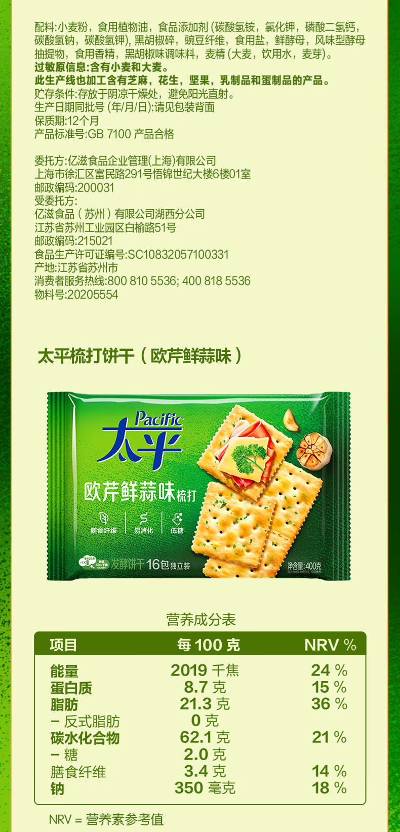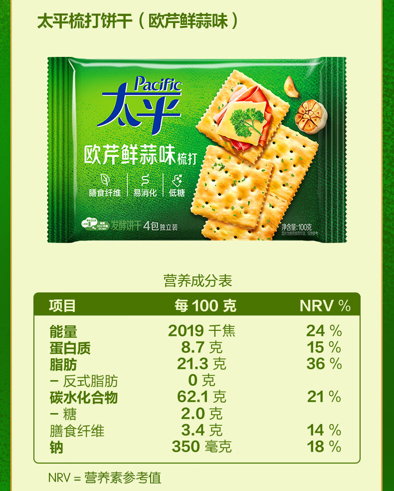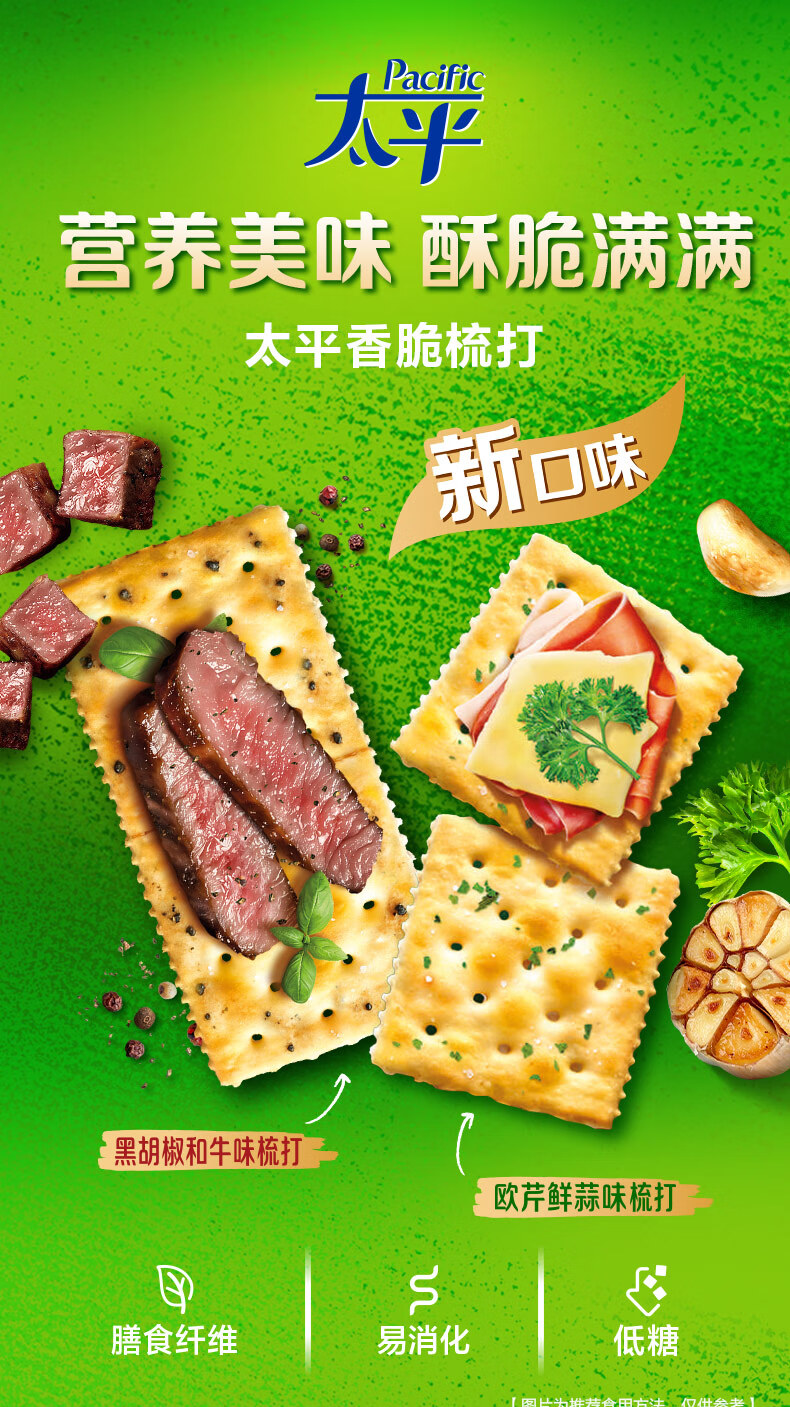 太平苏打饼干 欧芹鲜蒜味400g 低糖易消化含膳食纤维 零食早餐下午茶