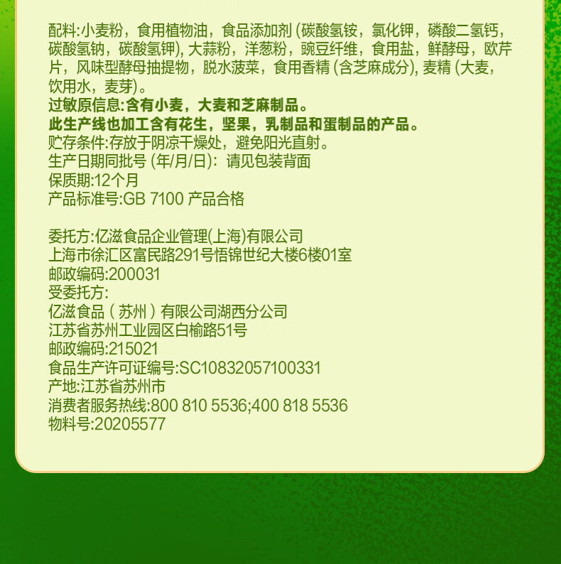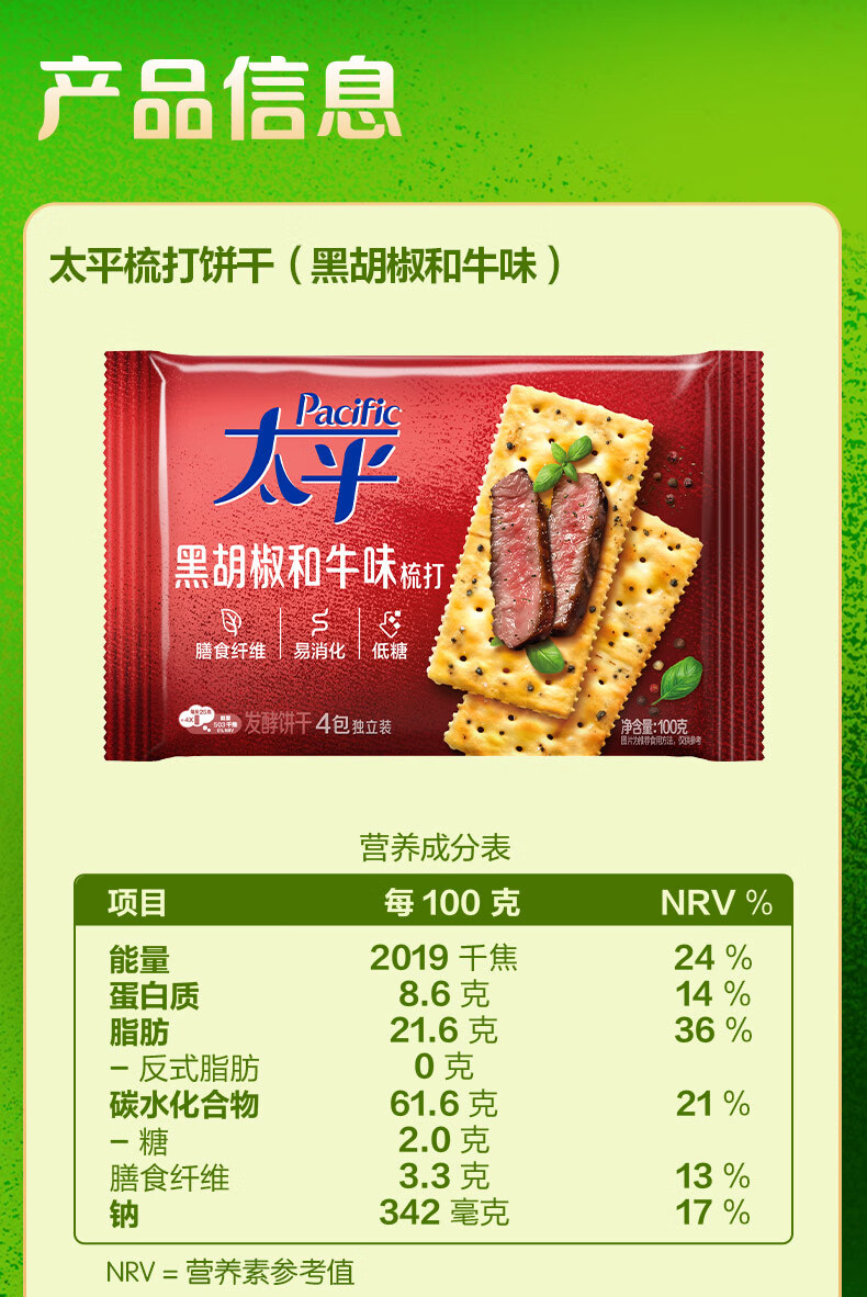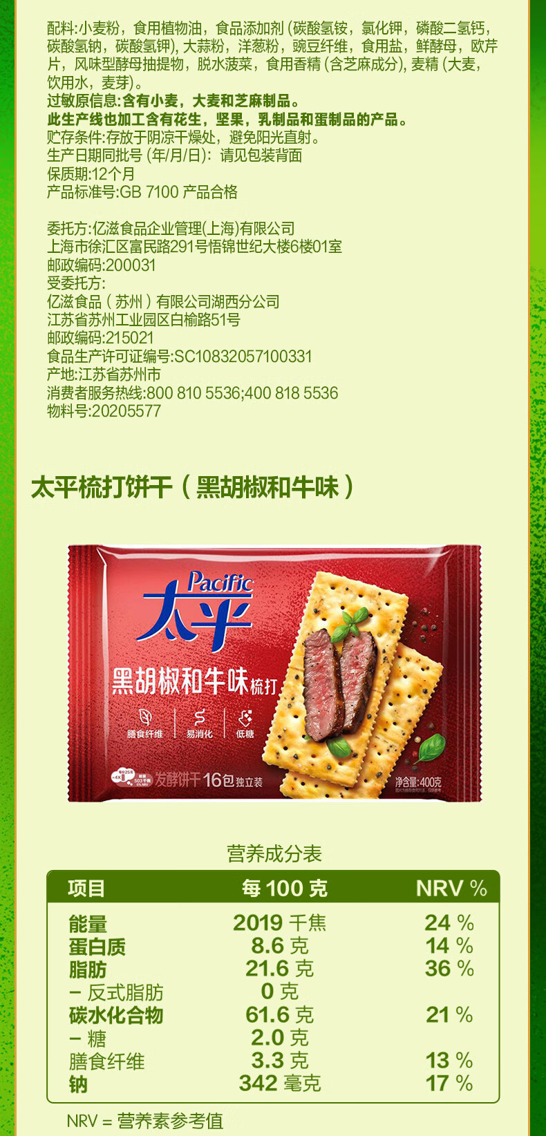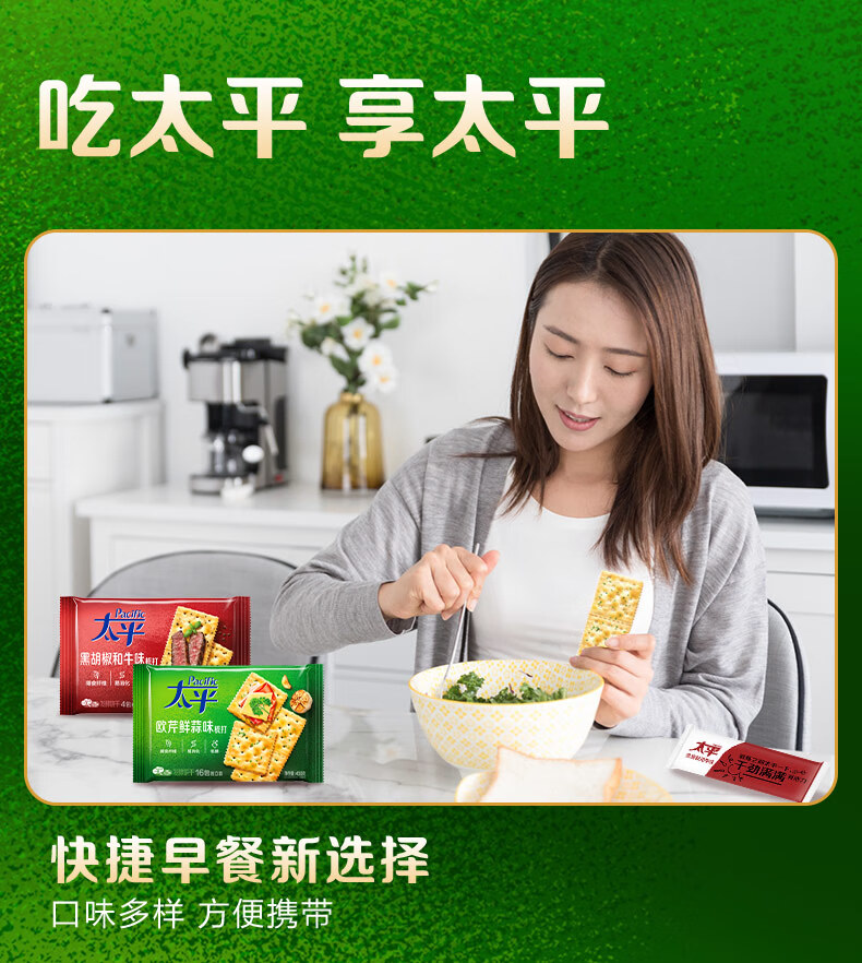 太平苏打饼干 欧芹鲜蒜味400g 低糖易消化含膳食纤维 零食早餐下午茶