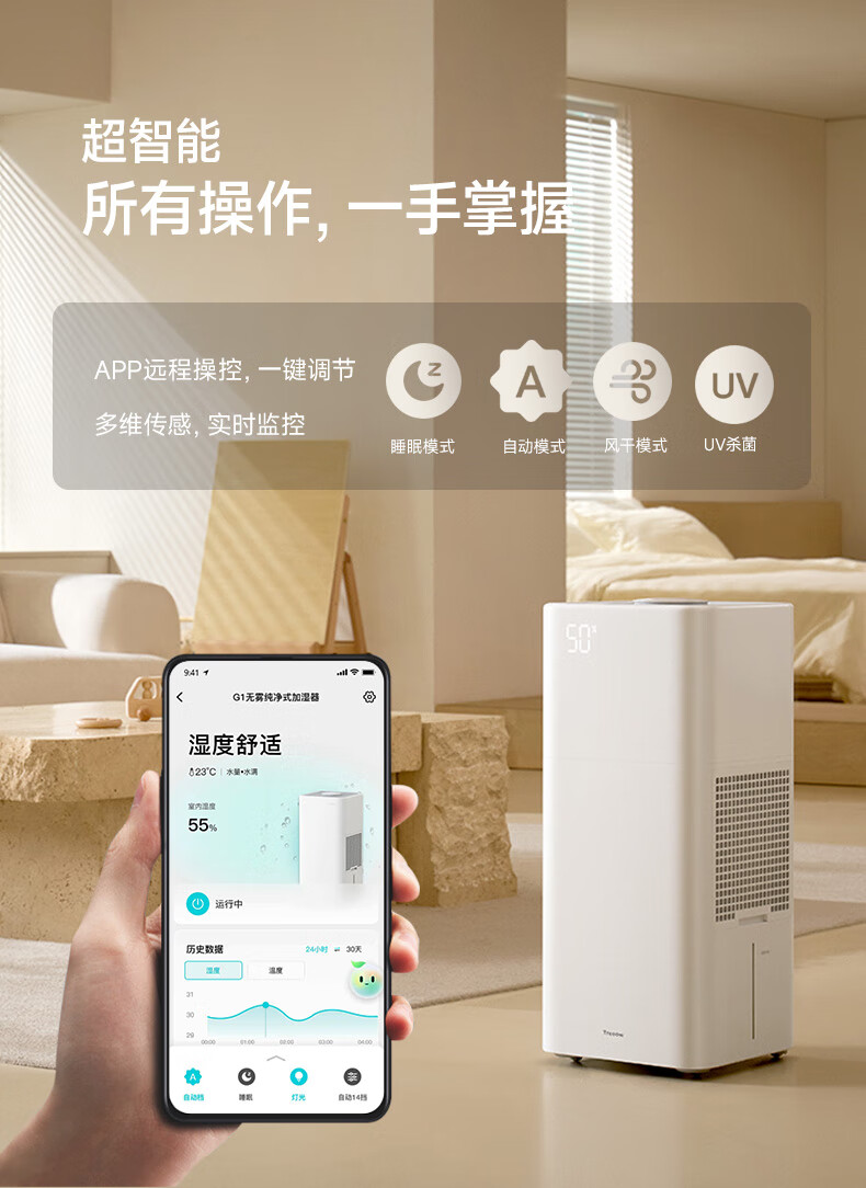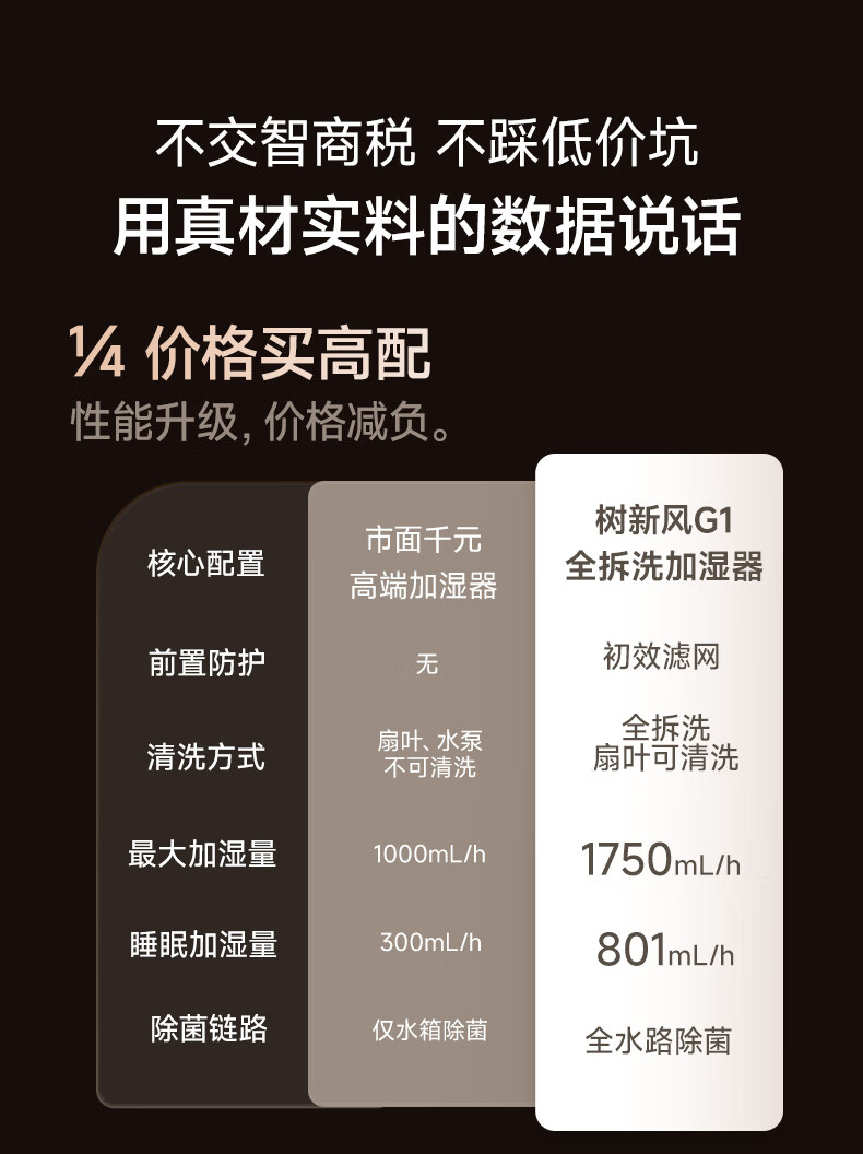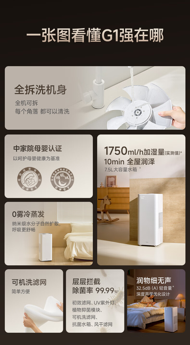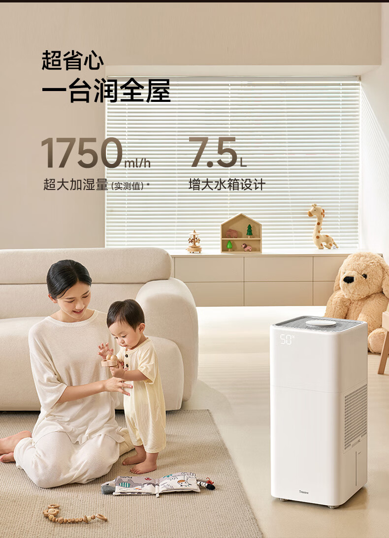 树新风G1无雾加湿器【维嘉同款】空气加湿器静音除菌全拆洗母婴级认证客厅卧室大容量家用婴儿孕妇