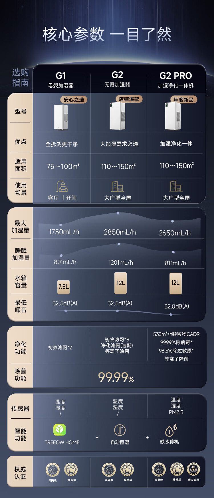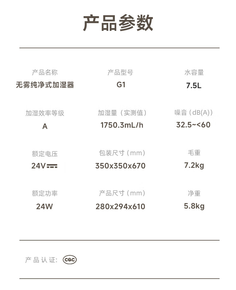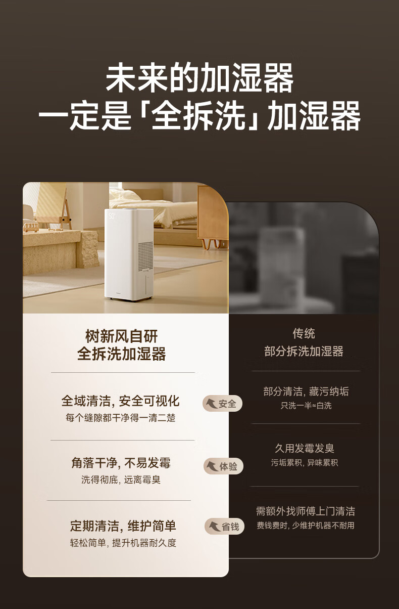 树新风G1无雾加湿器【维嘉同款】空气加湿器静音除菌全拆洗母婴级认证客厅卧室大容量家用婴儿孕妇